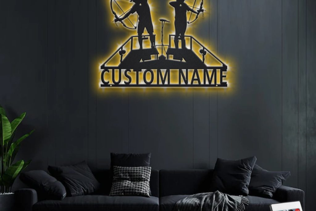 Custom Bowfishing Couple Metal Sign with LED – Room Decoration