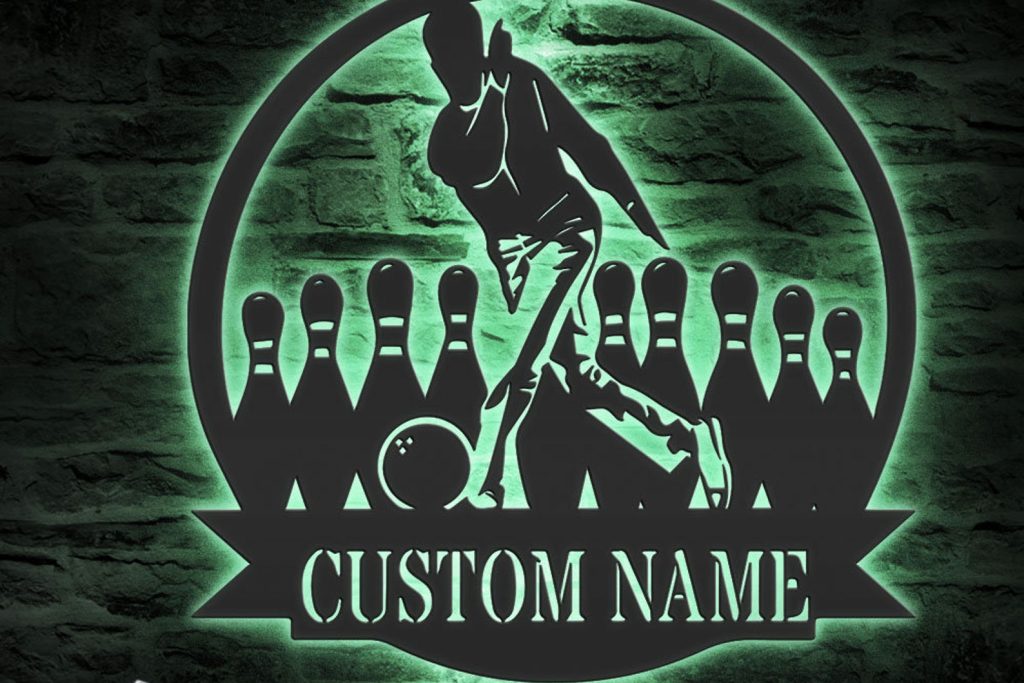 Be the first to review “Custom Bowling Alley Metal Wall Art – LED Light, Personalized Bowling Player Sign”