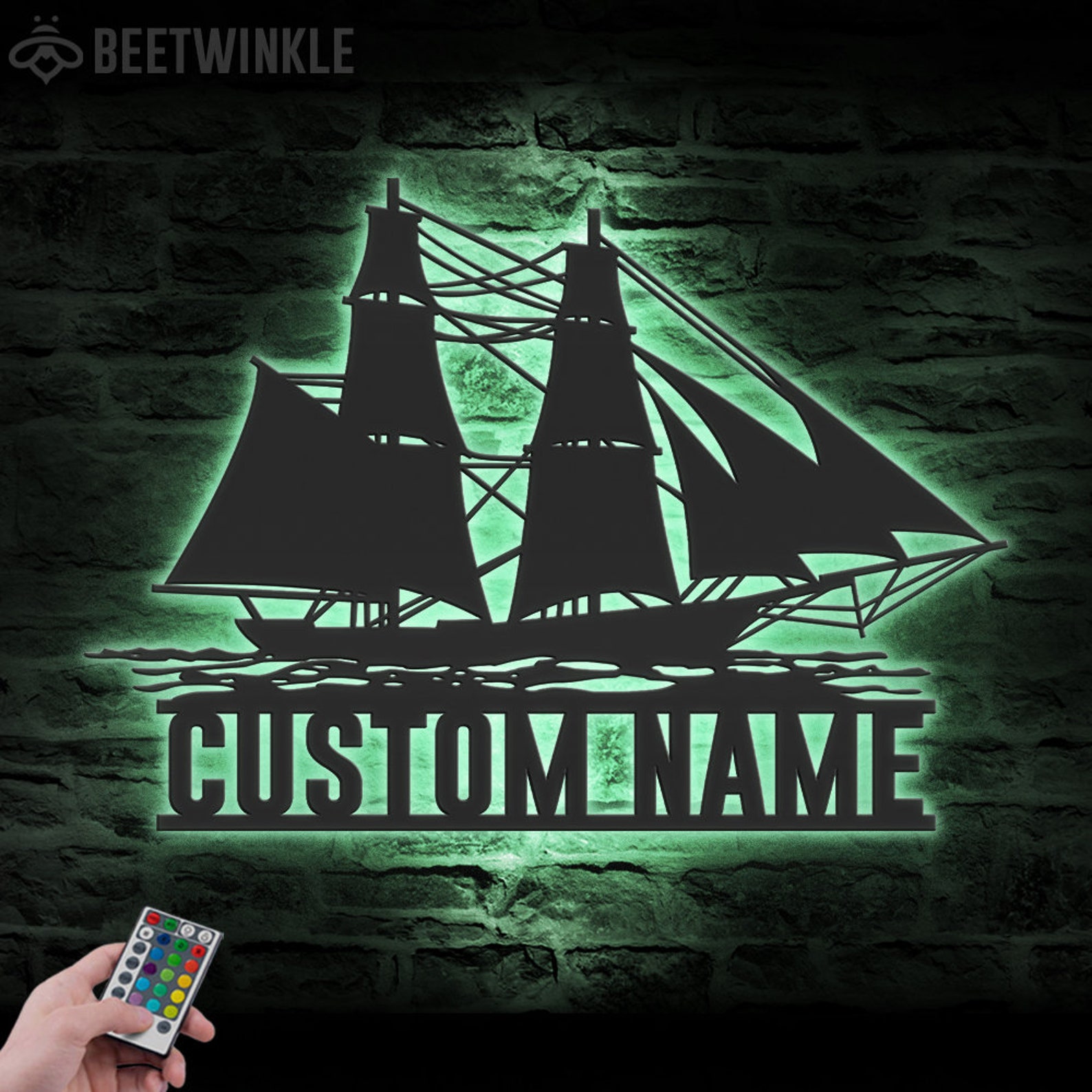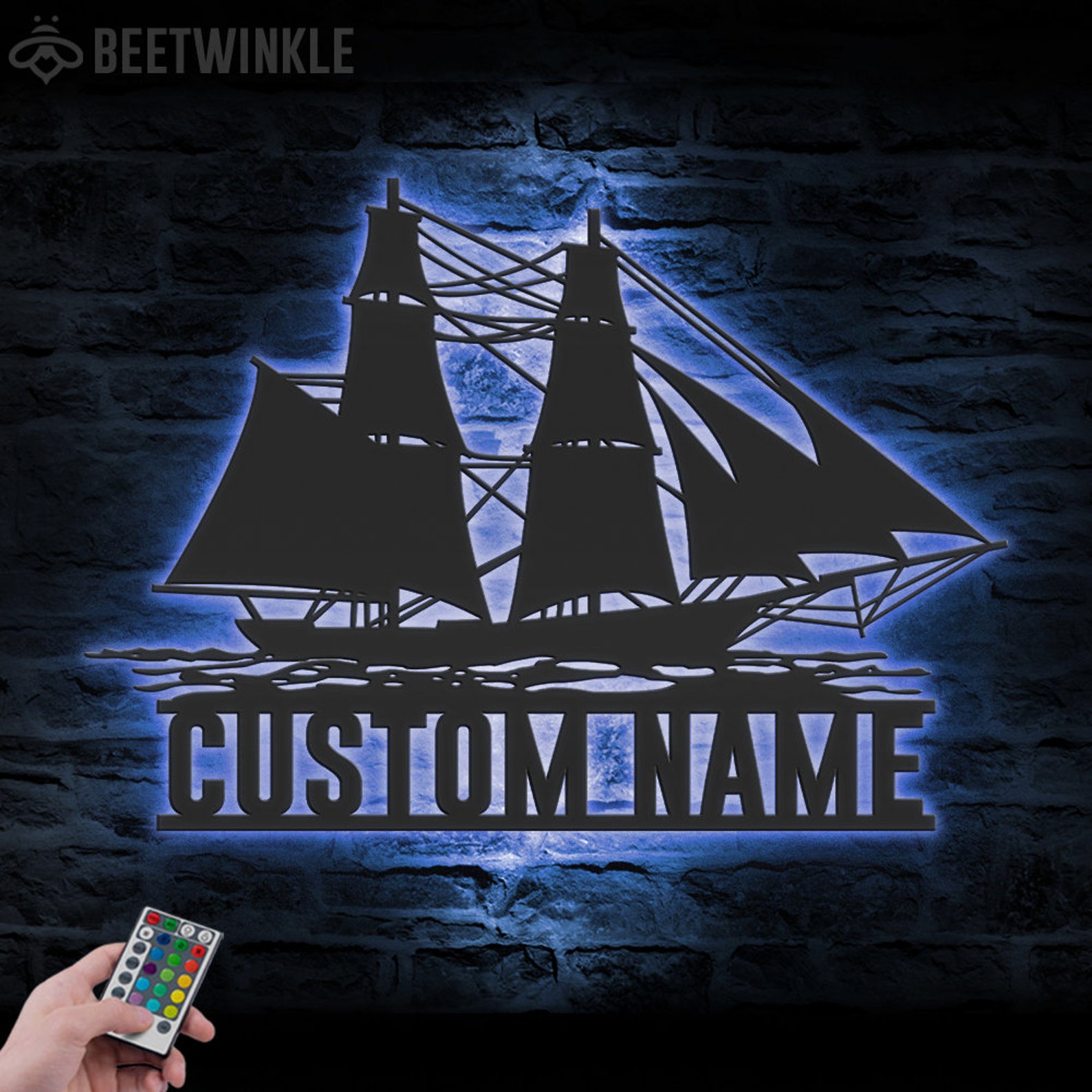 Be the first to review “Custom Brig Sailing Metal Art with LED Light”