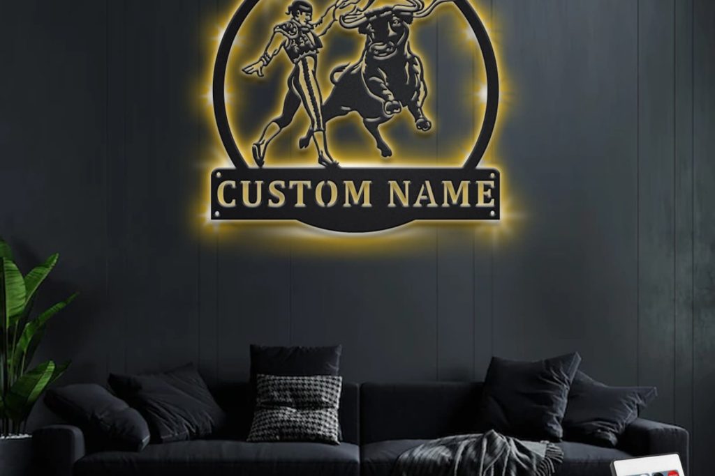 Custom Bullfighting Metal Sign with LED – Room Decoration