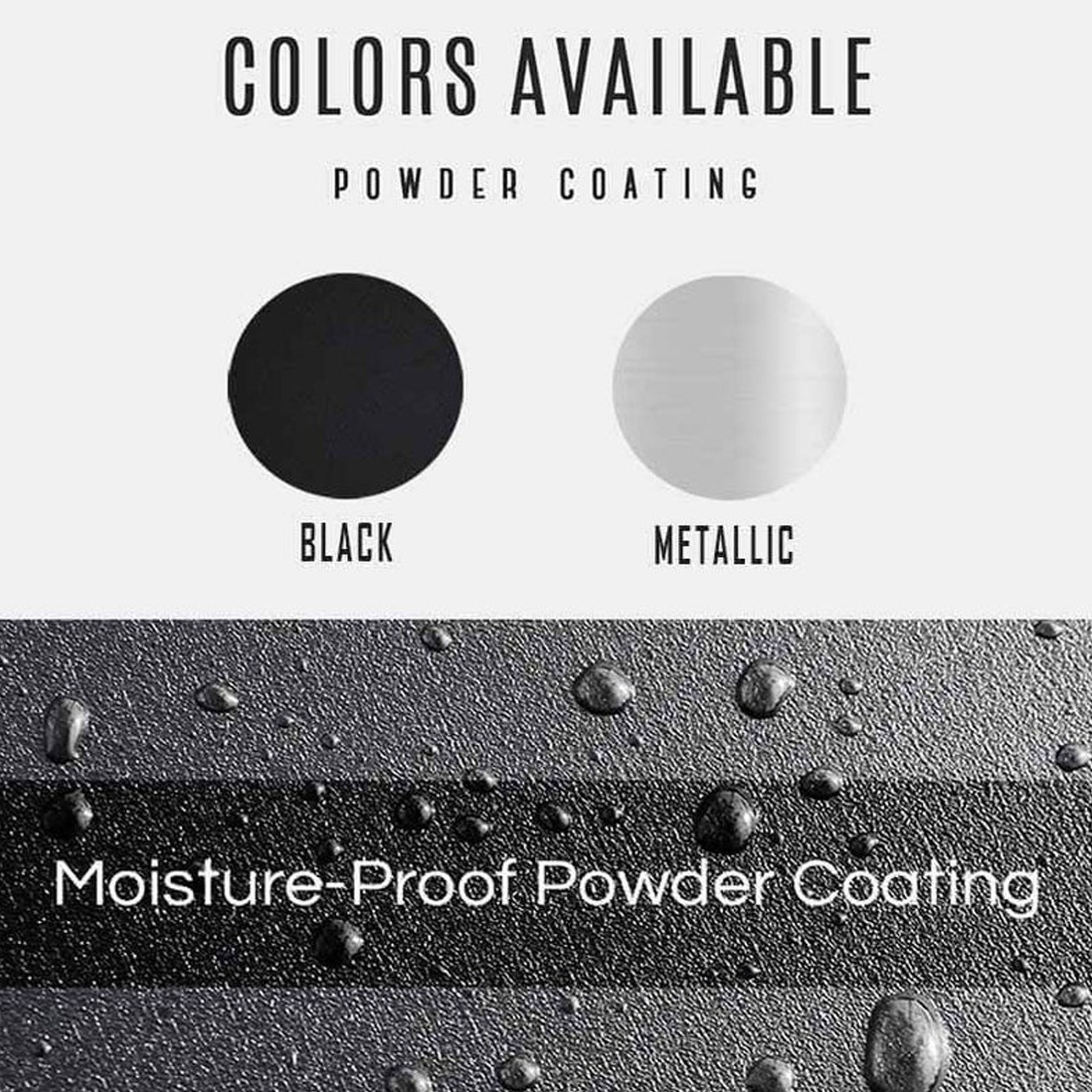 Made from high quality carbon steel and powder coated to last a lifetime. Perfect for indoor use but since it is professionally powder coated it will hold up just fine in the outdoors which means it is weather proof.