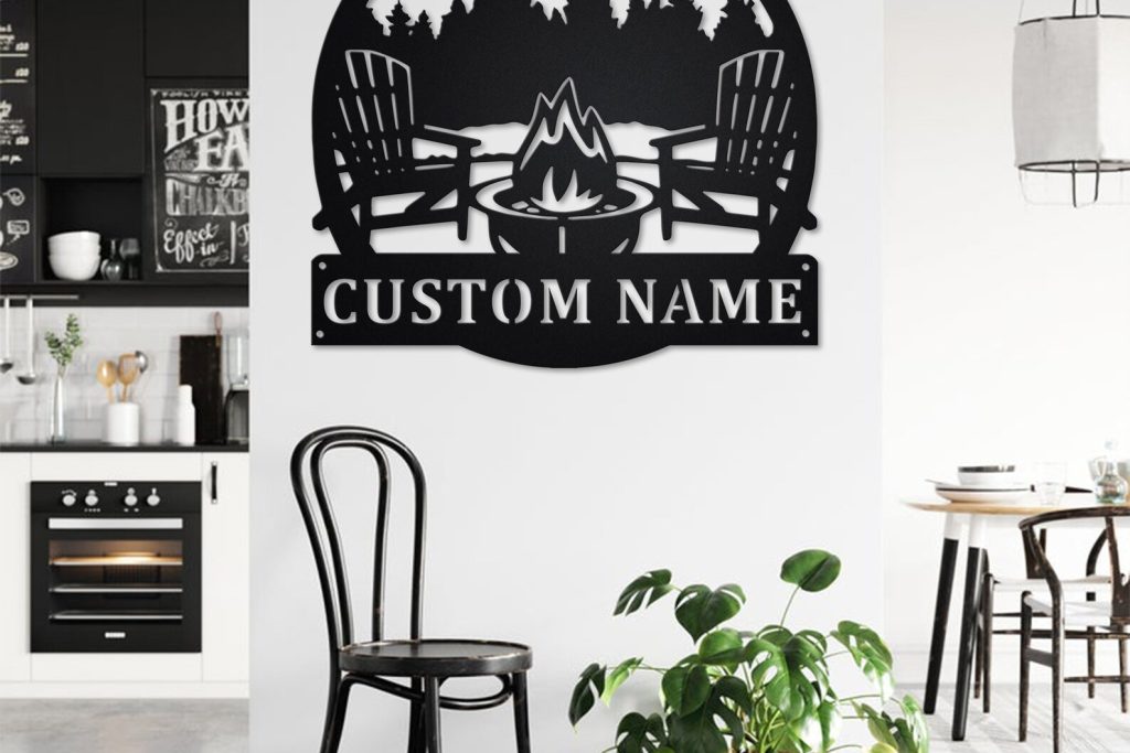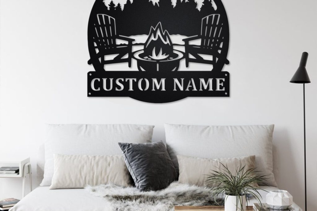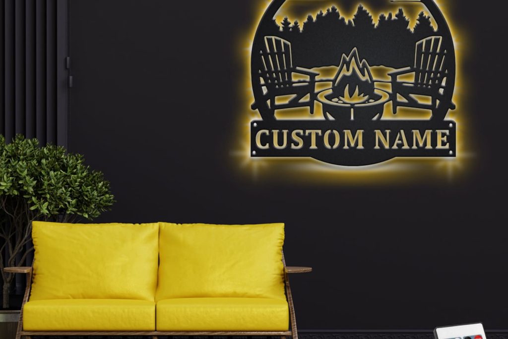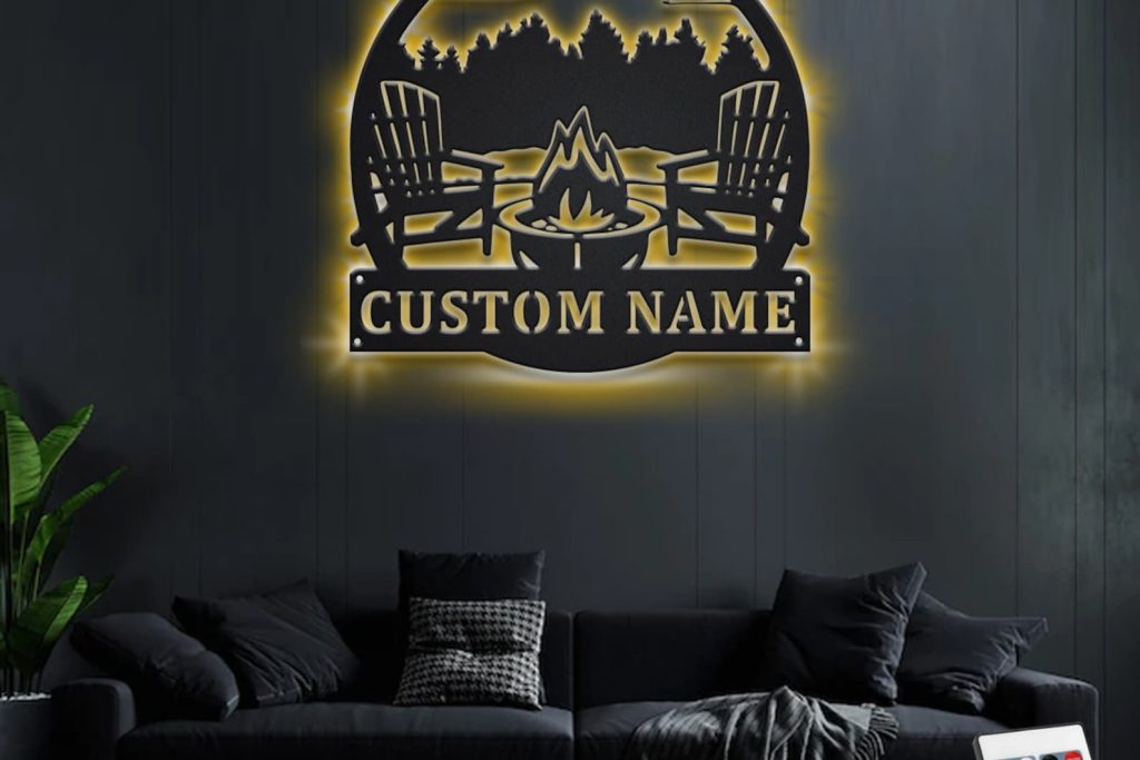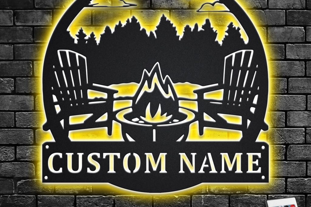 Custom Campfire Metal Wall Art – LED Light, Personalized
