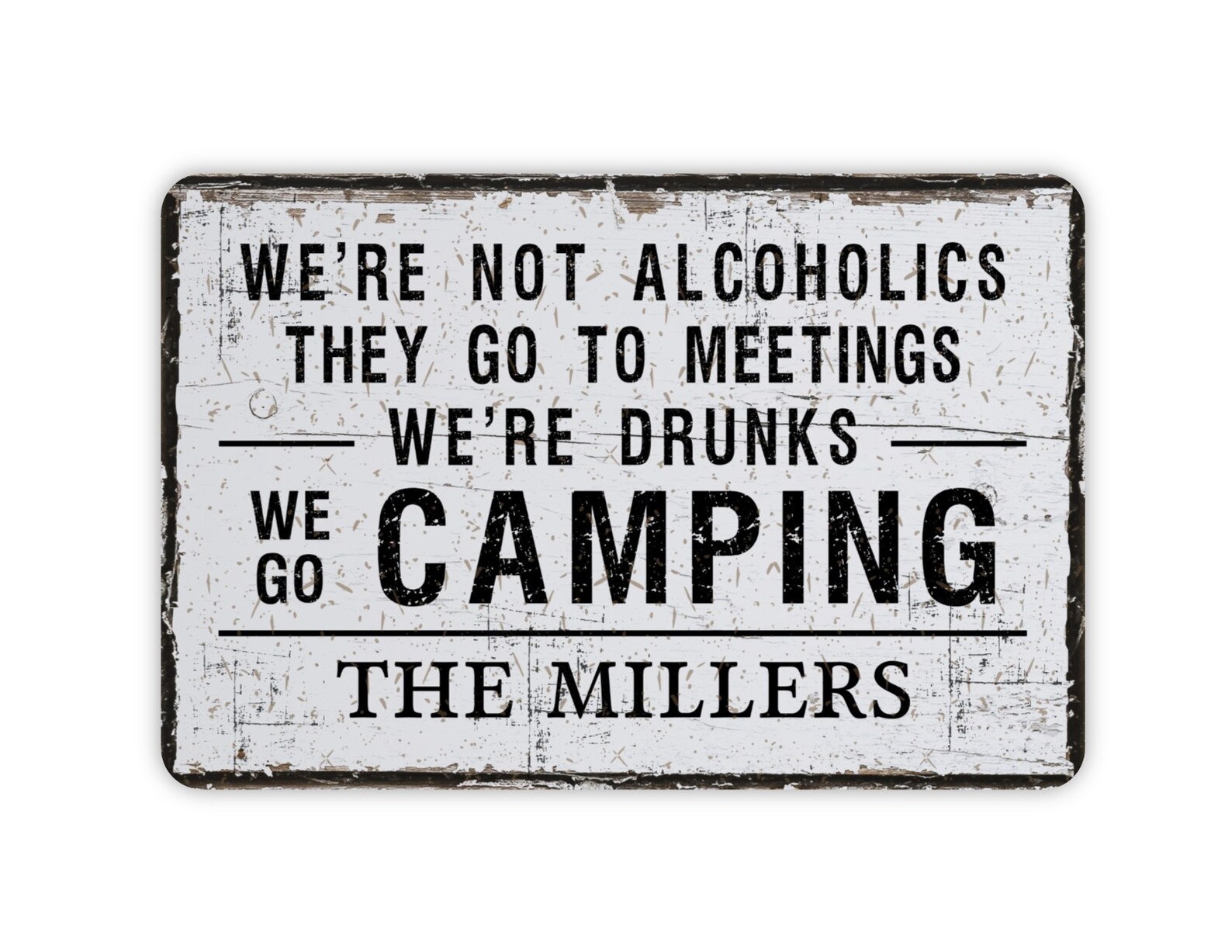 Design: We9;re Not Alcoholics We Go Camping Personalized Metal Sign