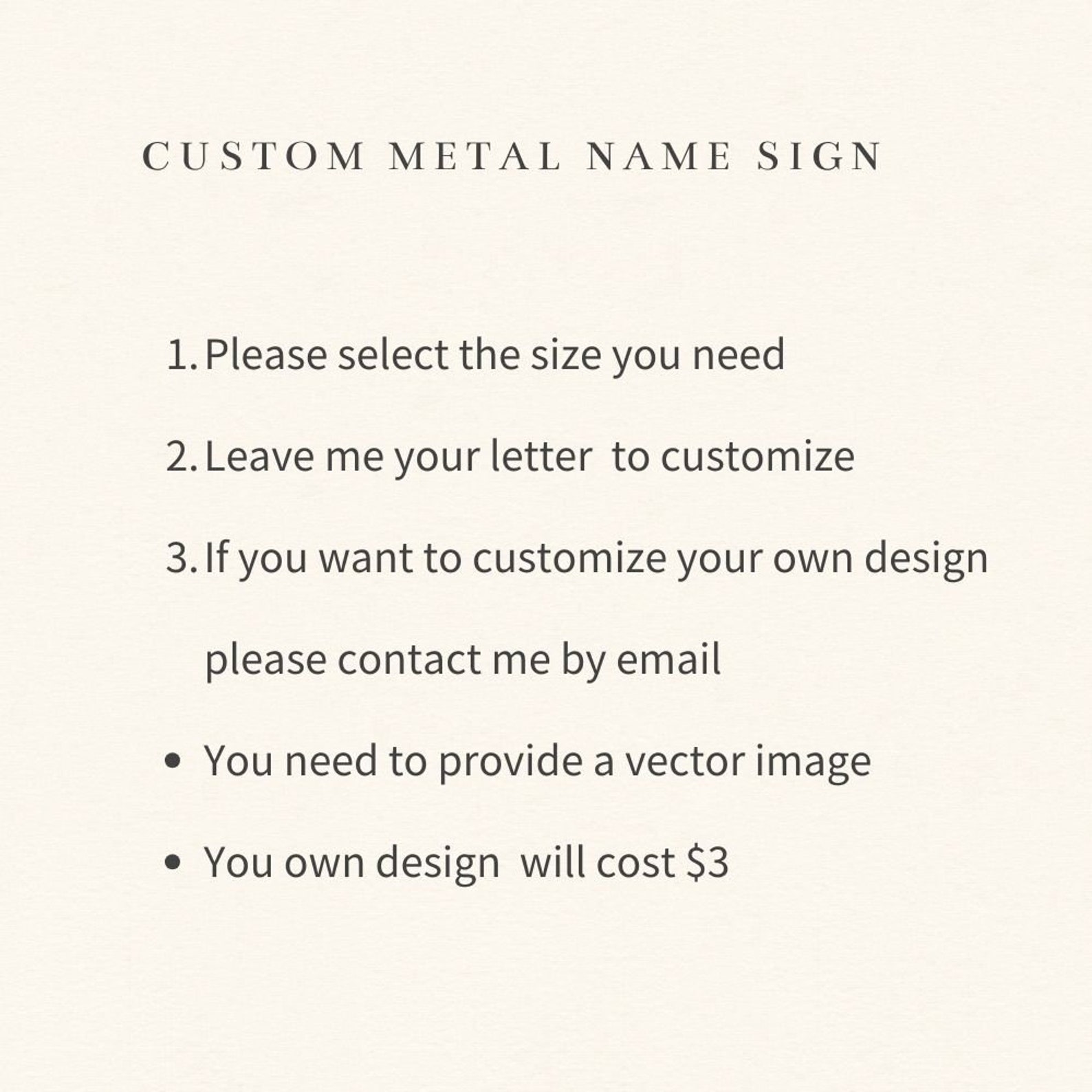 1.Name or text: your name or words need to be engraved or printed on the metal.For Monograms, please ensure that you fill in all of the appropriate info for each style design.