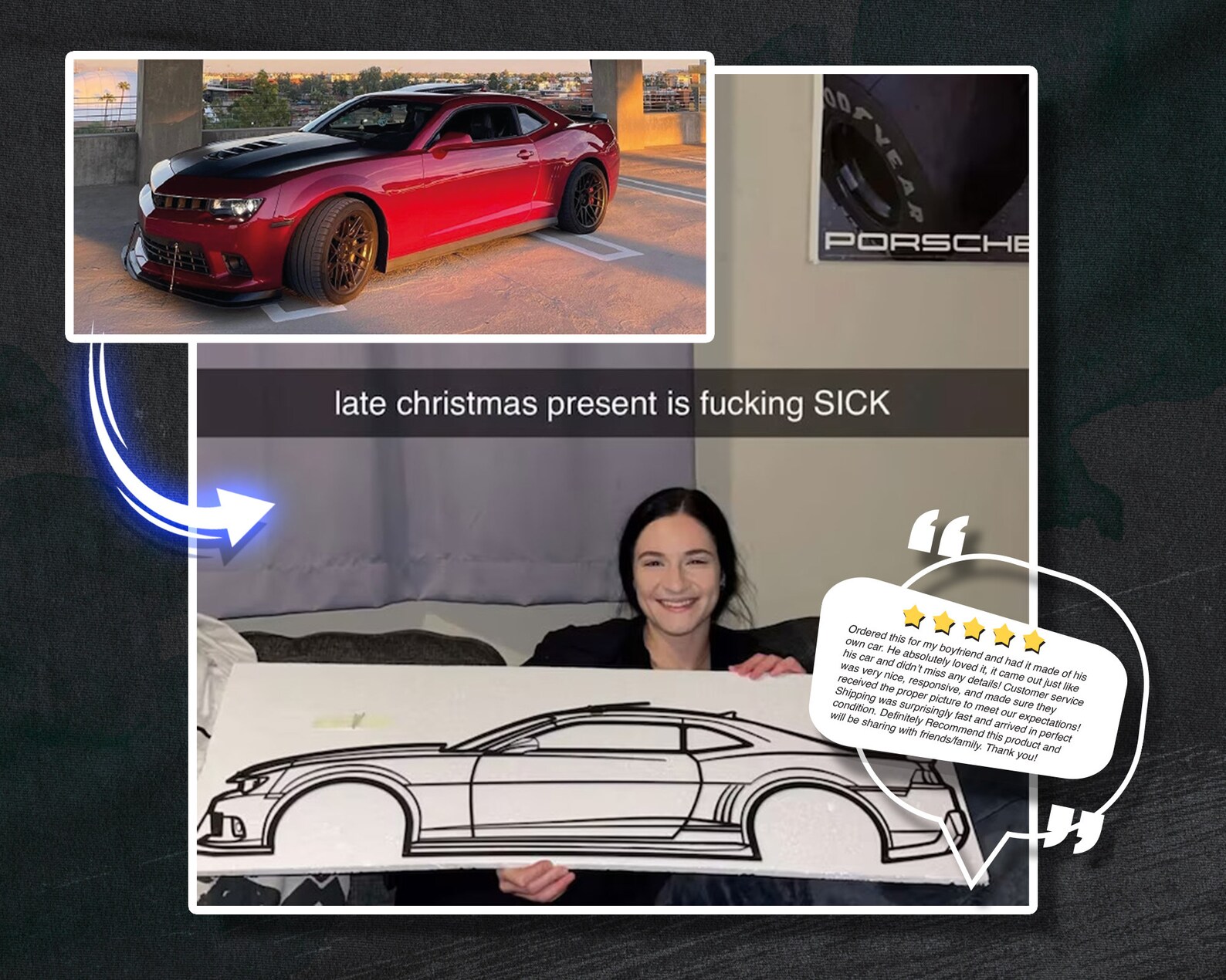 We offer custom metal car wall art for any car of your choice. You only need to enter the et make, model and the year of the desired car and our team of car enthusiast designers can immediately start working on it.