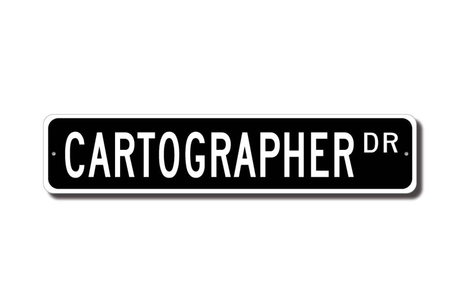 Cartographers check out this awesome street sign! This will make the perfect piece for any Cartographer or maybe you are a Cartographer looking for a cool decor piece. Made of premium aluminum it will stand the test of time. This sign will look great in any room, home den, cave, or office! Get this sign for your favorite Cartographer !