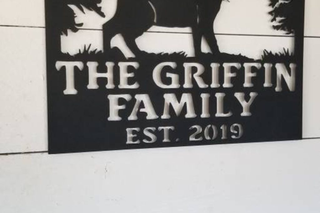 Signs are cut from our 14 ga steel and professionally powder coated black to withstand the outdoor elements.