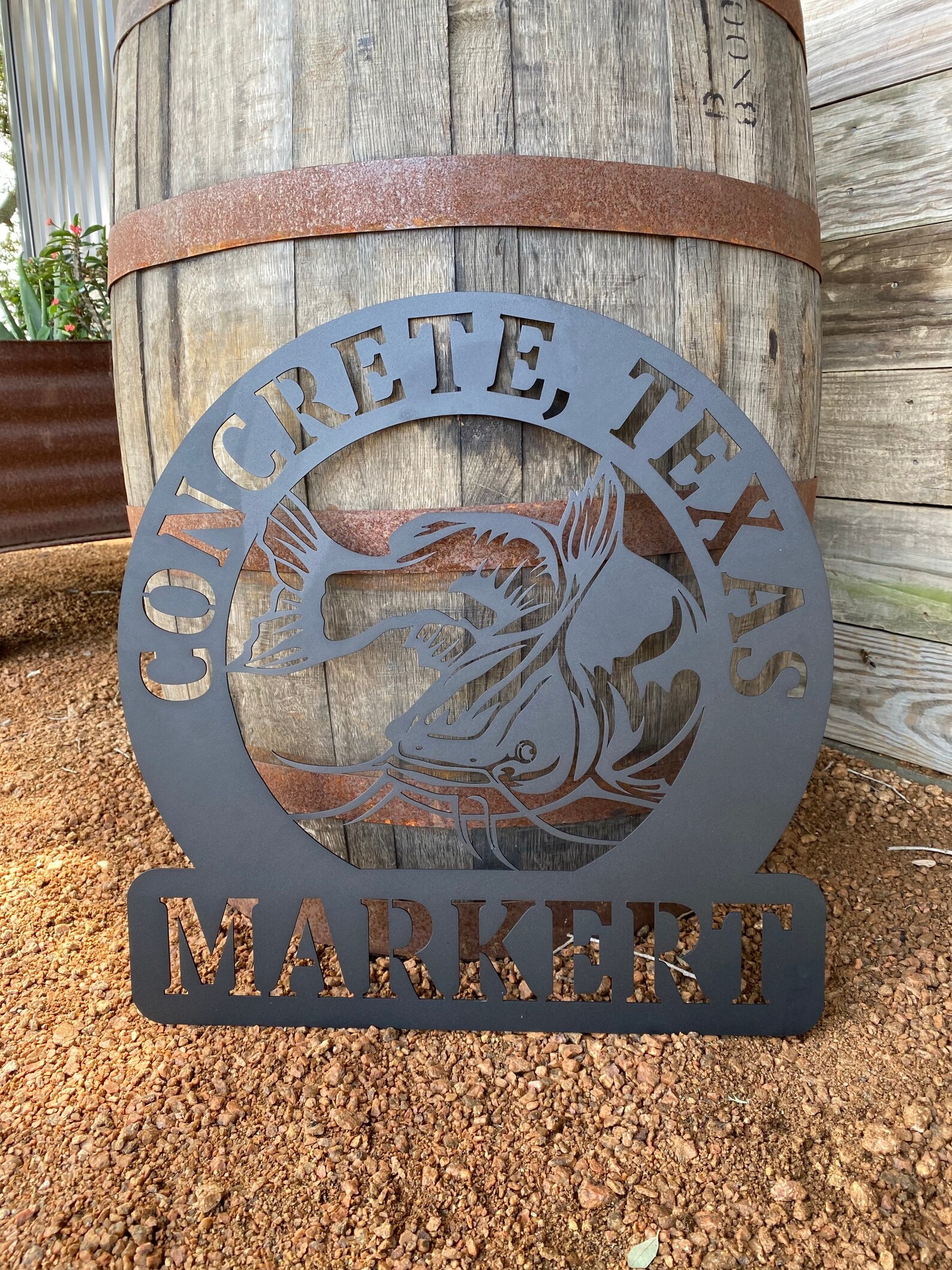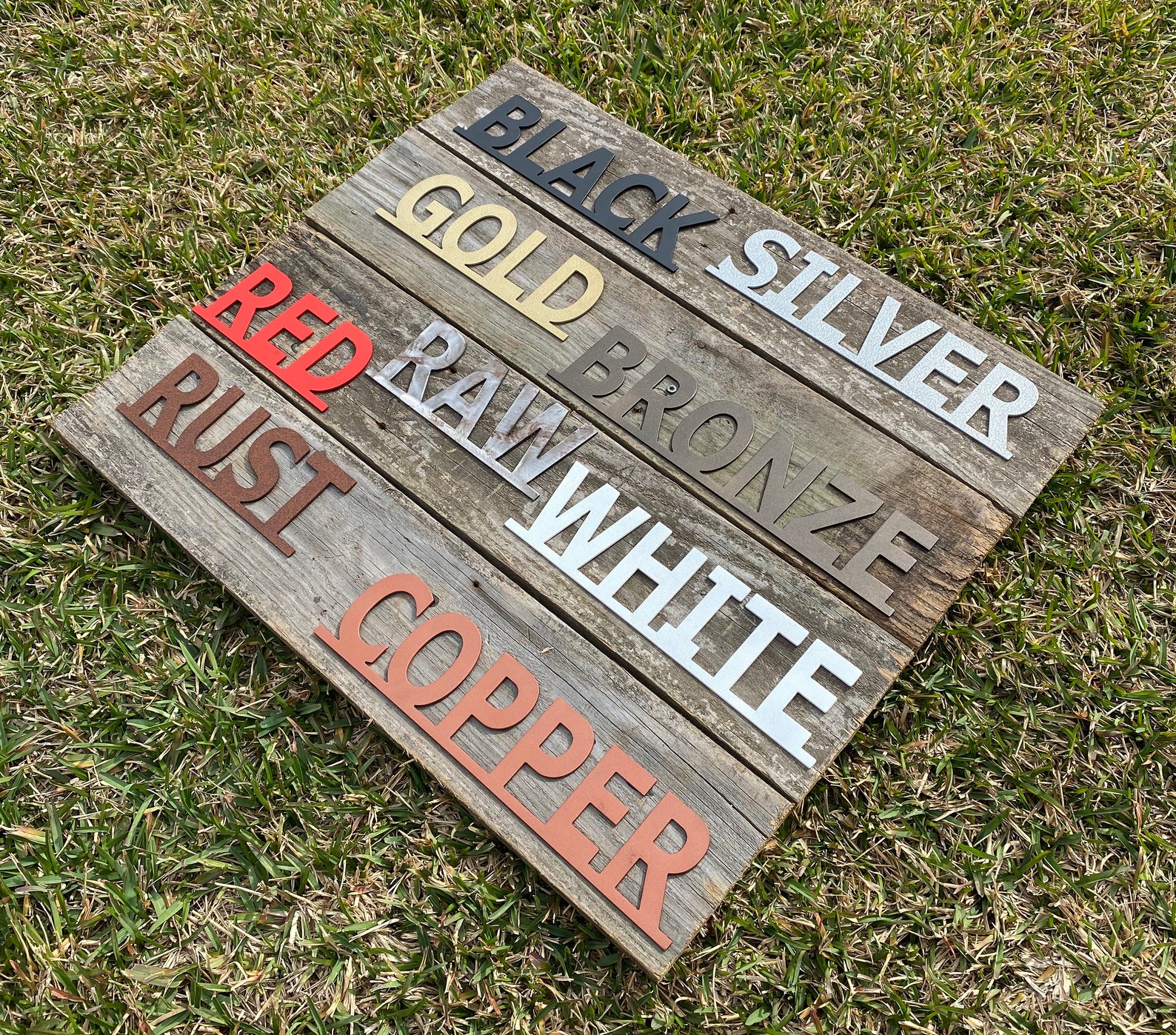 Our metal signs are cut from new 14 gauge steel. 14 gauge steel is roughly the same thickness of a quarter. Each piece is cut to order and powder coated front and back to result in a perfectly smooth rust free sign. This sign can be hung indoors or outdoors offering a variety of uses.