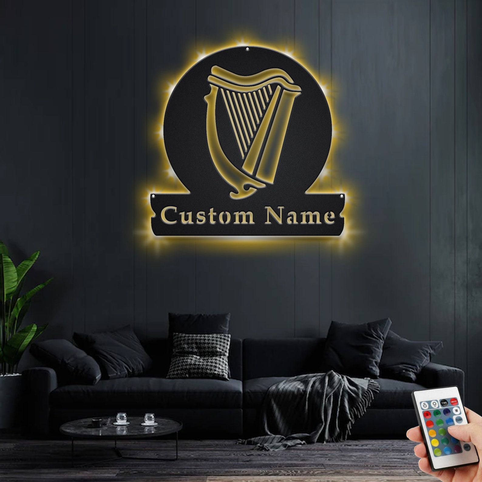 Custom Celtic Harp Metal Sign with LED – Room Decoration