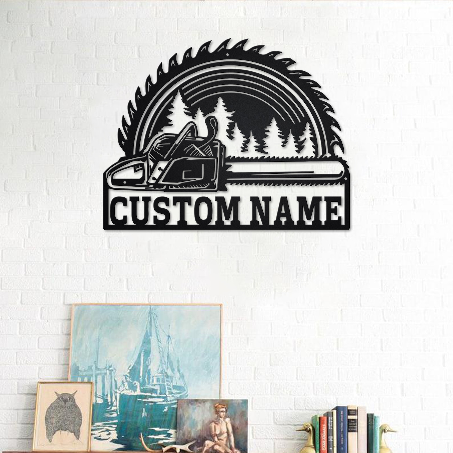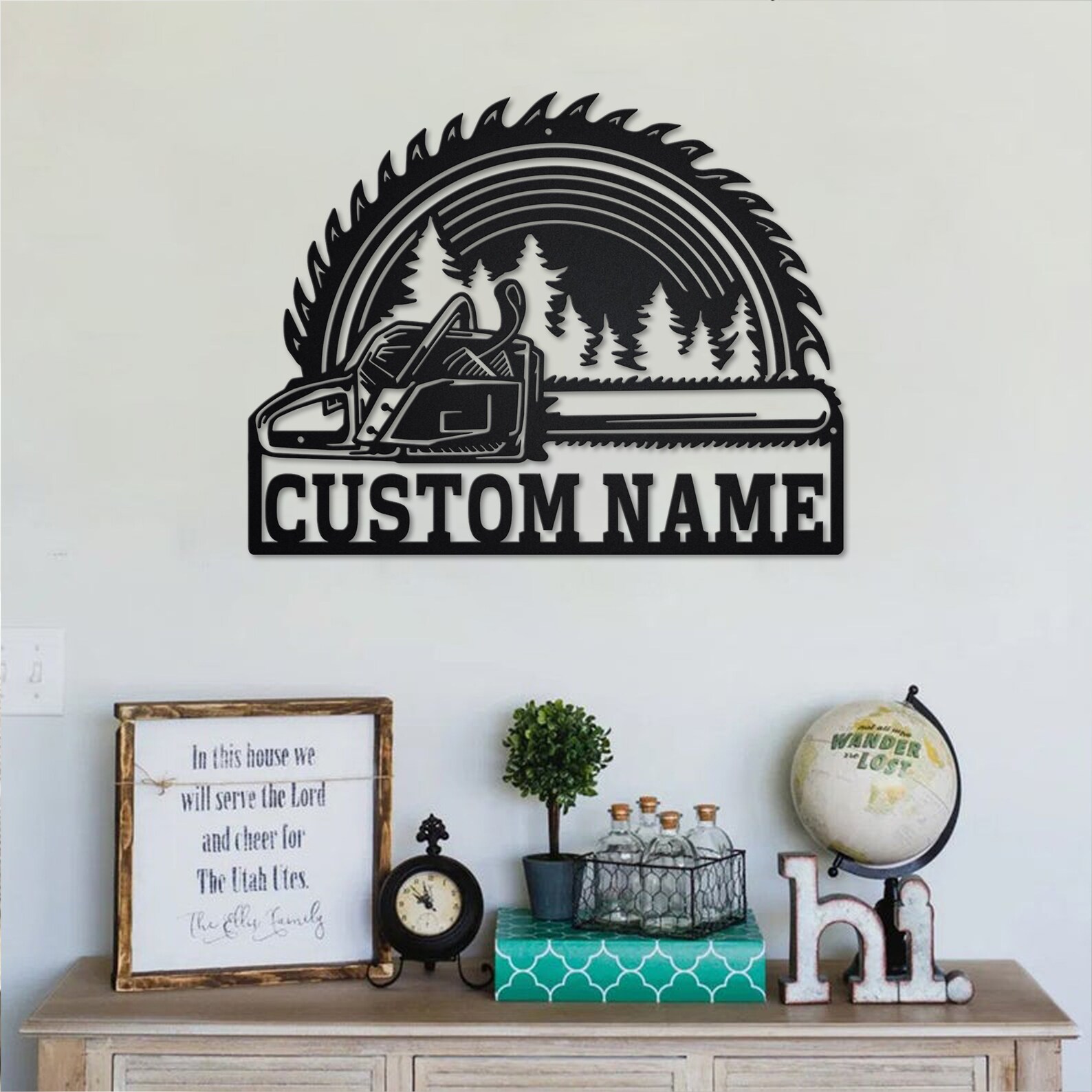 Custom Chainsaw Wood Metal Wall Art with LED Light