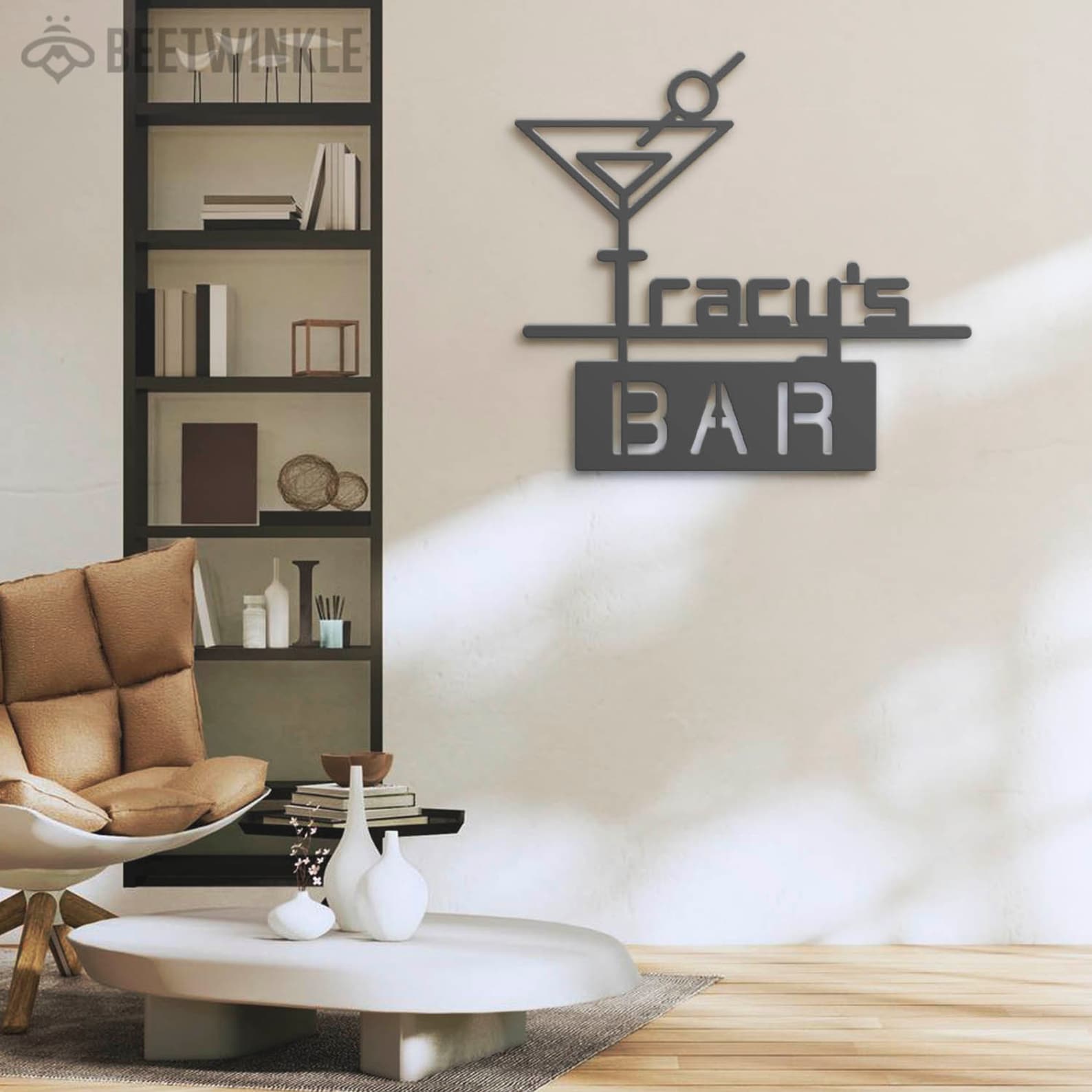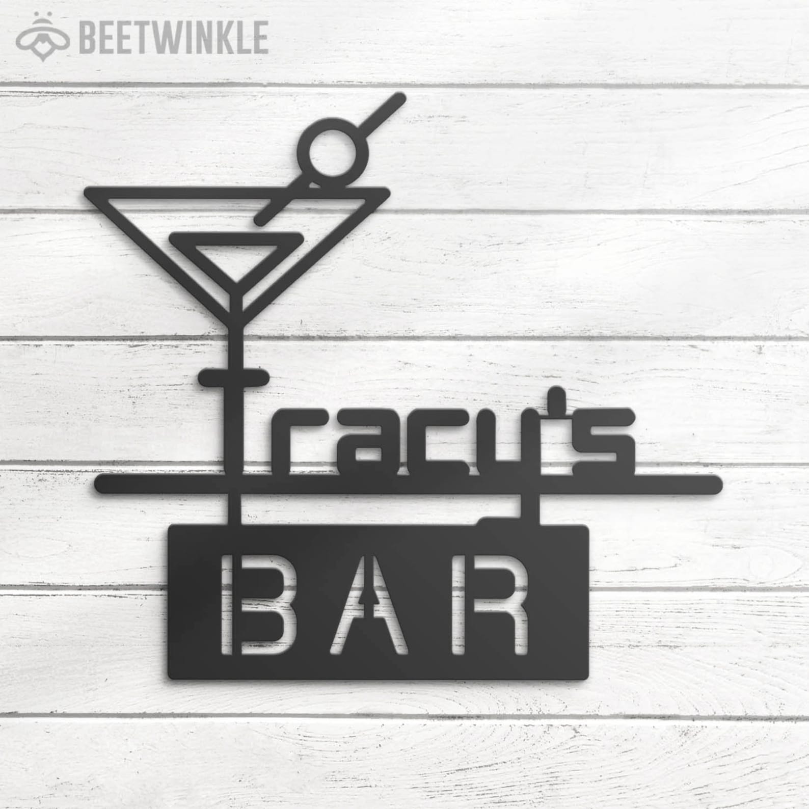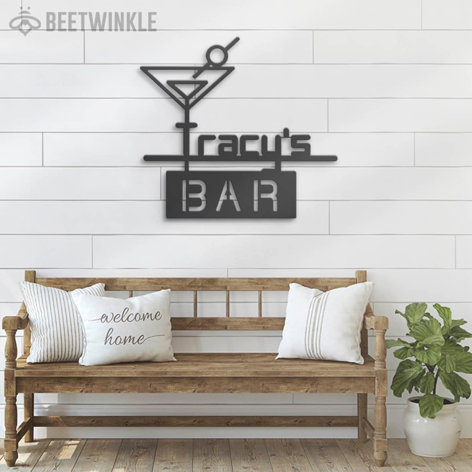 Custom Cocktail Bar Metal Wall Art – LED Light, Personalized Drink Sign