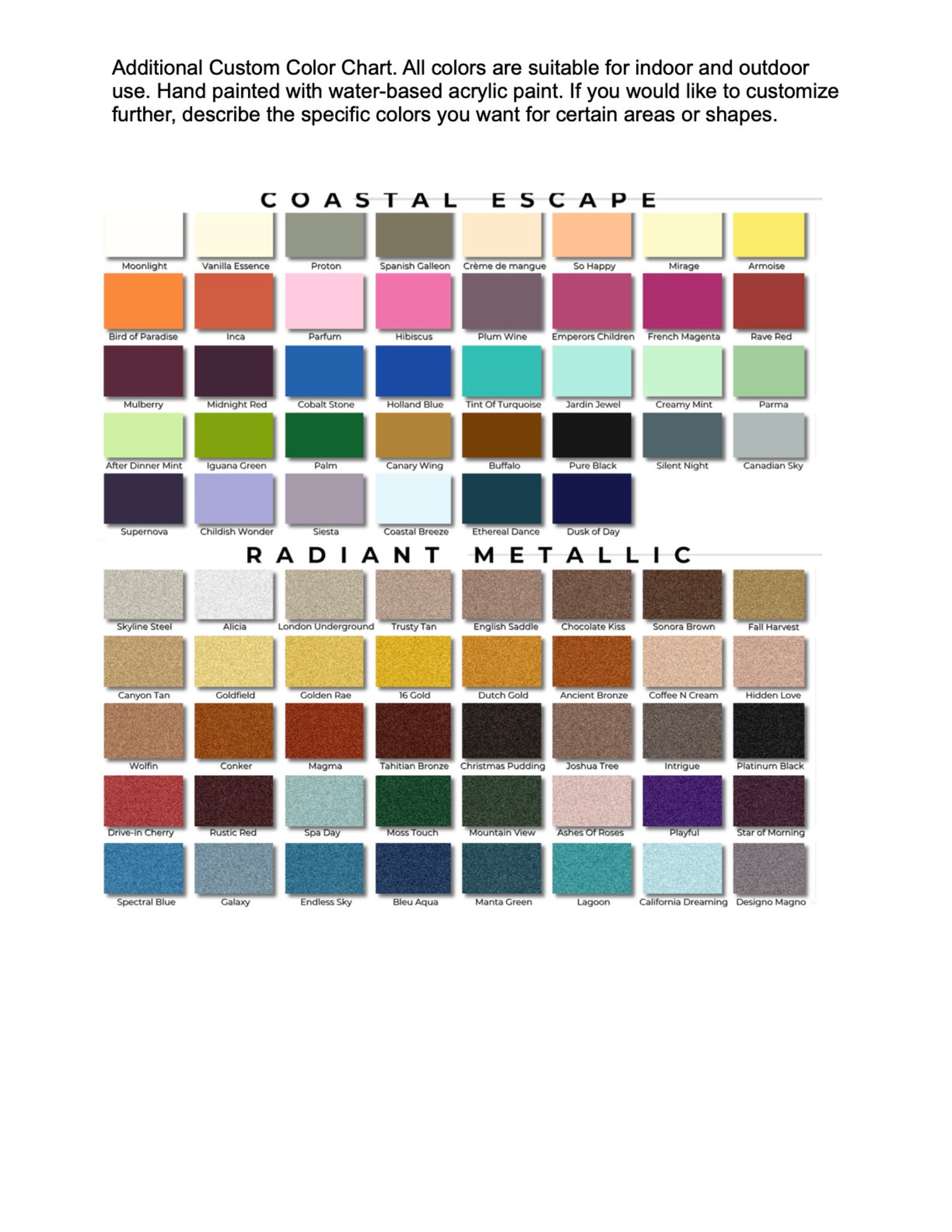 Custom sizes and colors available.