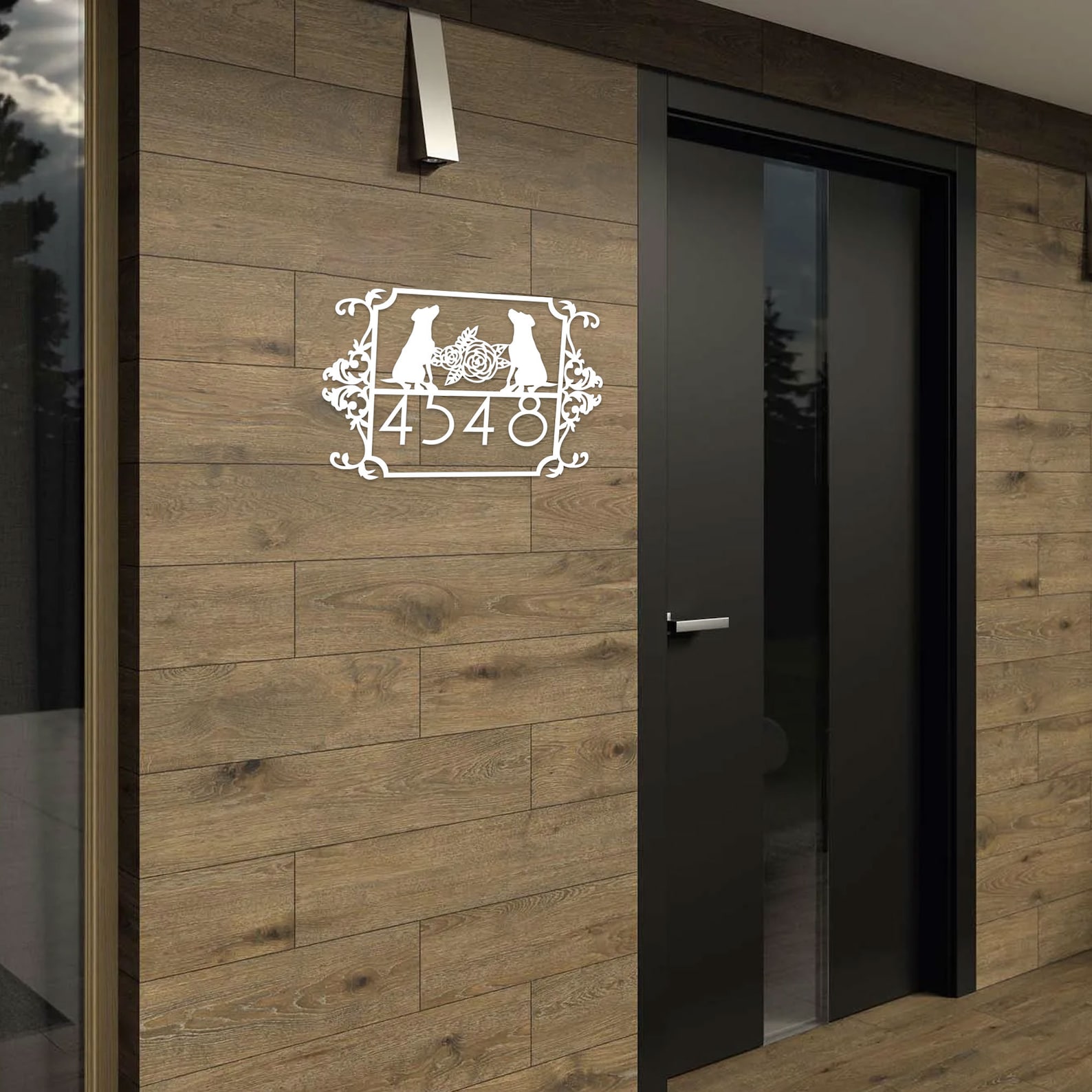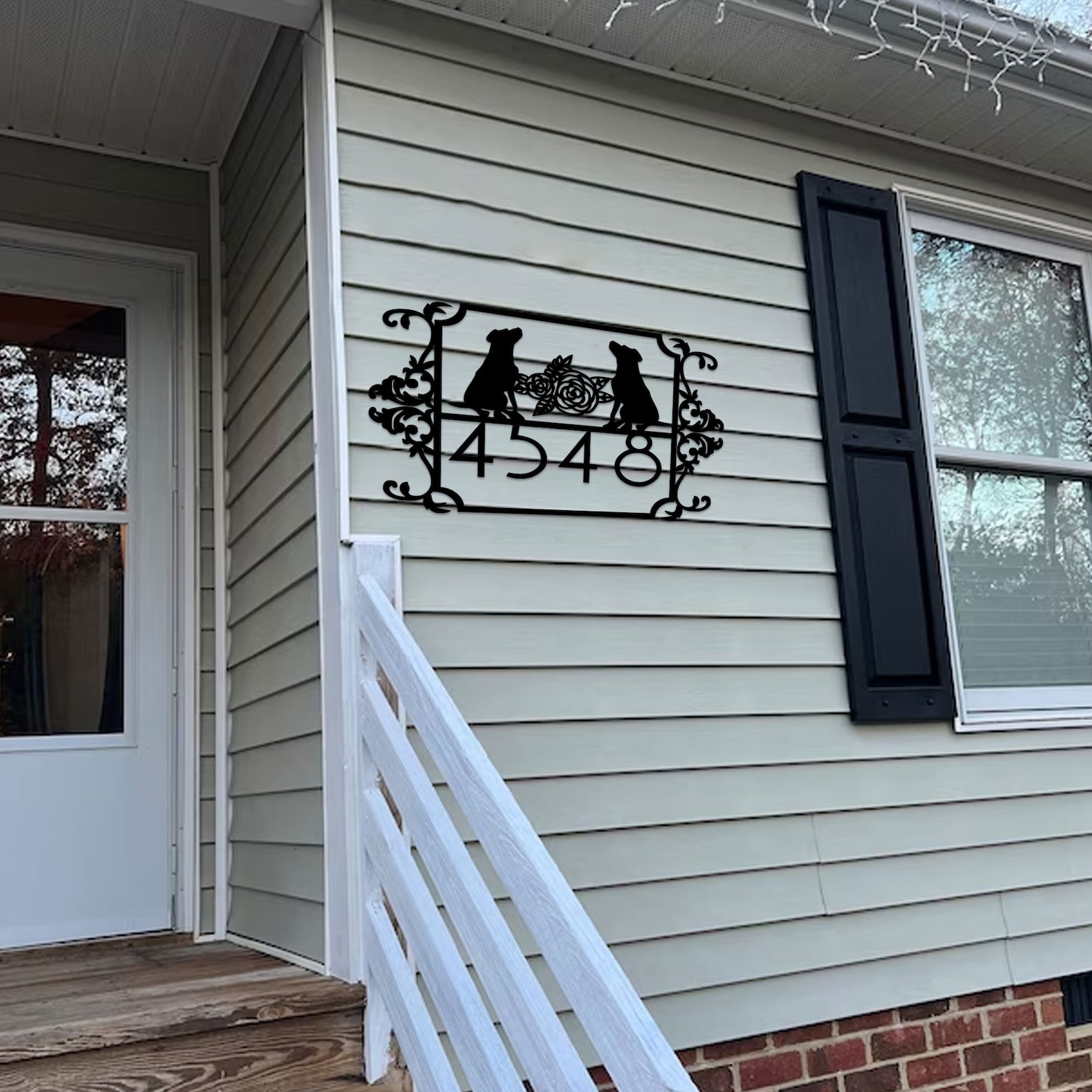 Custom Couple Dog House Number Sign, Horizontal Metal Address Sign, Dog Address Sign, Outdoor Number Plate, Housewarming Gift