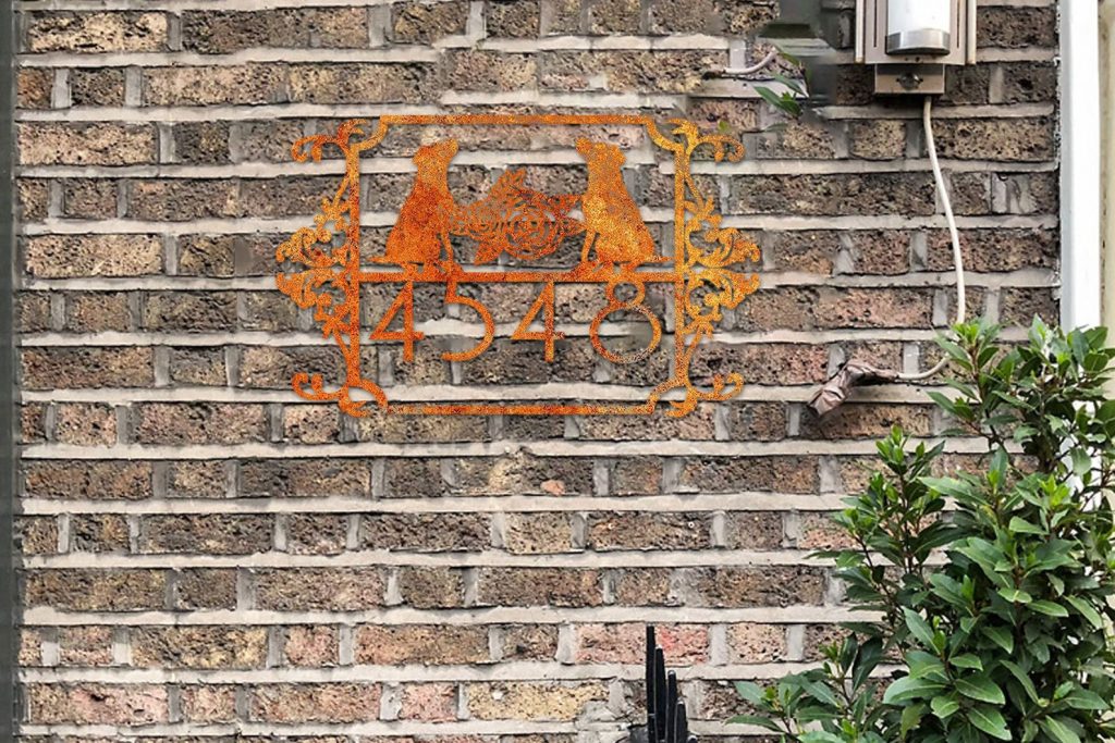 Custom Metal House Number Sign, Horizontal Metal Address Sign, Dog Address Sign, Outdoor Number Plate, Housewarming Gift ,Animal Lover Gift, Personalized Gift, Metal Dog Plate