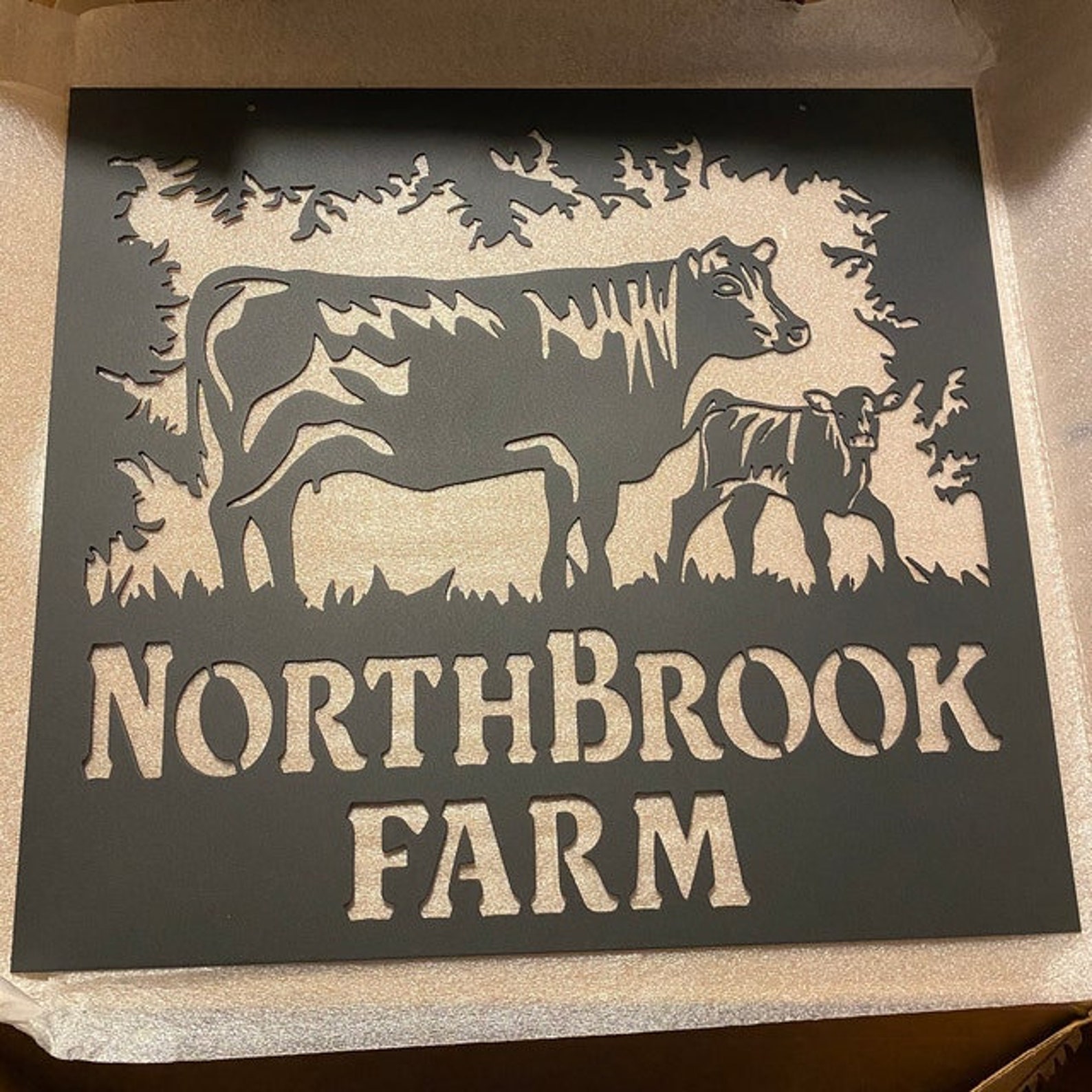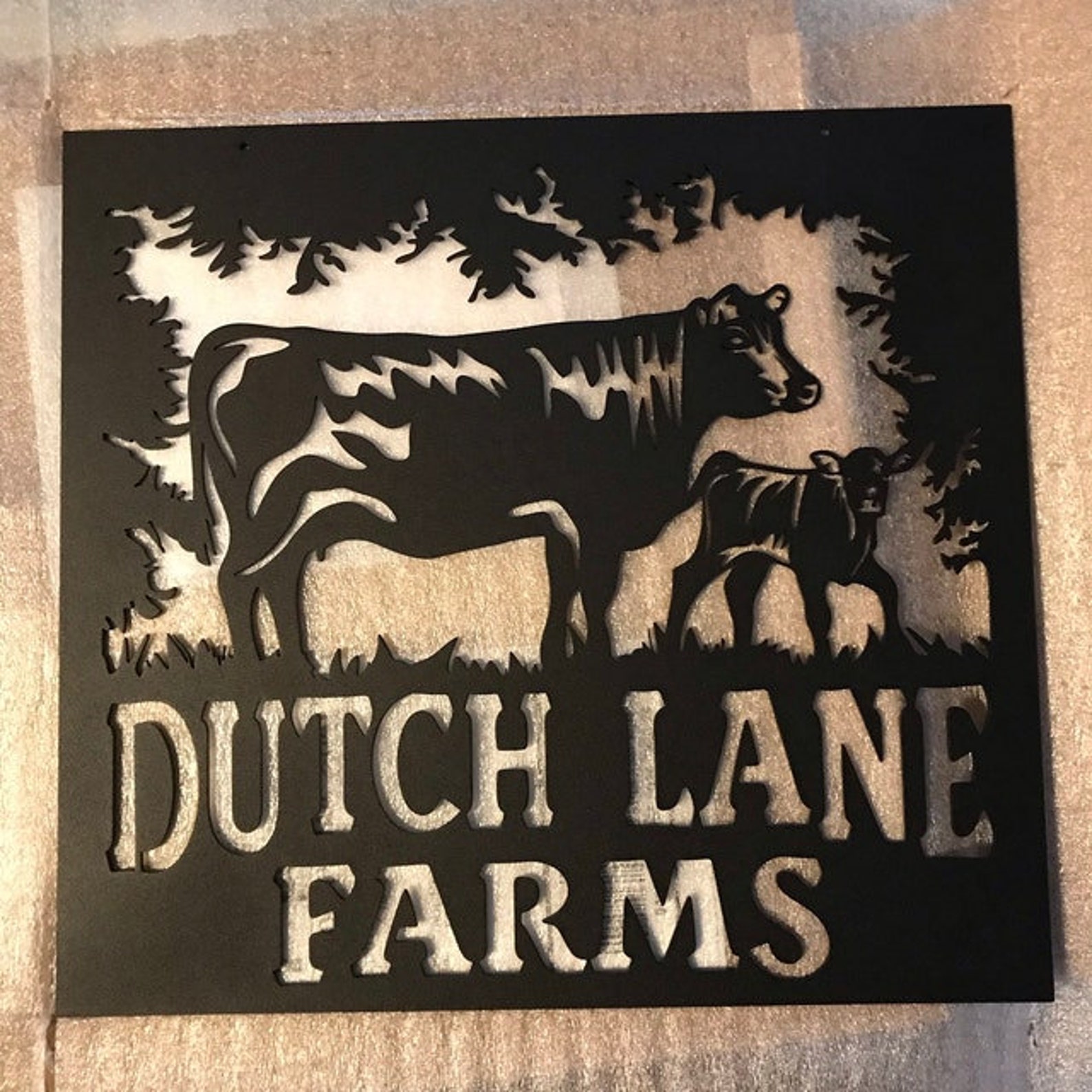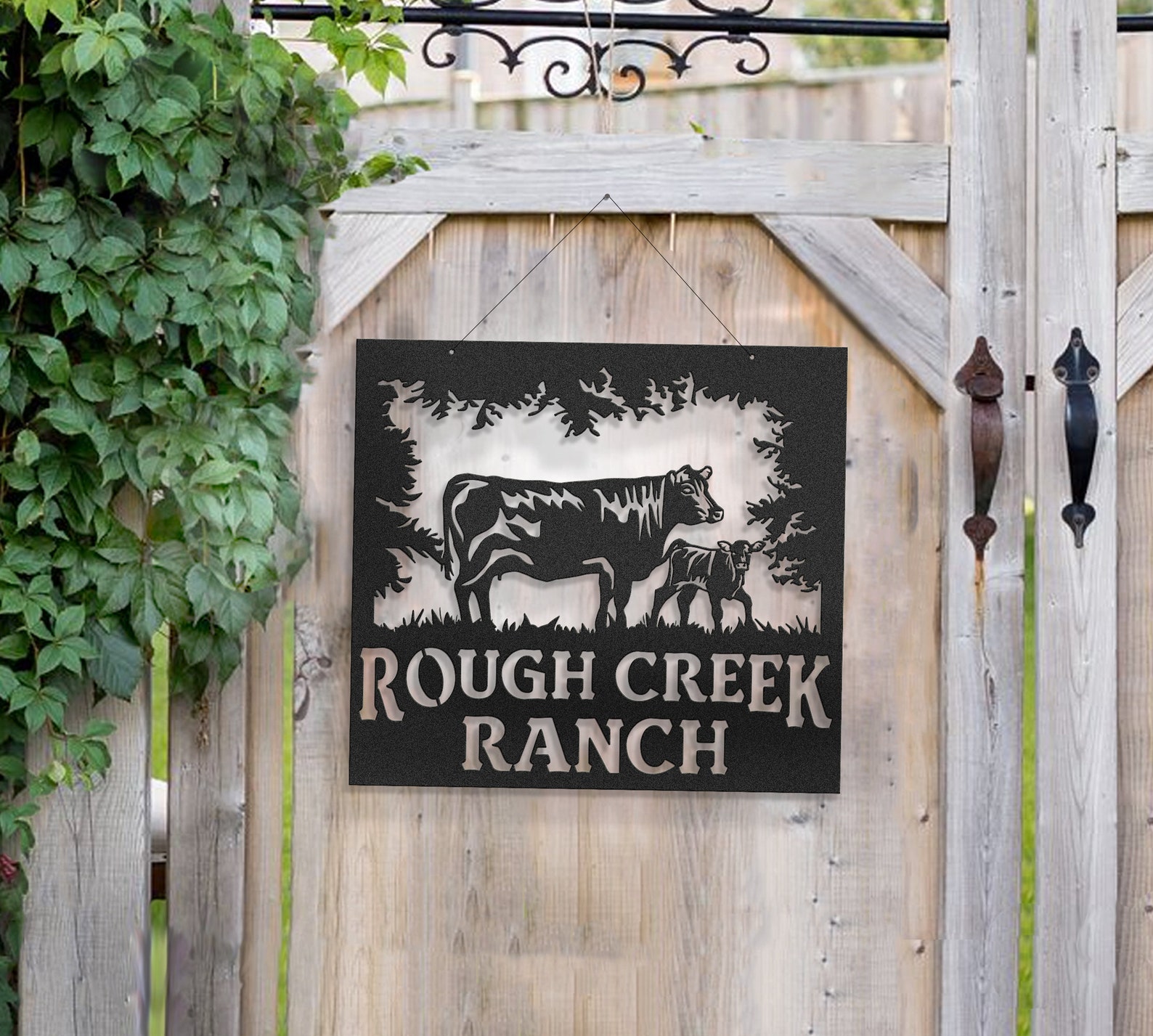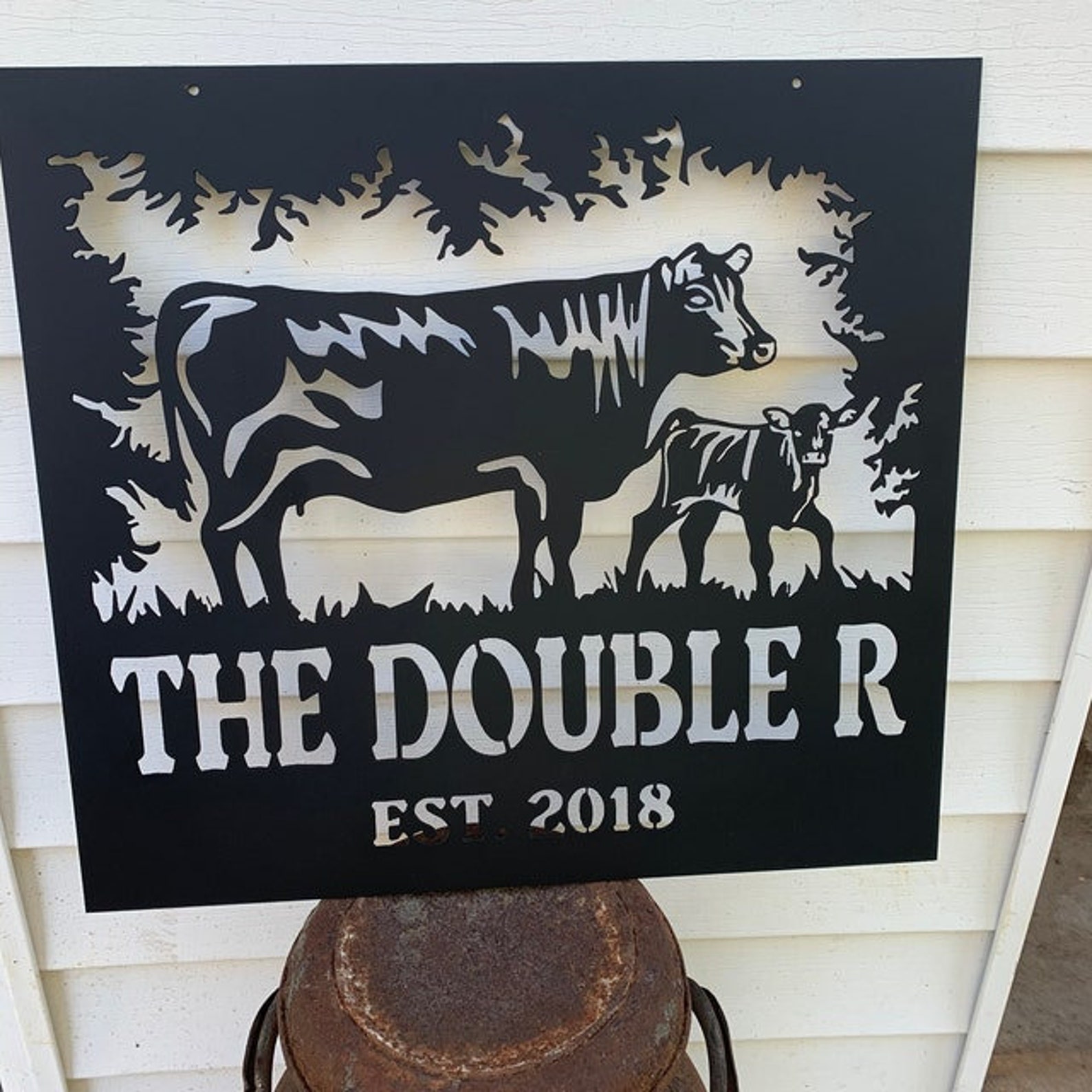 Be the first to review “Custom Cow and Calf Metal Farm Sign”