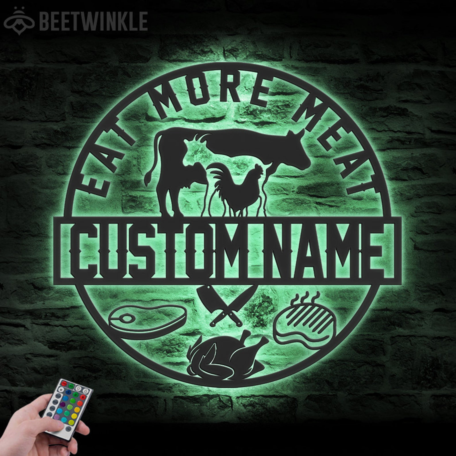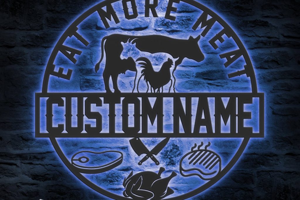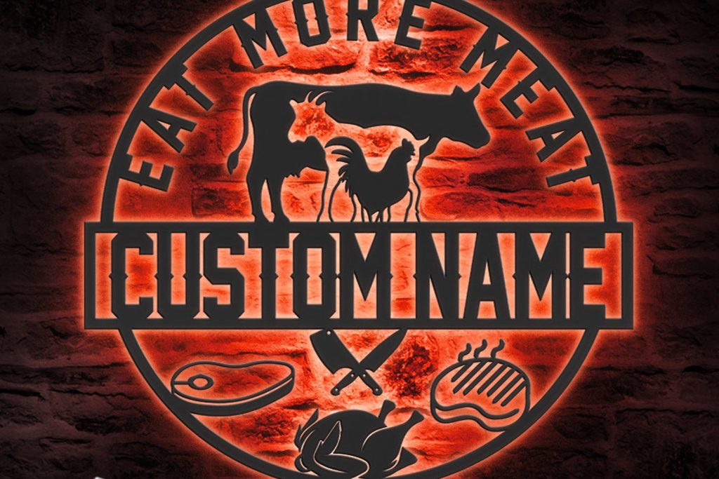 Be the first to review “Custom Cow Goat Chicken Meat Shop Metal Wall Art – LED Light, Personalized Sign”