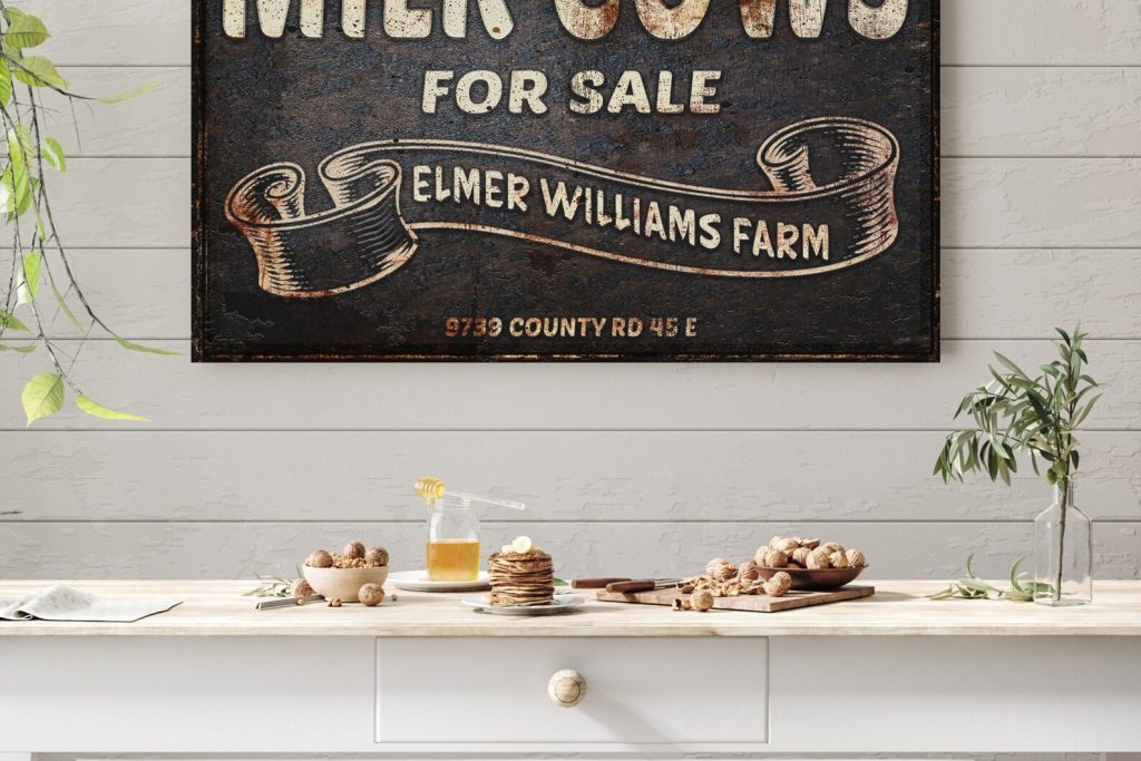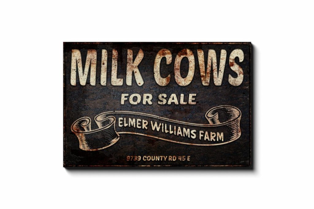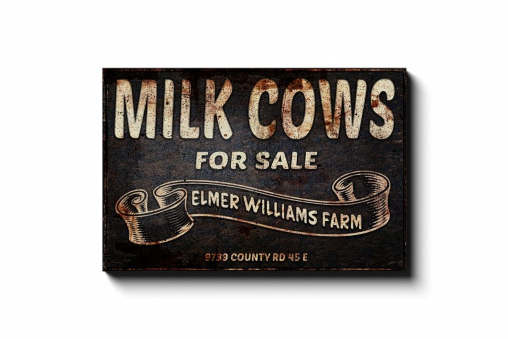Cows For Sale Sign is uniquely designed to look like an old vintage metal sign, rusty and weathered with age, but it9;s canvas! Personalize it and make it your own. This lightweight canvas art arrives ready to hang and enjoy. Your family and guests will LOVE it, and it makes a wonderful, thoughtful gift!