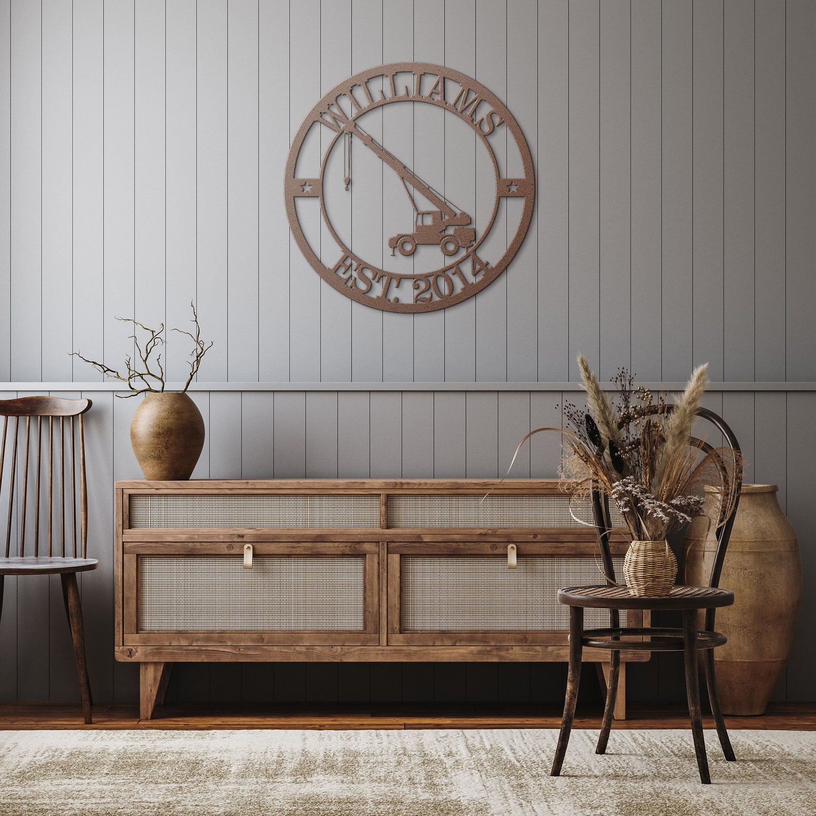 Crane Construction Metal Art – Personalized Name Sign, Custom Decor, Retirement Gift