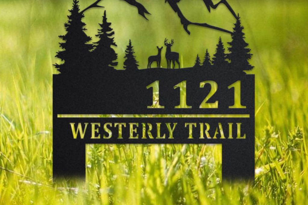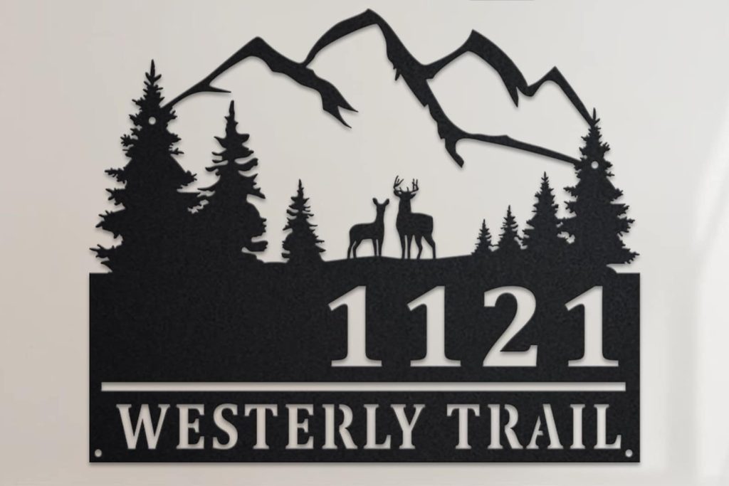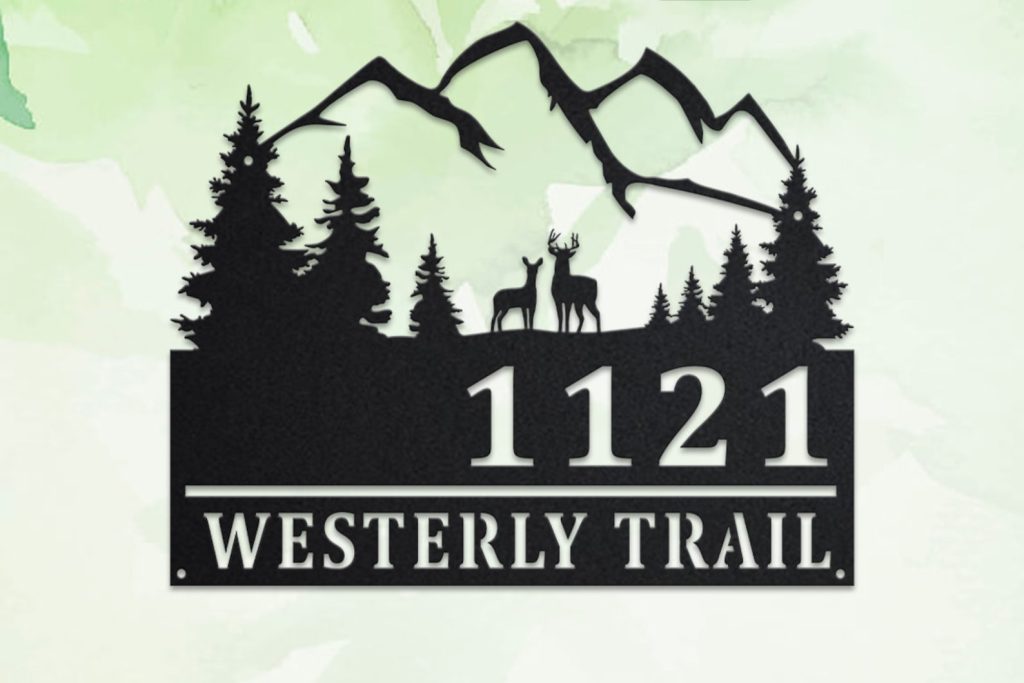 Custom Deer and Mountain Metal Address Sign – Outdoor Plaque