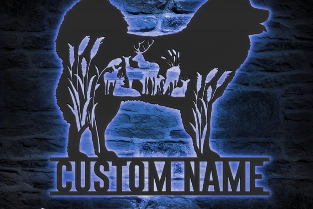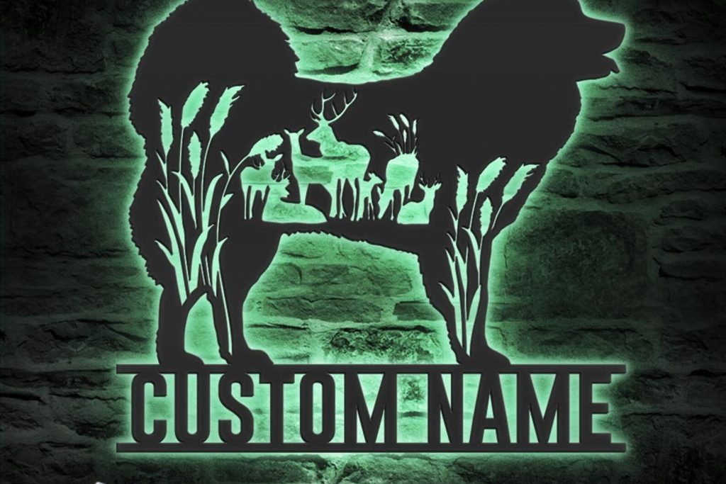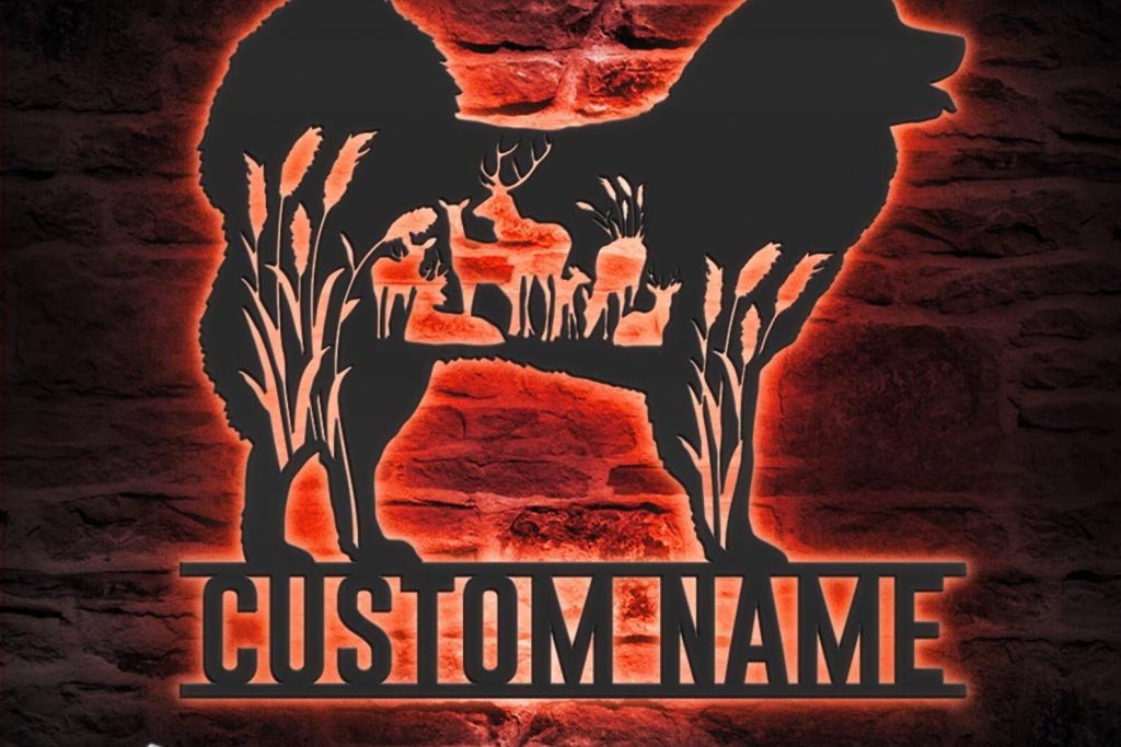 Be the first to review “Custom Deer Floral Eurasier Metal Sign with LED – Pet Decor”