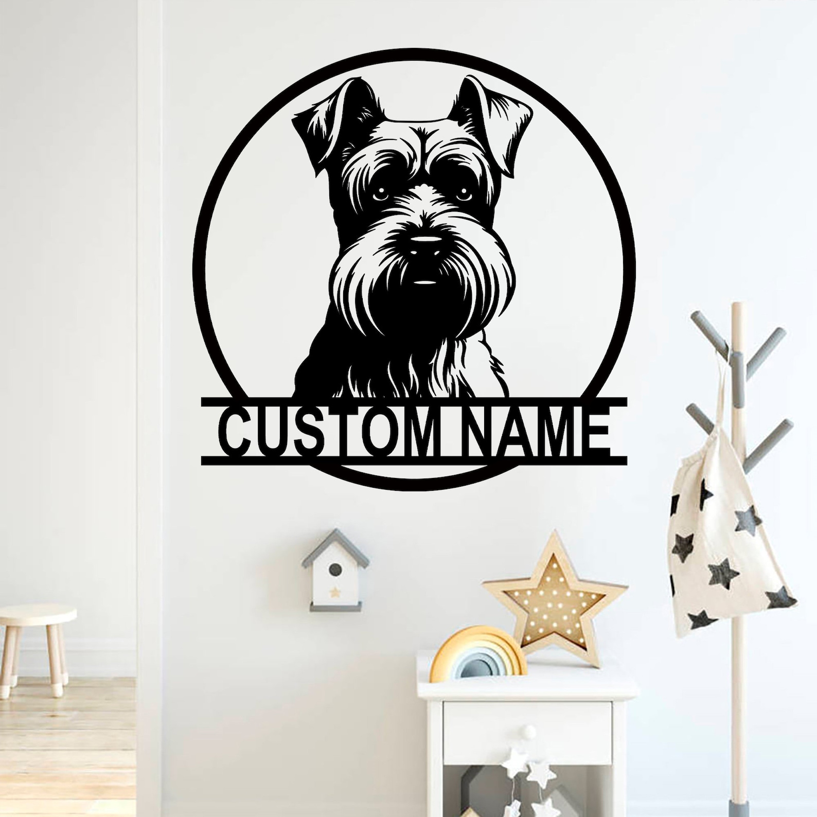 This custom Schnauzer Labrador Sheepdog metal art sign is the perfect choice for decorating your pet9;s room.