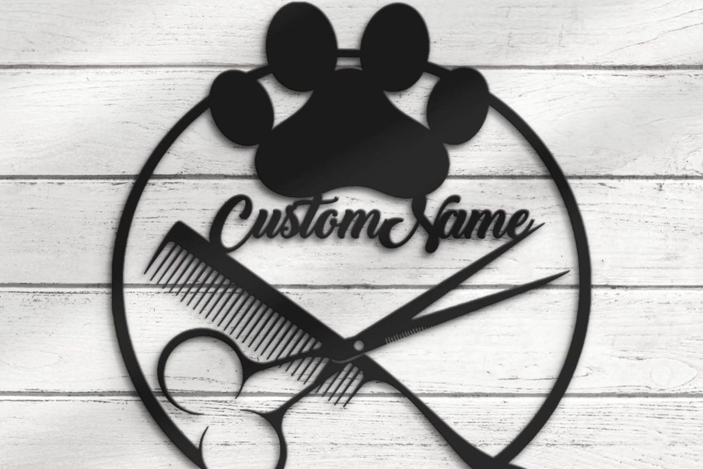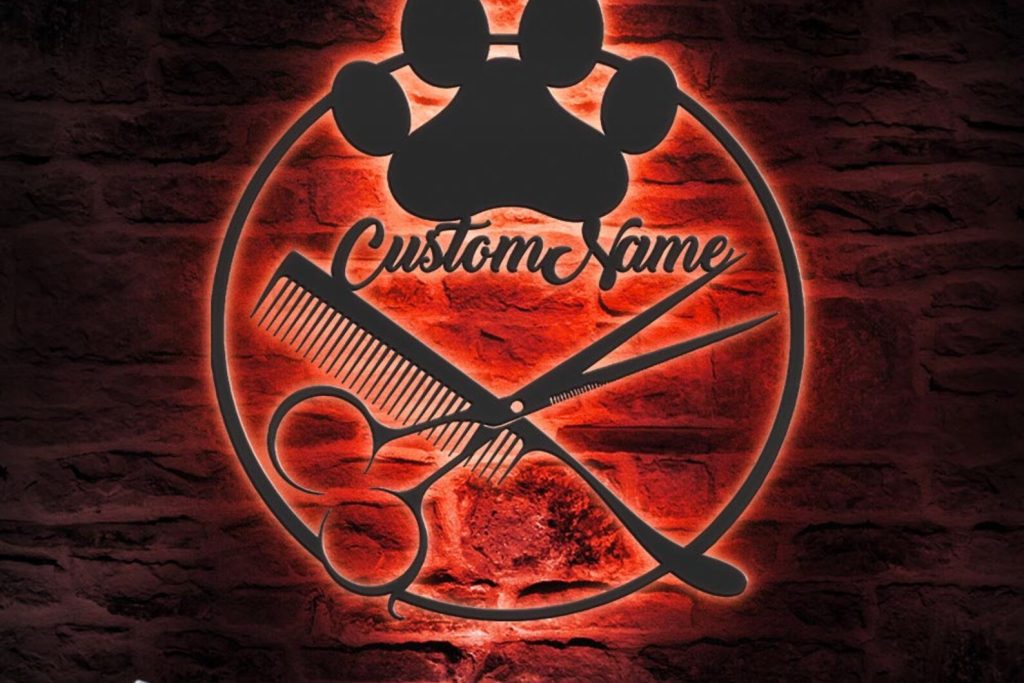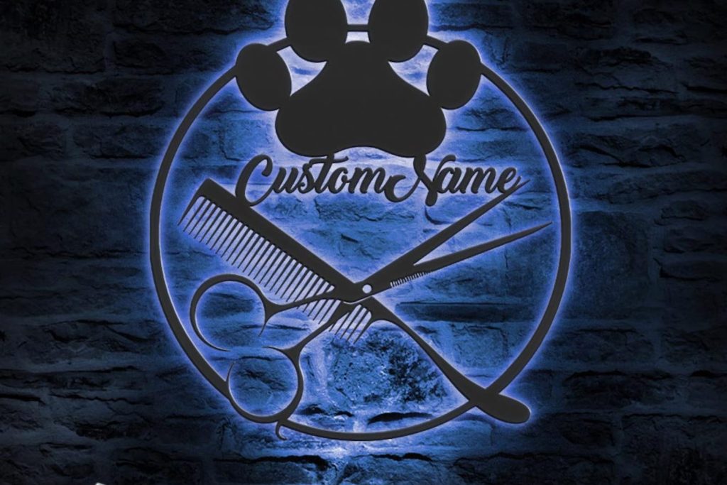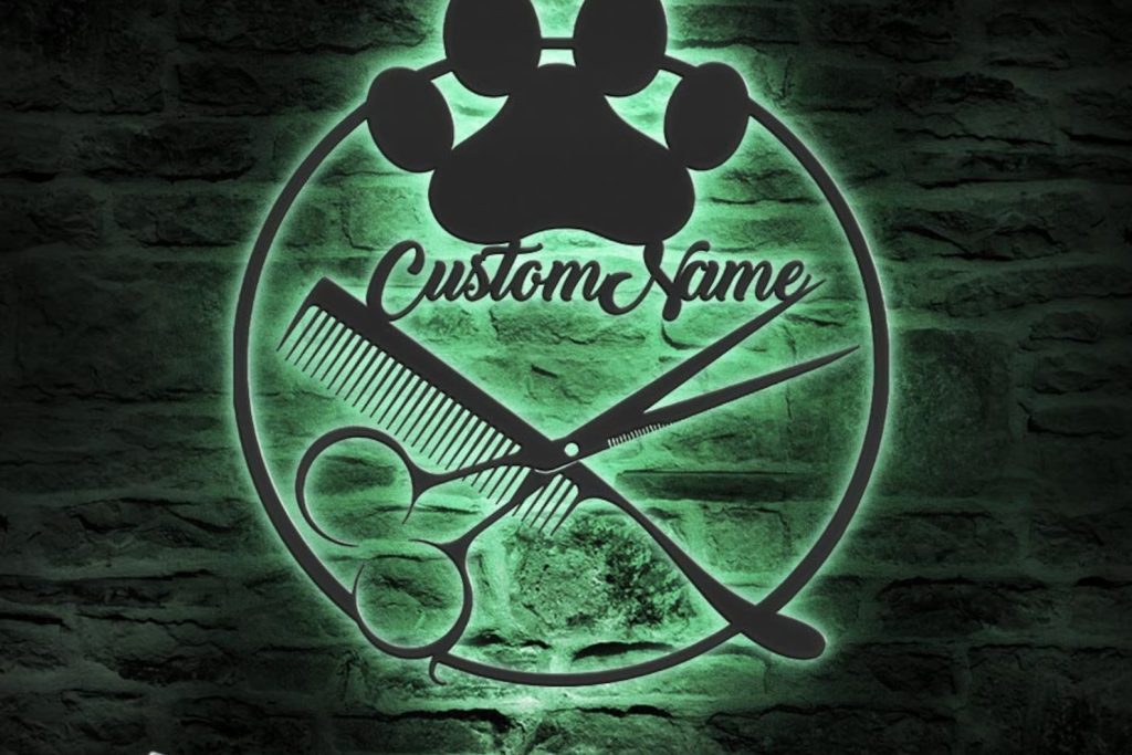 Custom Dog Grooming Salon Metal Wall Art with LED Light