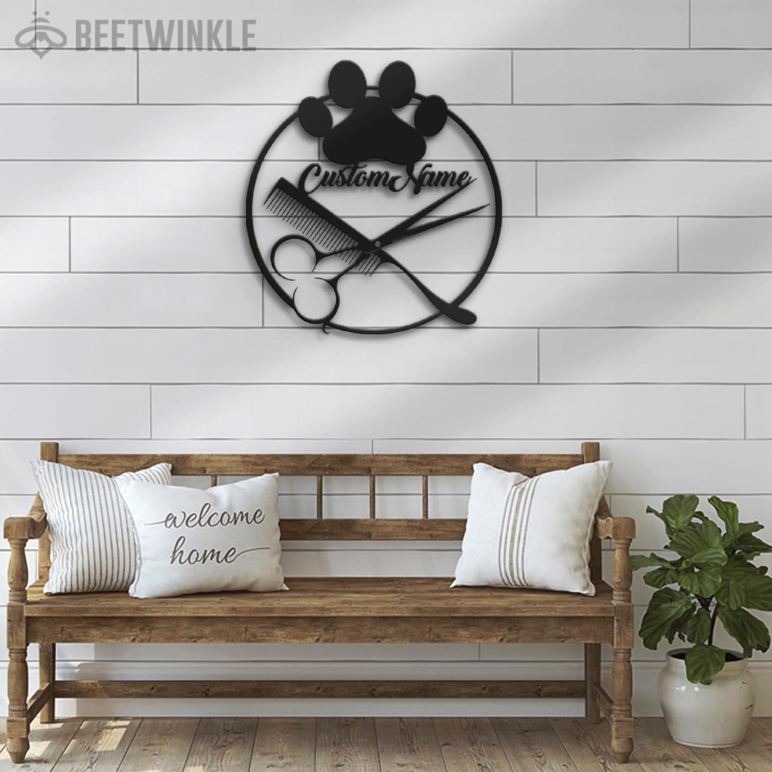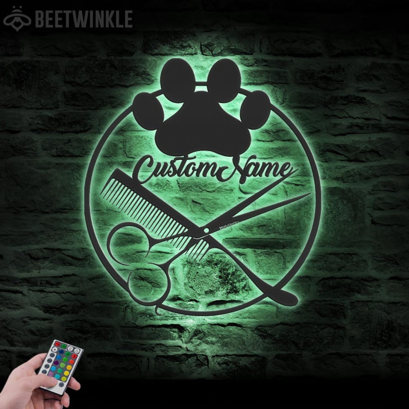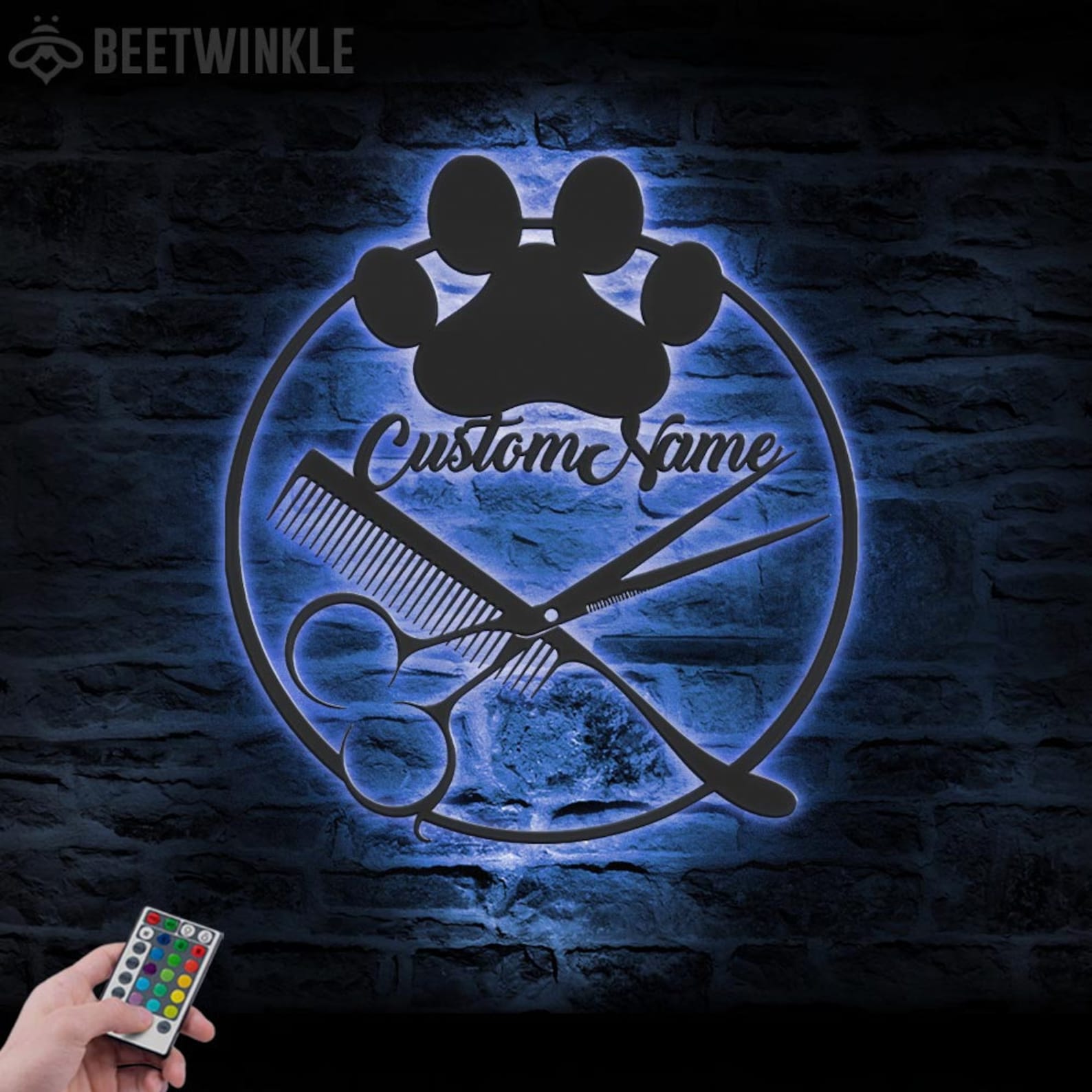 Custom Dog Grooming Salon Metal Wall Art with LED Light