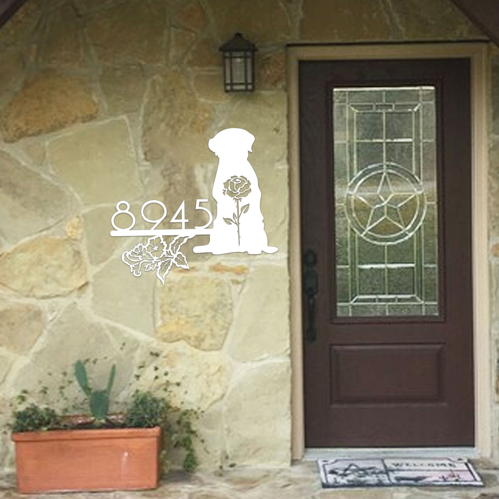 Custom Pet Dog Metal House Number Sign, Horizontal Metal Address Sign, Dog Address Sign, Outdoor Number Plate, Housewarming Gift ,Animal Lover Gift, Personalized Gift, Metal Dog Plate
