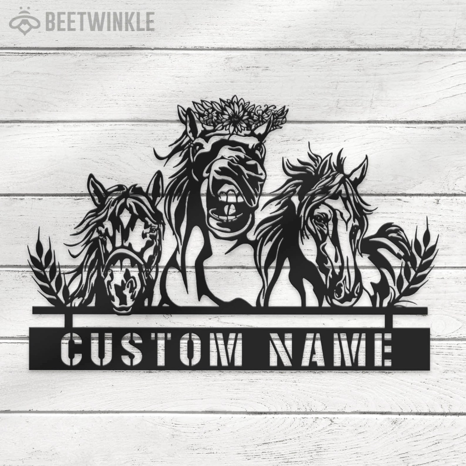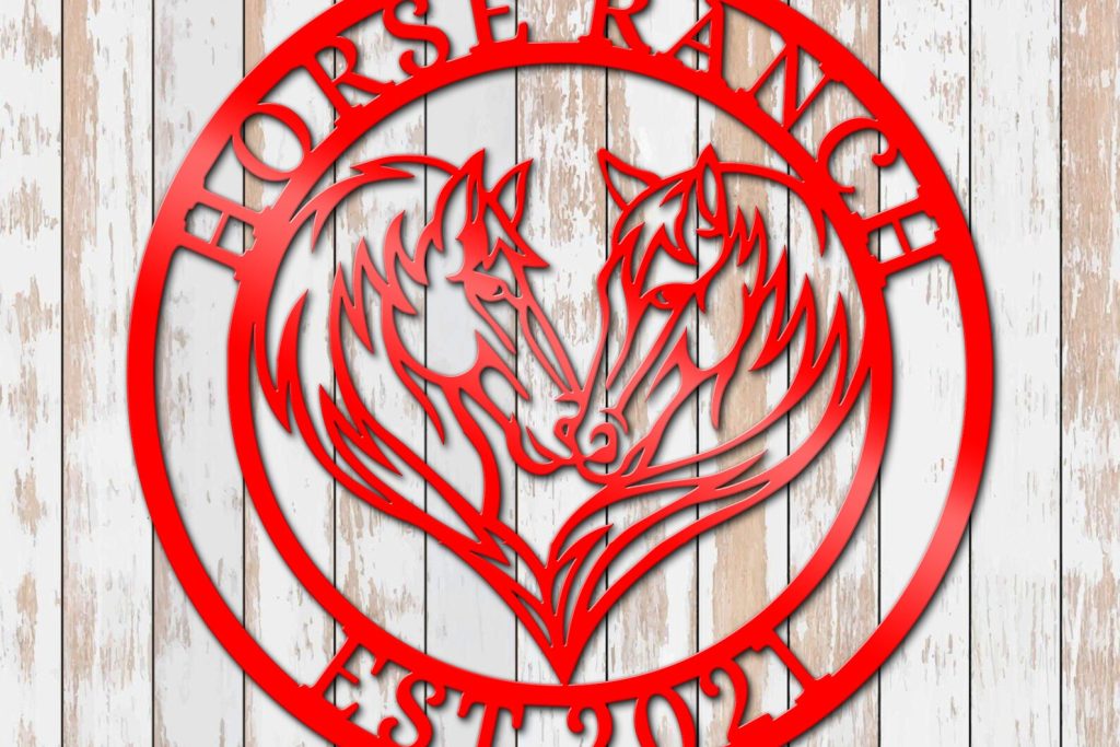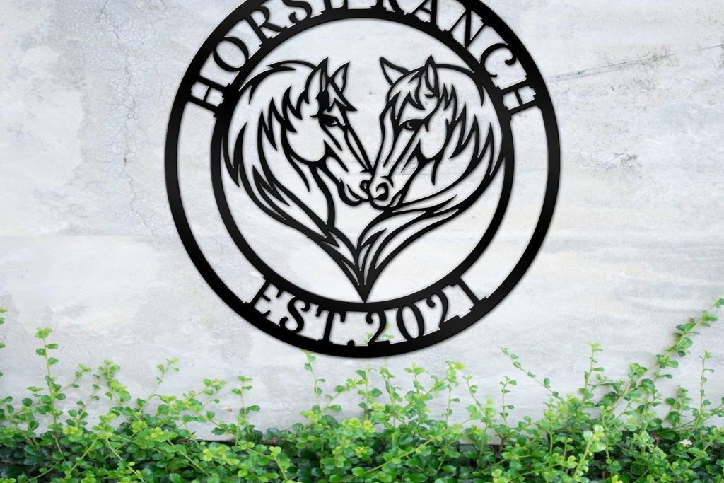 Be the first to review “Custom Double Horse Metal Sign – Eywa Ranch Decor”