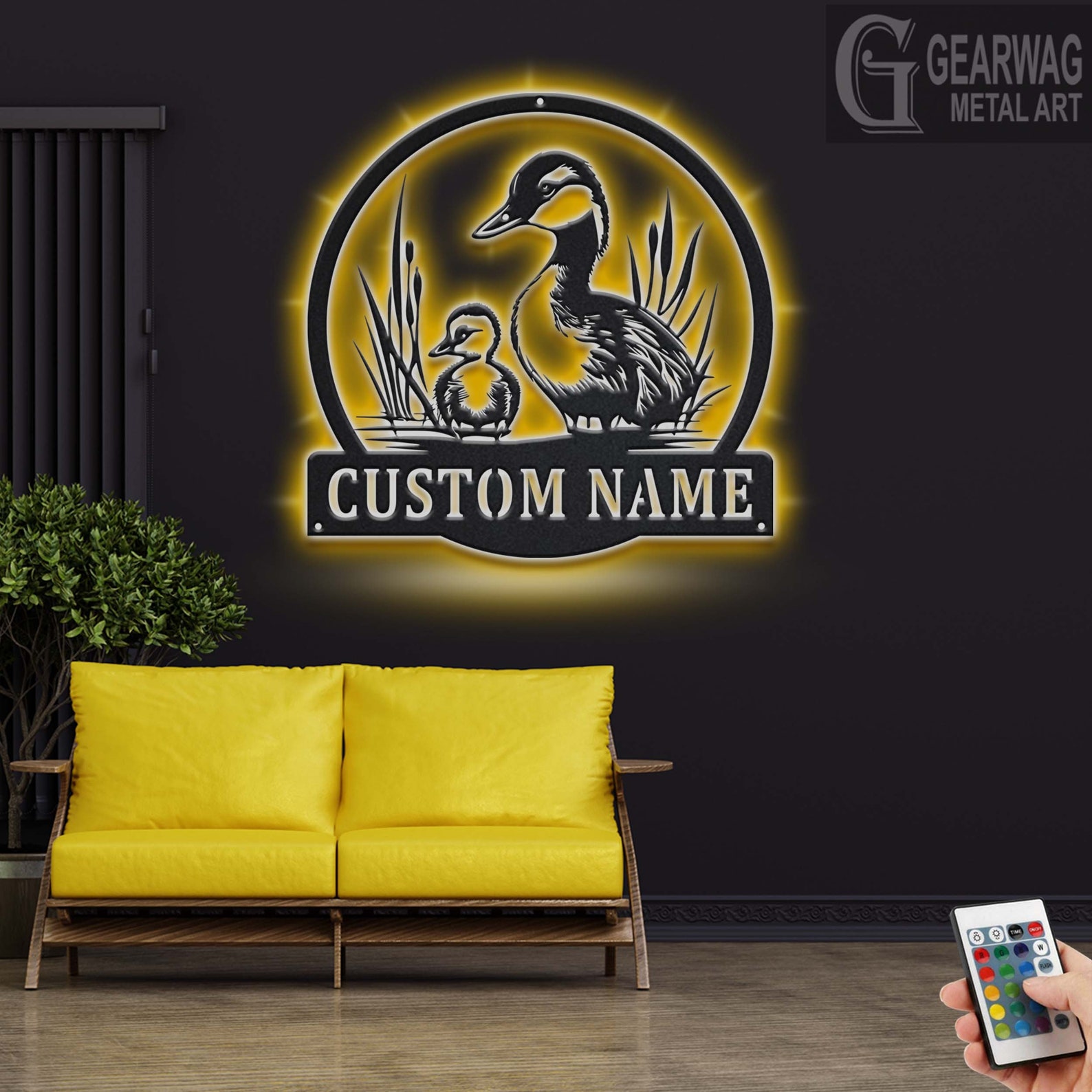 Custom Duck Metal Sign with LED Light: Personalized Room Decor
