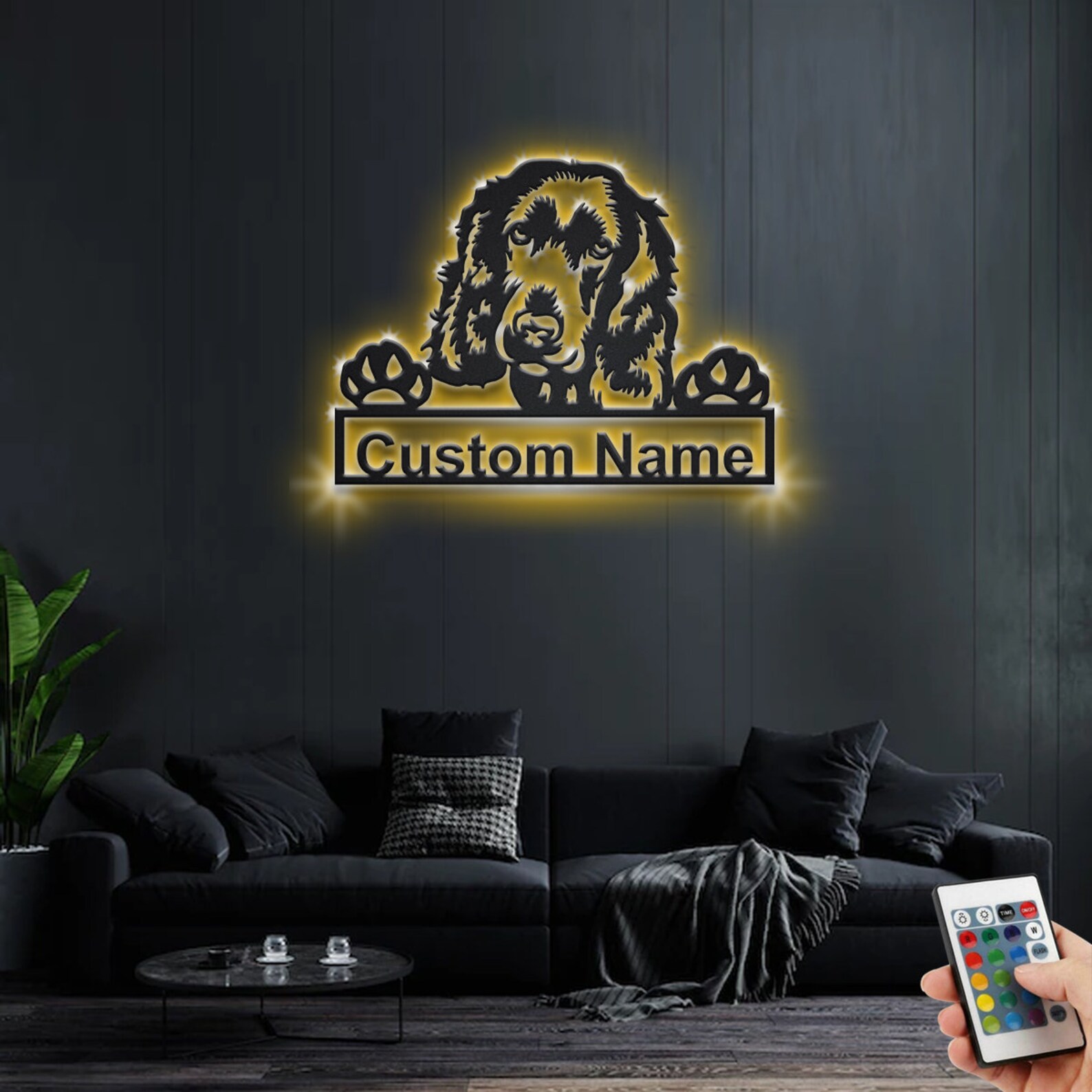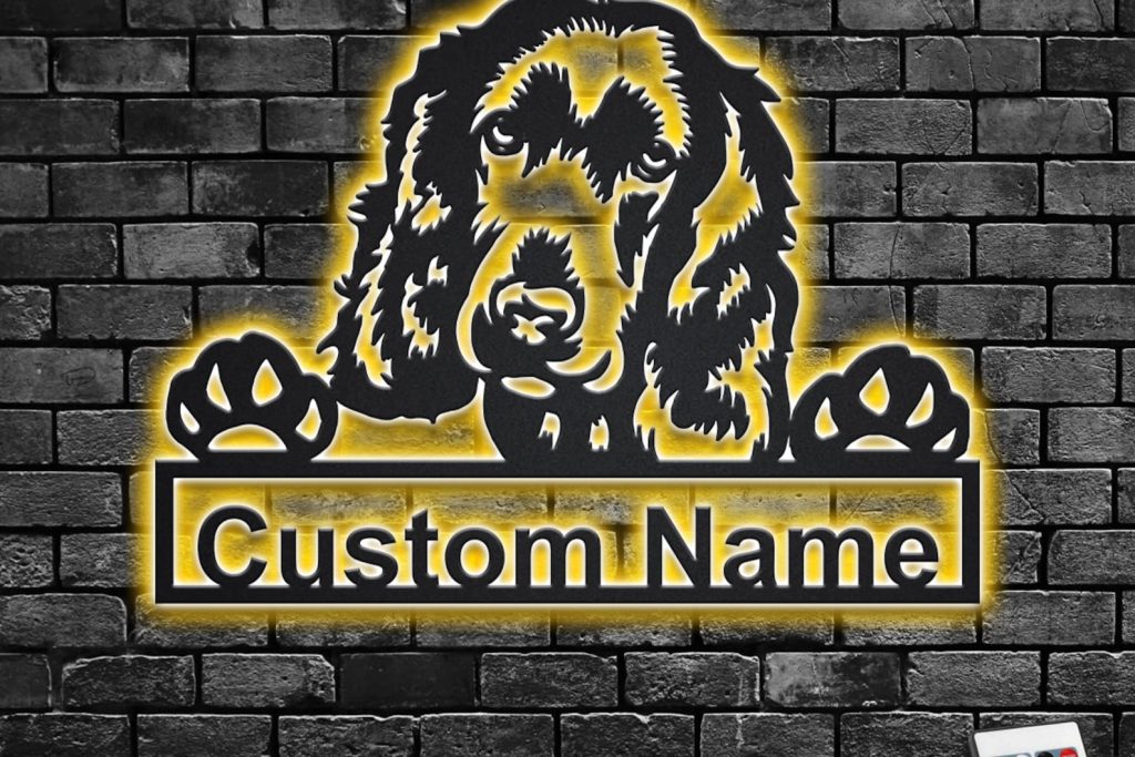 Custom English Cocker Spaniel Metal Sign with LED – Room Decor