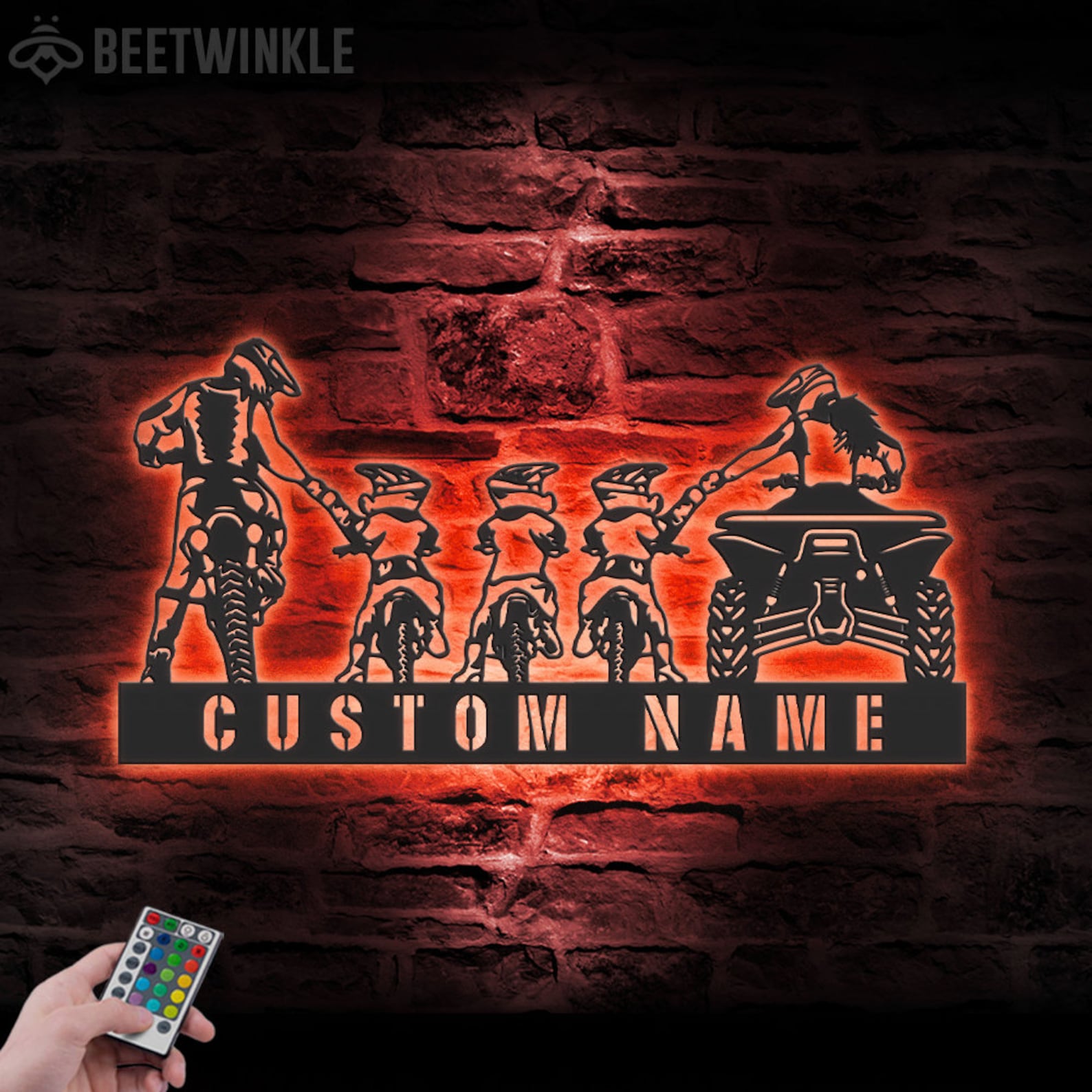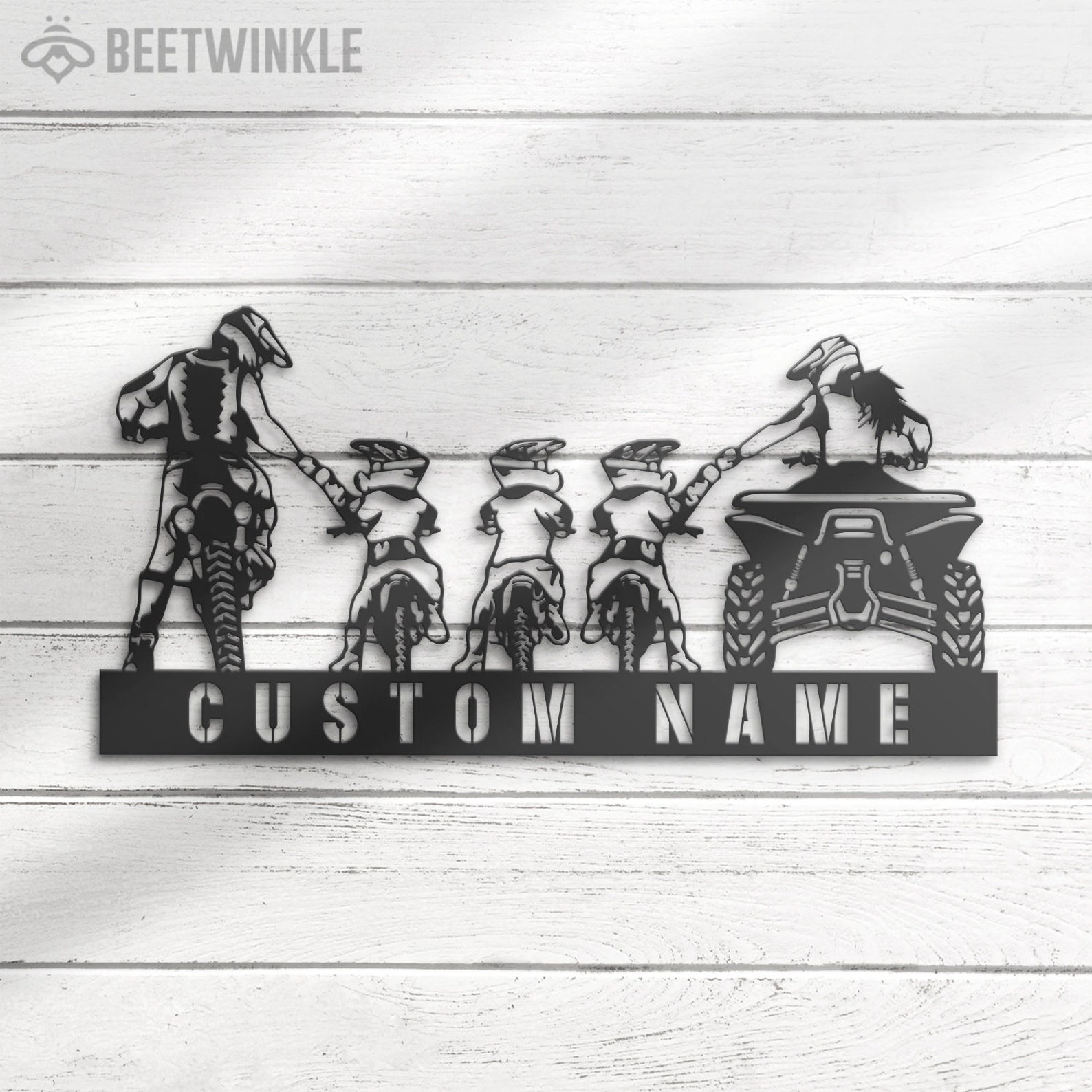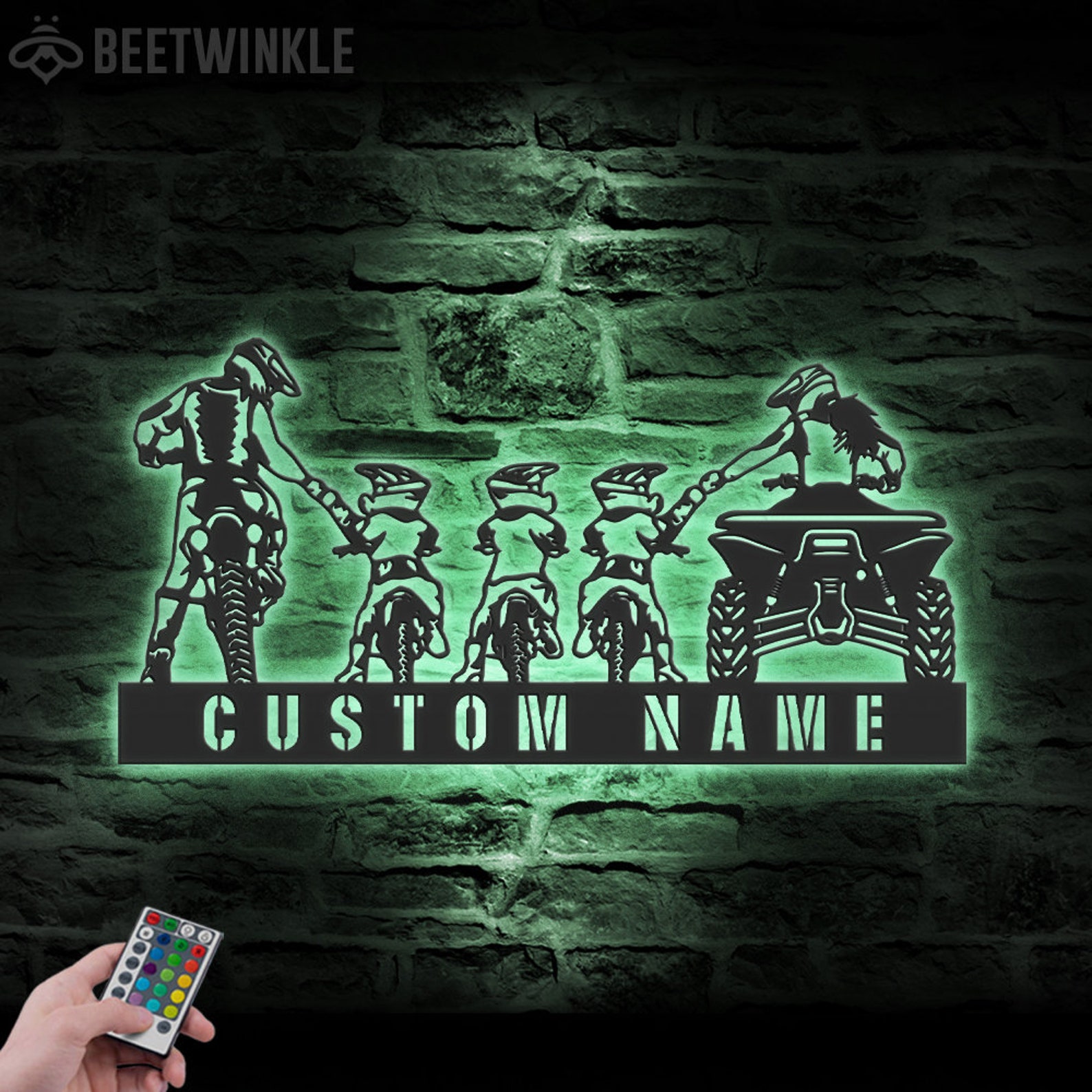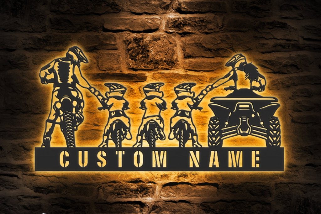 Be the first to review “Custom Family ATV Quad Motocross Biker Metal Wall Art – LED Light, Personalized Sign”
