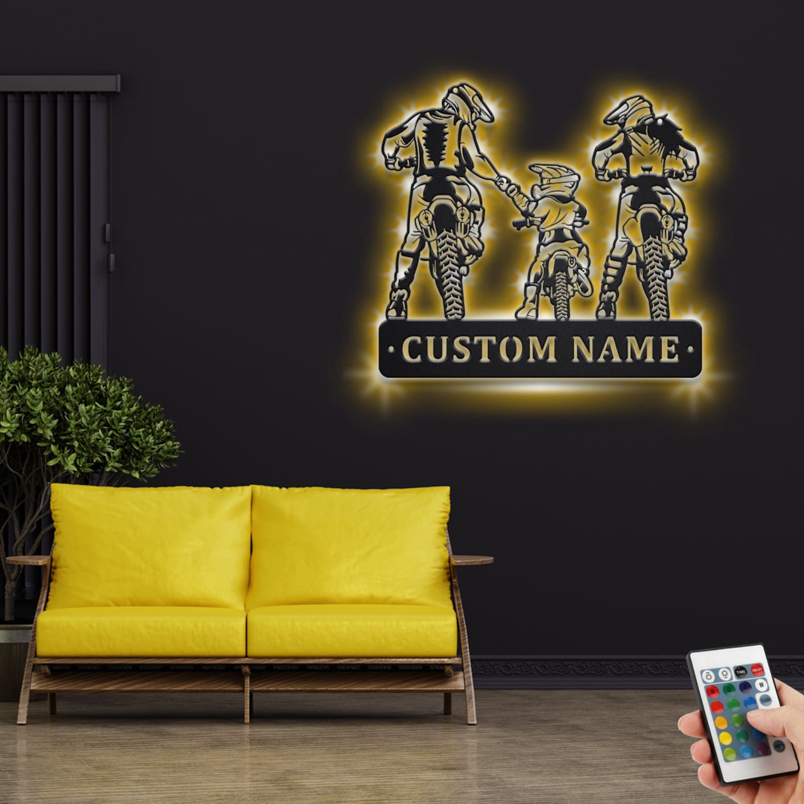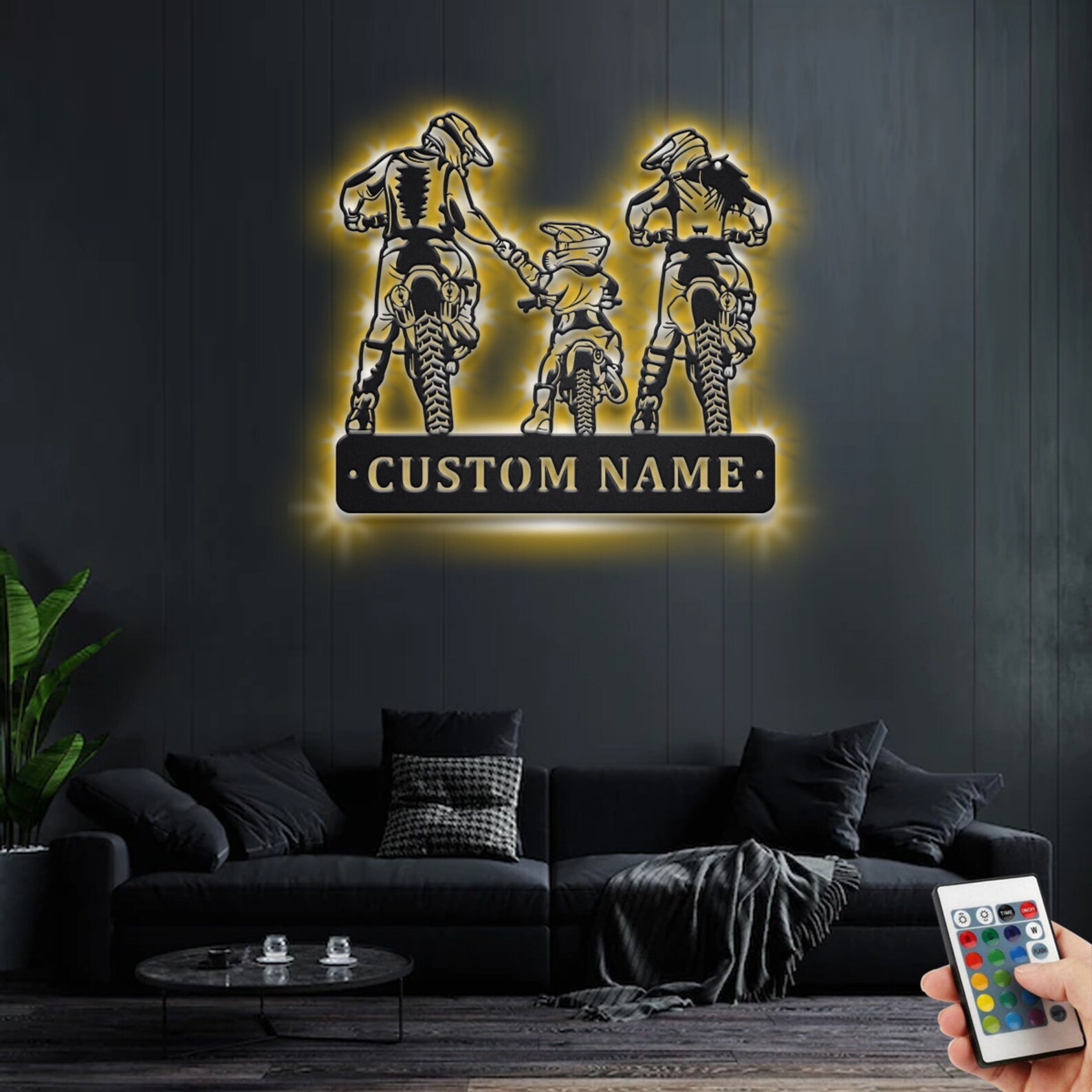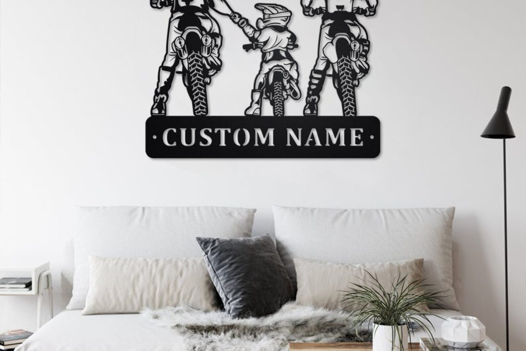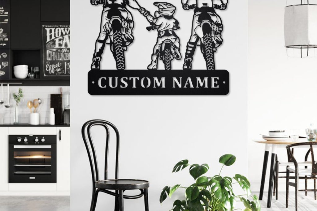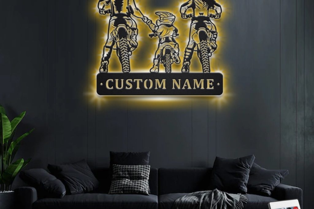 Be the first to review “Custom Family Motocross Metal Wall Art with LED Light, Personalized Name Sign”