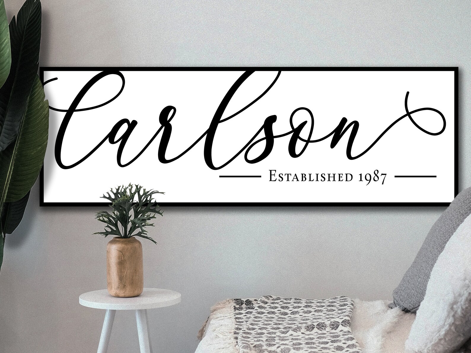 Personalized Last Name Sign | Family Name Wall Art | Farmhouse Wall Decor | Last Name Establish Date Large Canvas Print or Large Metal Print