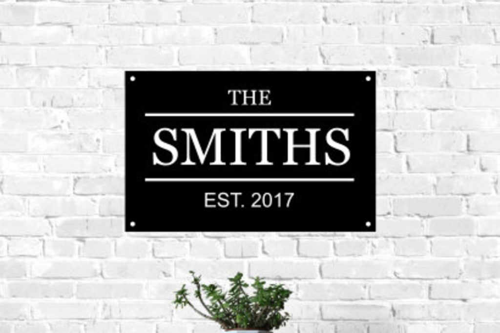 Personalized Family Name size and established date made from 14 gauge steel and painted a variety of colors.