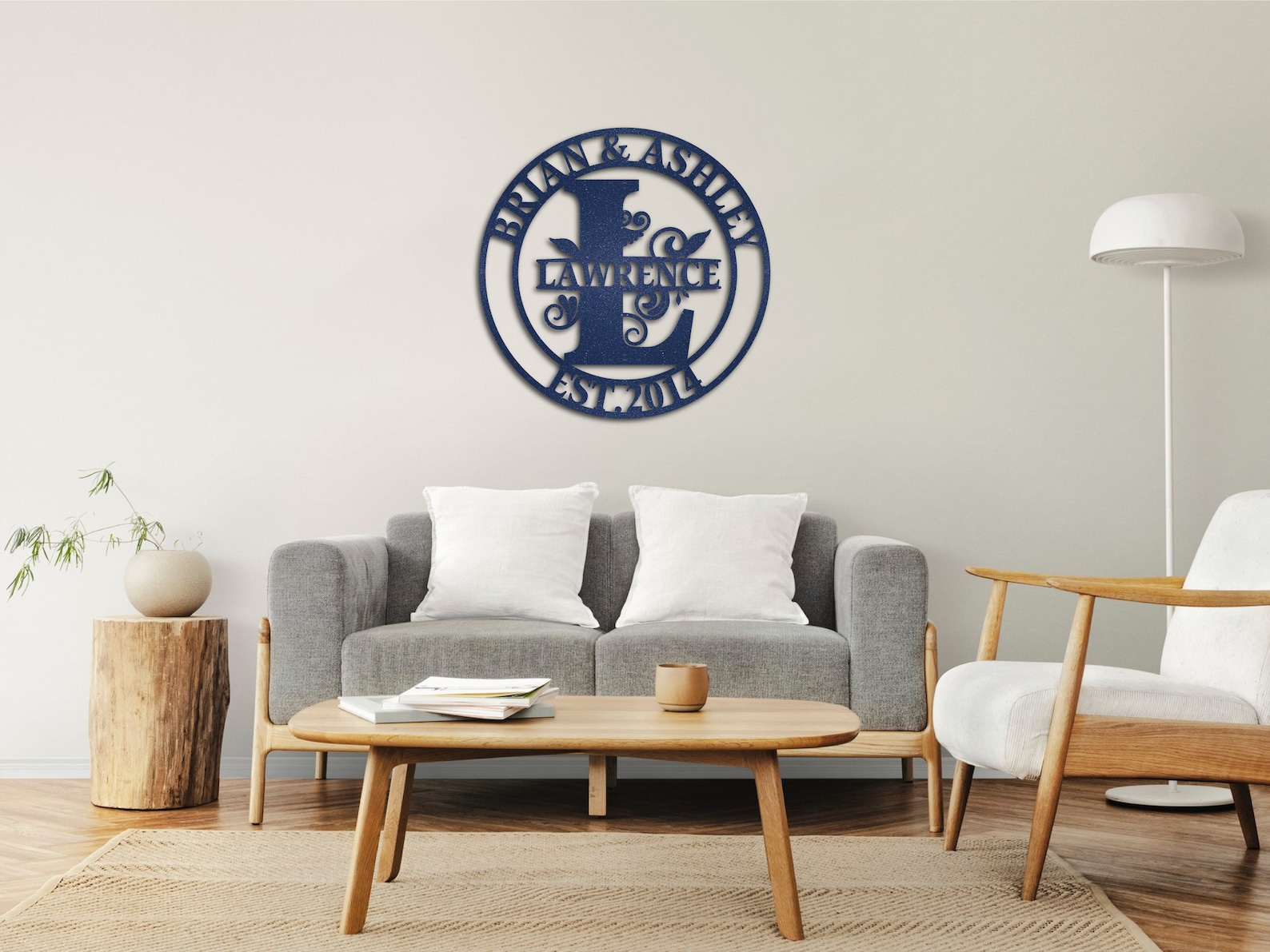 Enhance the ambiance of your living space with our exquisite Metal Name Sign, designed to make a statement and leave a lasting impression. Transform your walls into a gallery of personalized metal wall art, showcasing your family name or initials with pride.