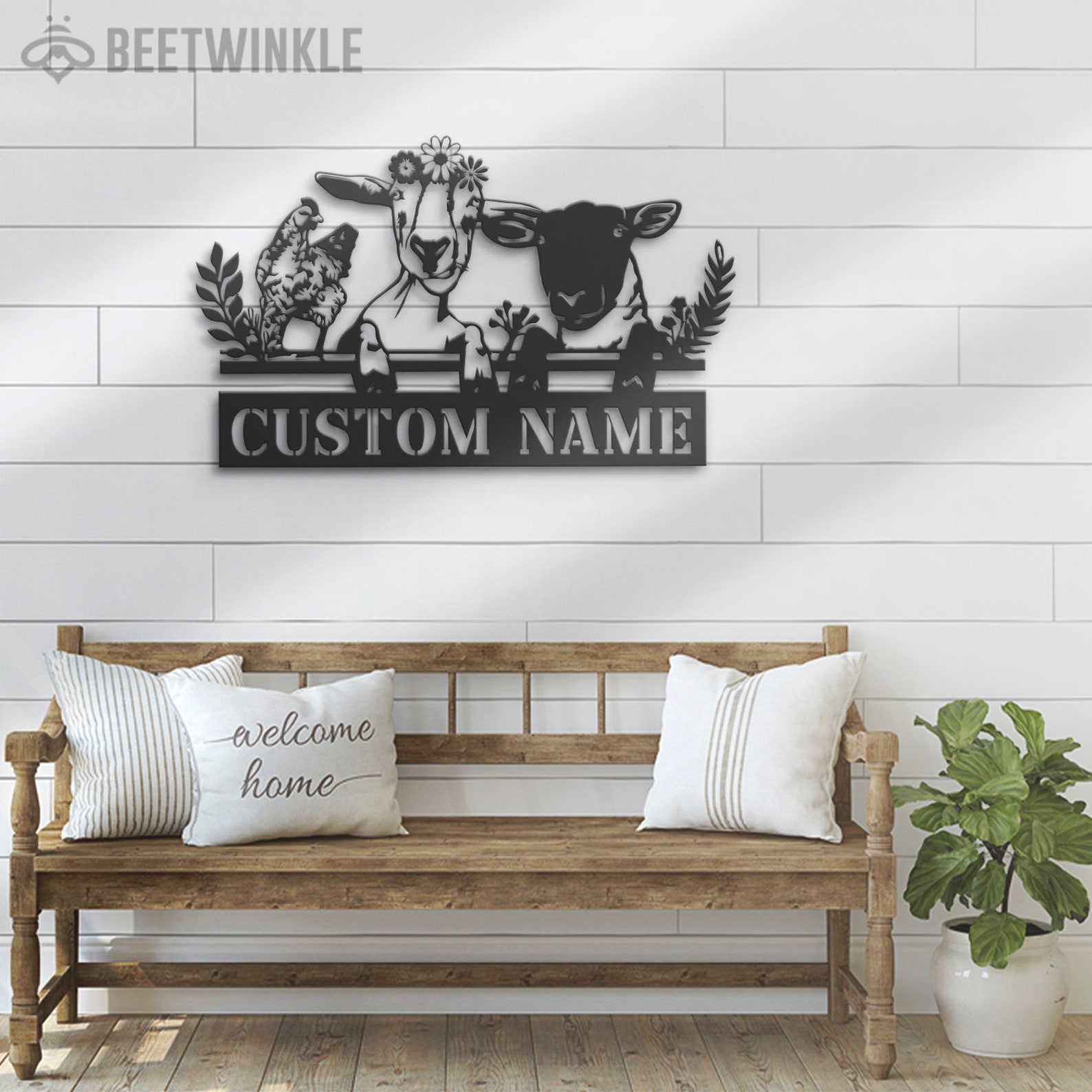 Be the first to review “Custom Farmhouse Animal Metal Wall Art with LED Light”