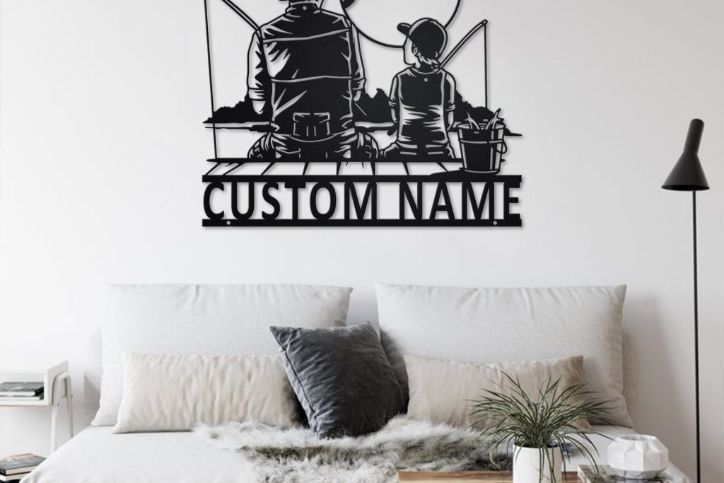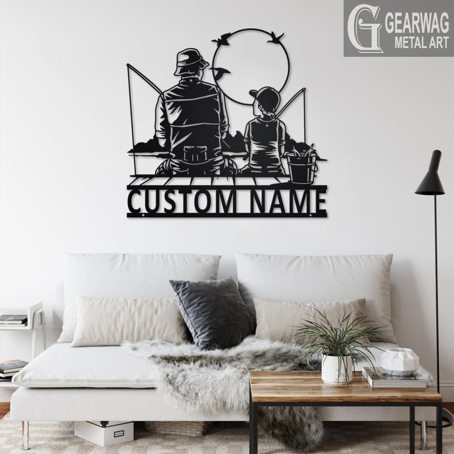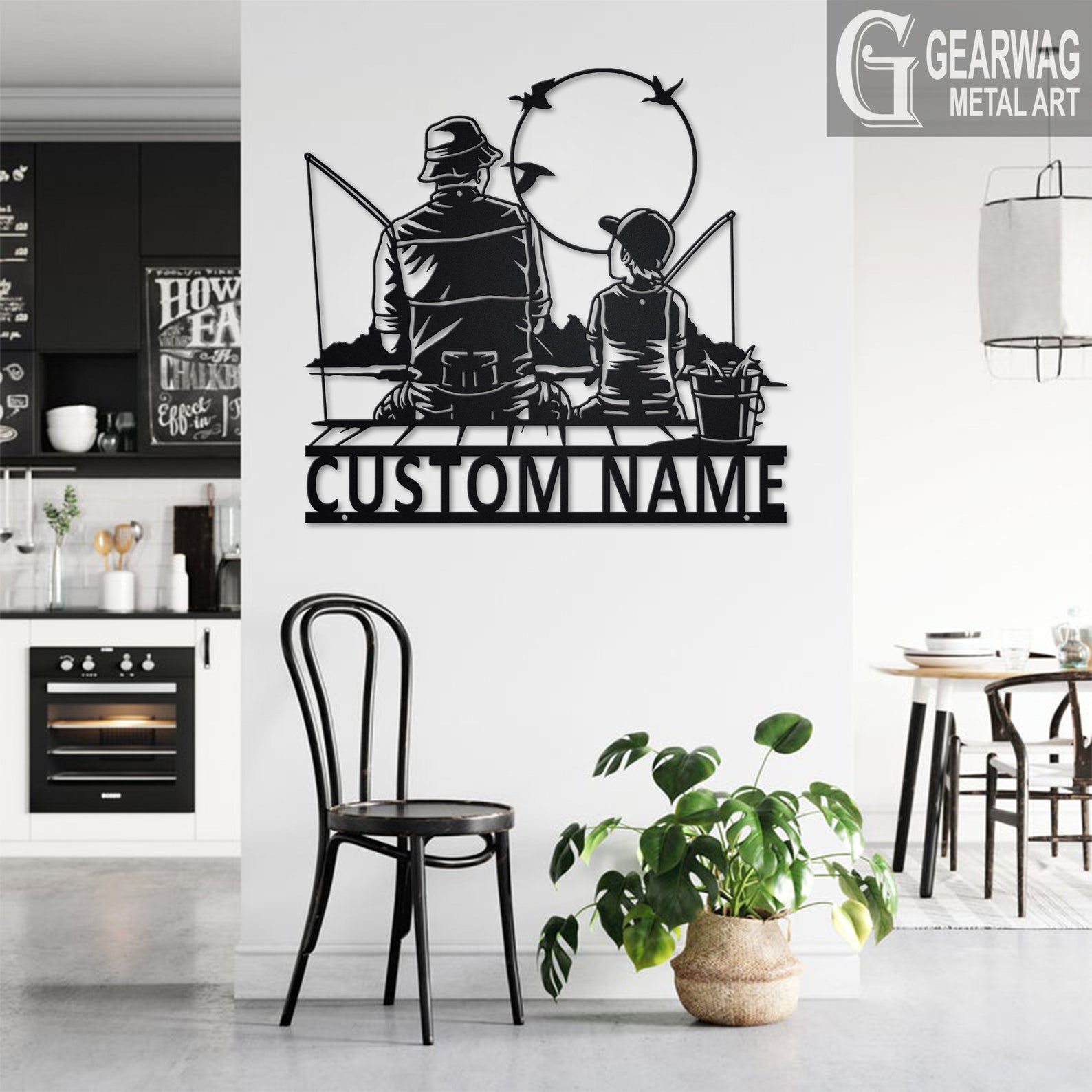 Custom Father and Son Fishing Metal Wall Art with LED Light