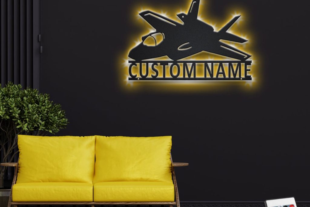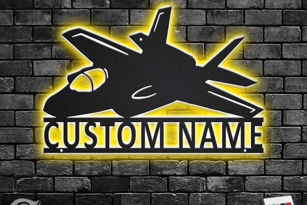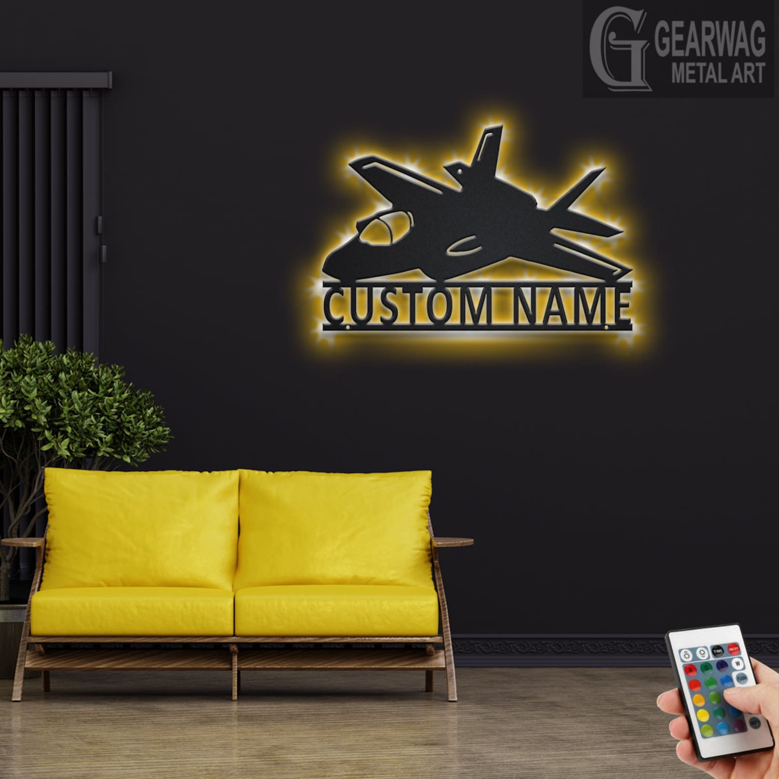 Custom Fighter Aircraft Metal Wall Art with LED Light