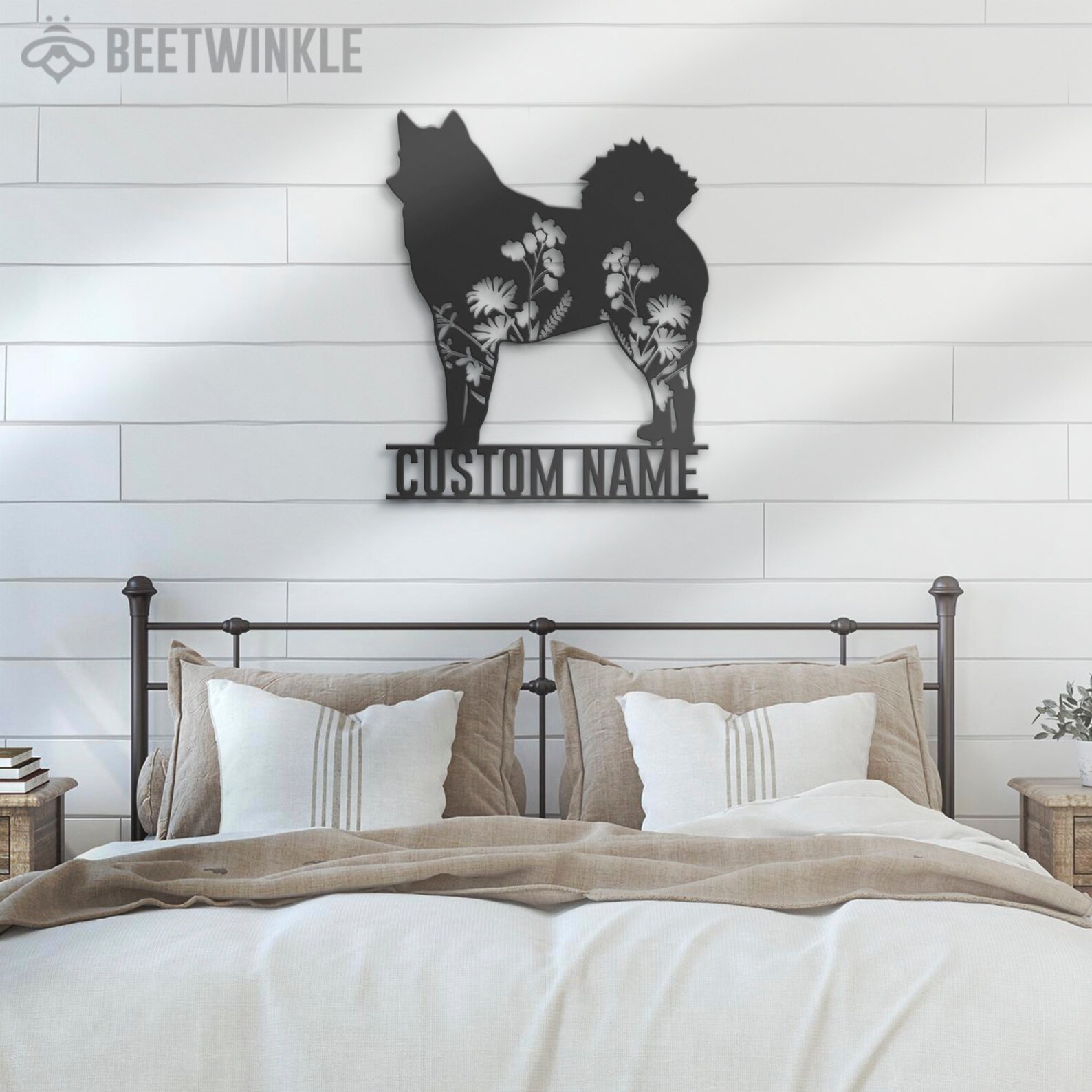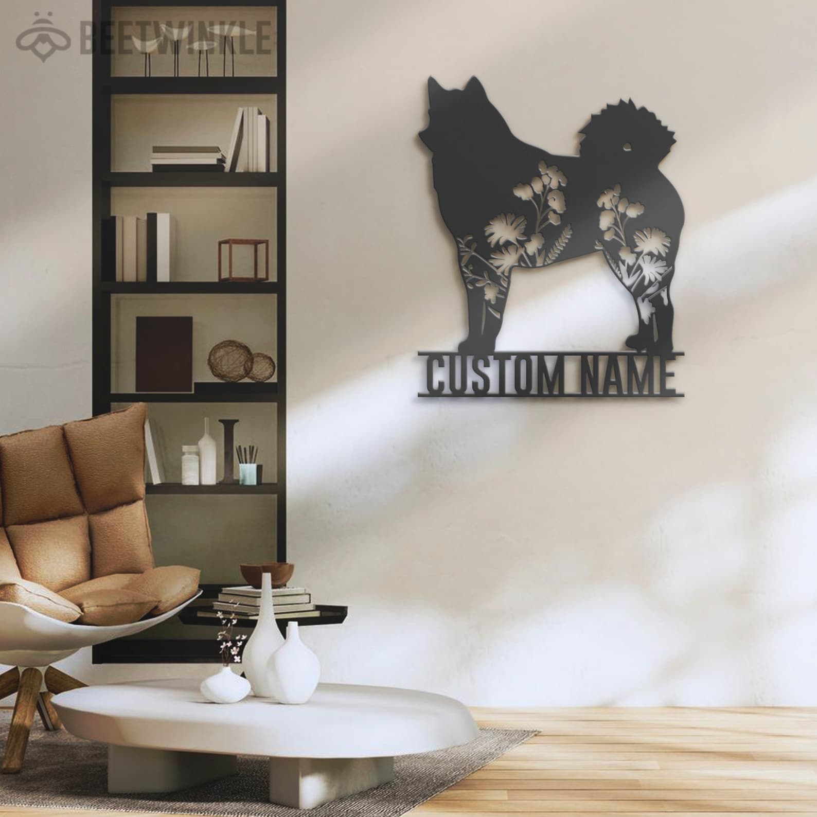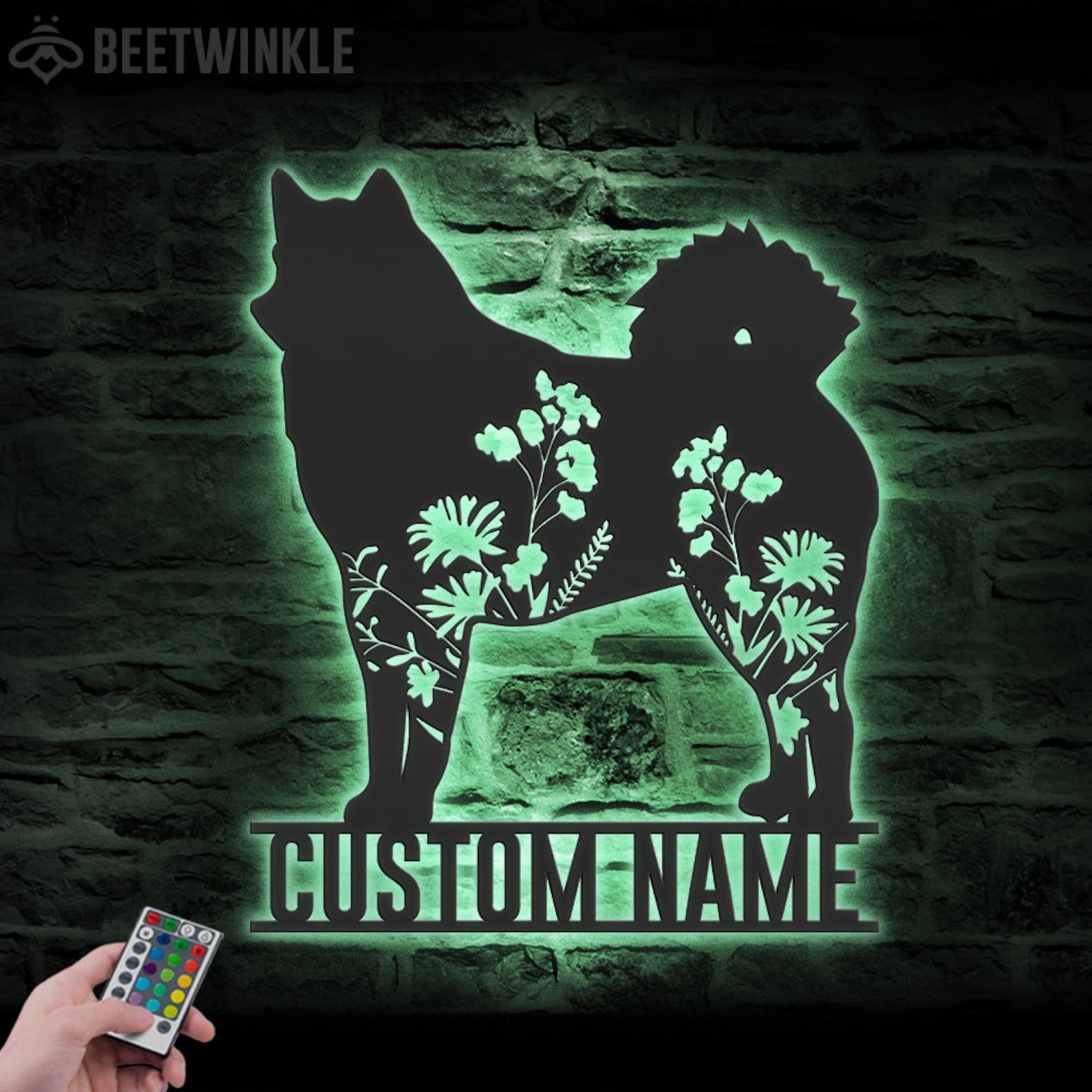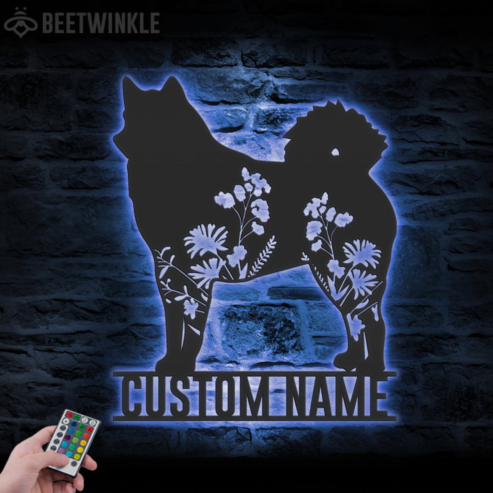 Custom Finnish Spitz Floral LED Metal Art – Dog Sign
