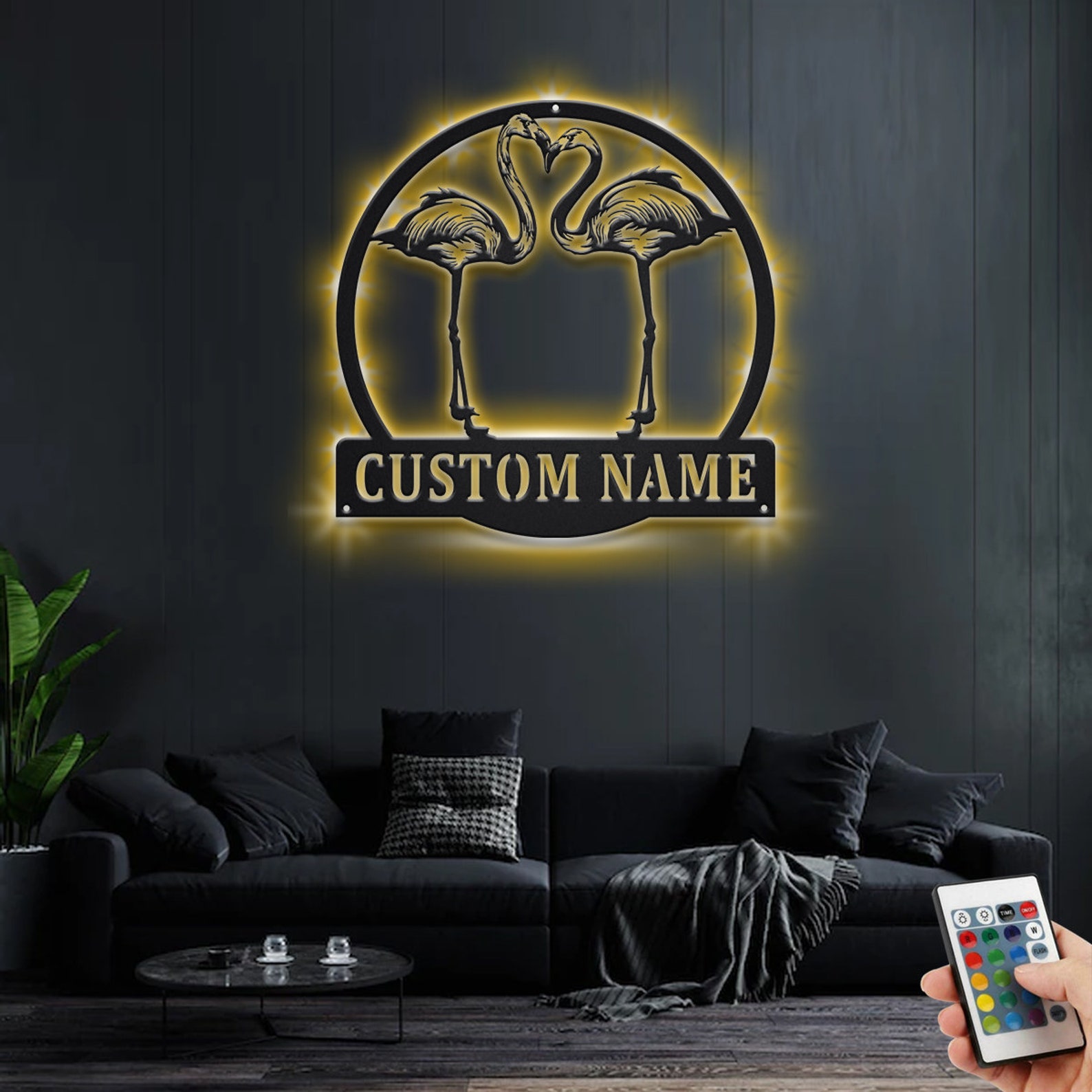 Custom Flamingo Couple Metal Wall Art with LED Light