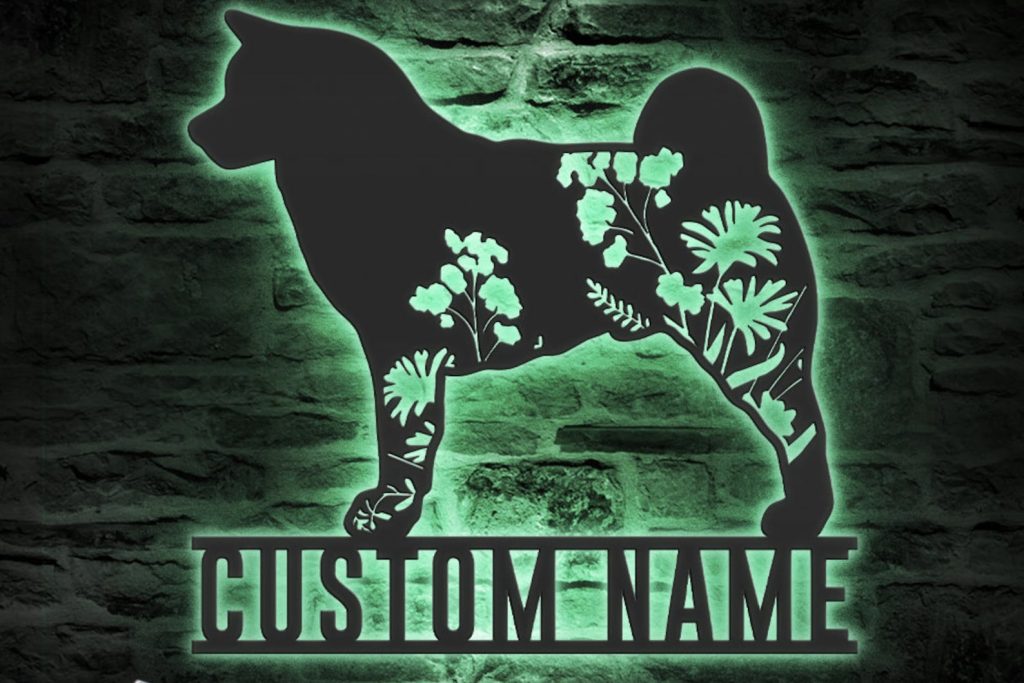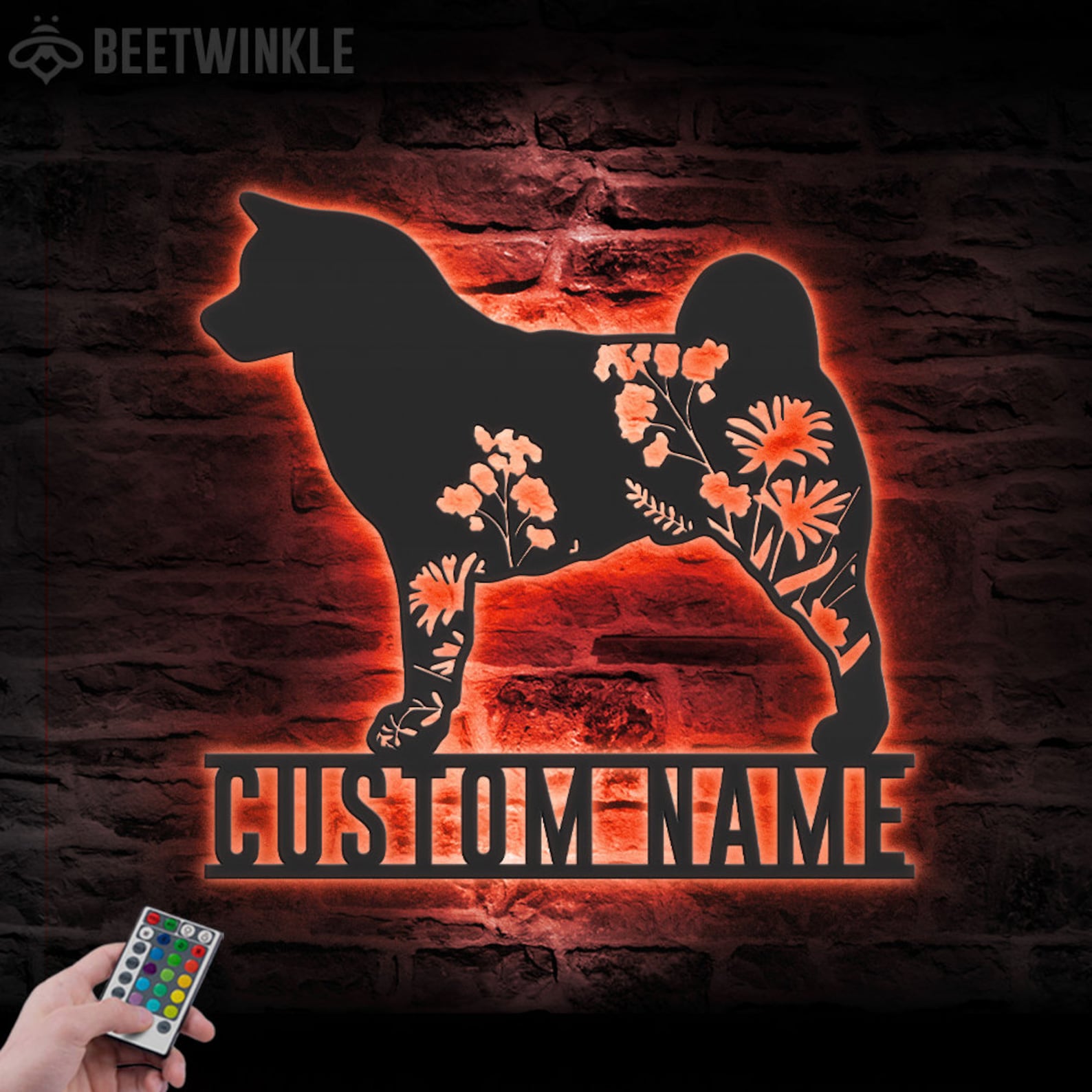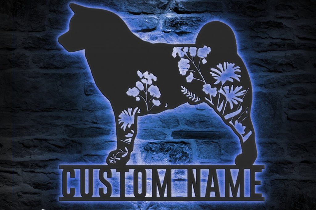 Be the first to review “Custom Floral Akitas Metal Wall Art with LED Light”