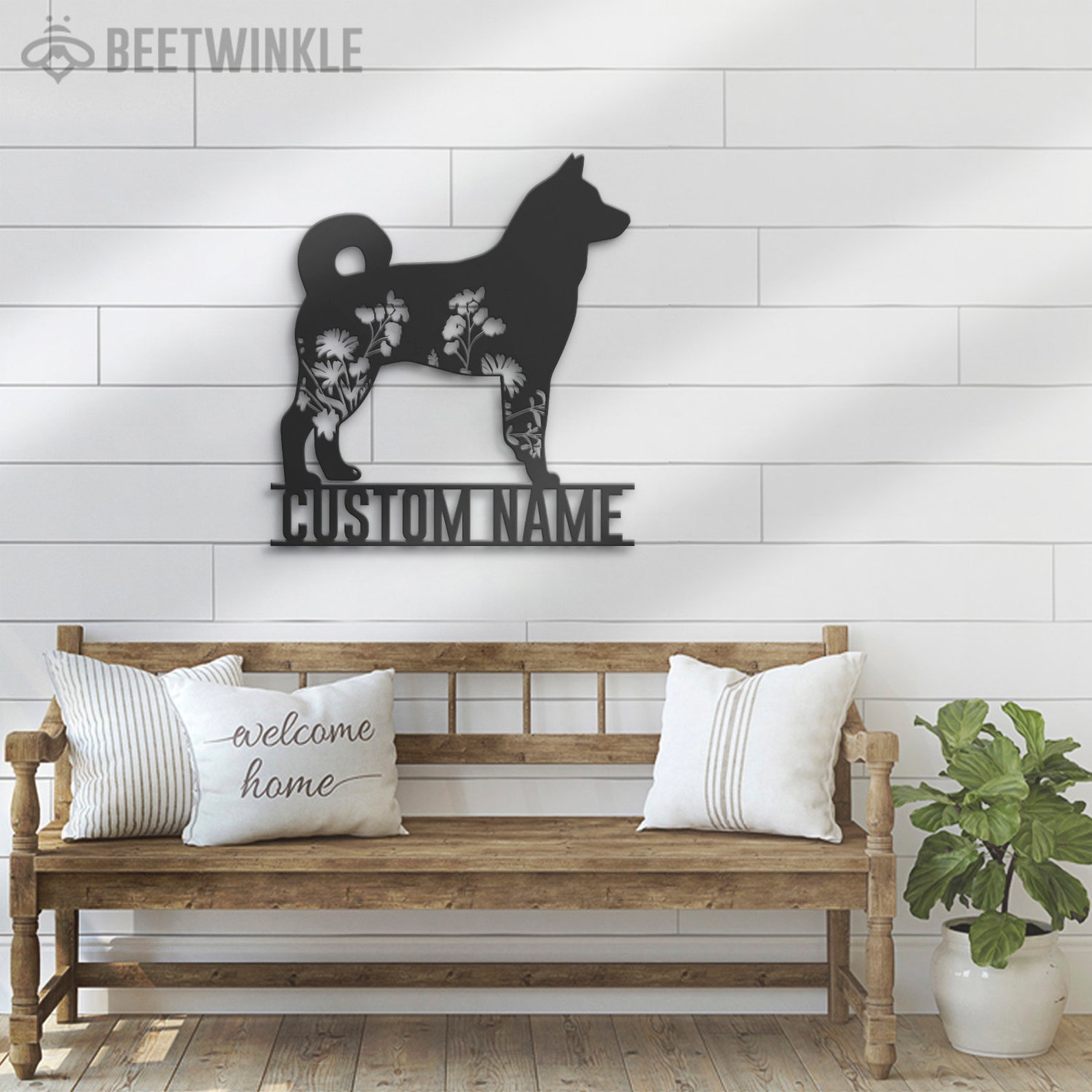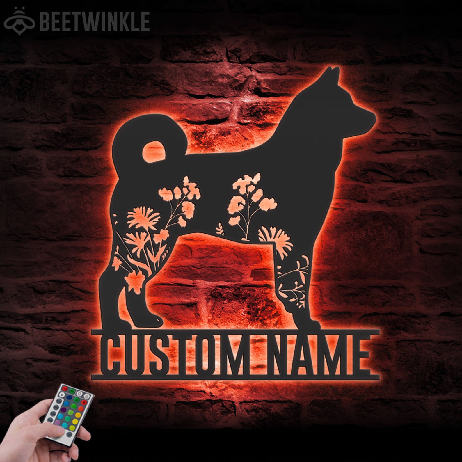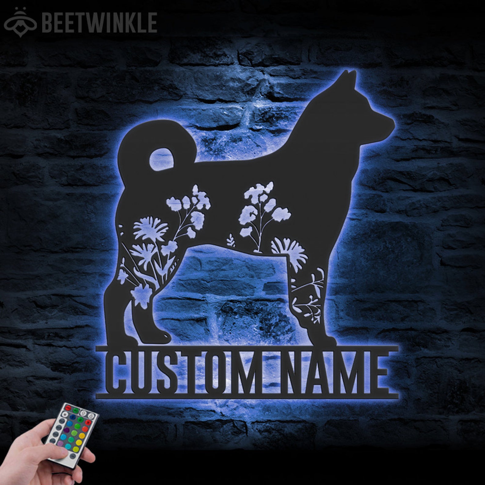 Be the first to review “Custom Floral Elkhound LED Metal Art – Dog Lover Name Sign”