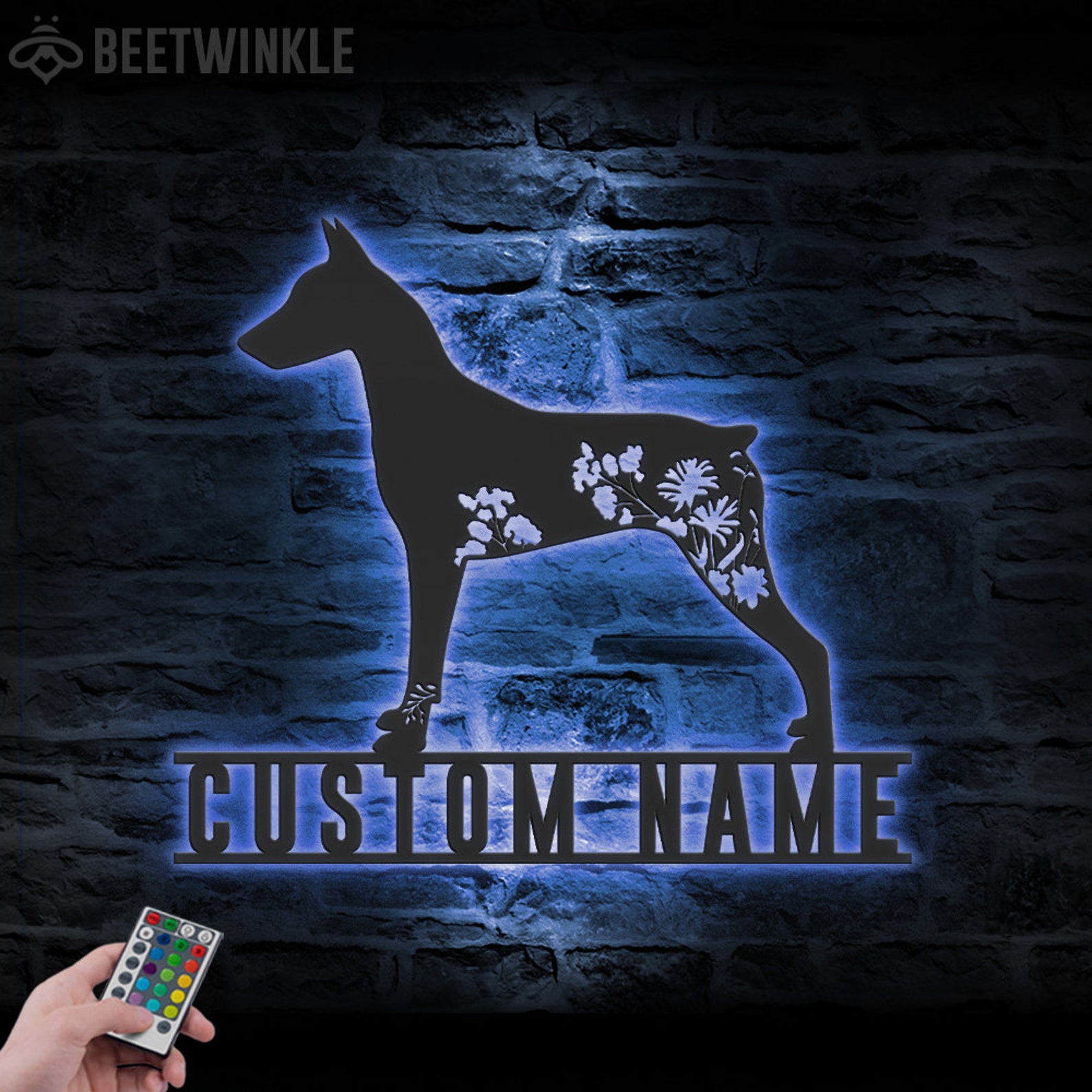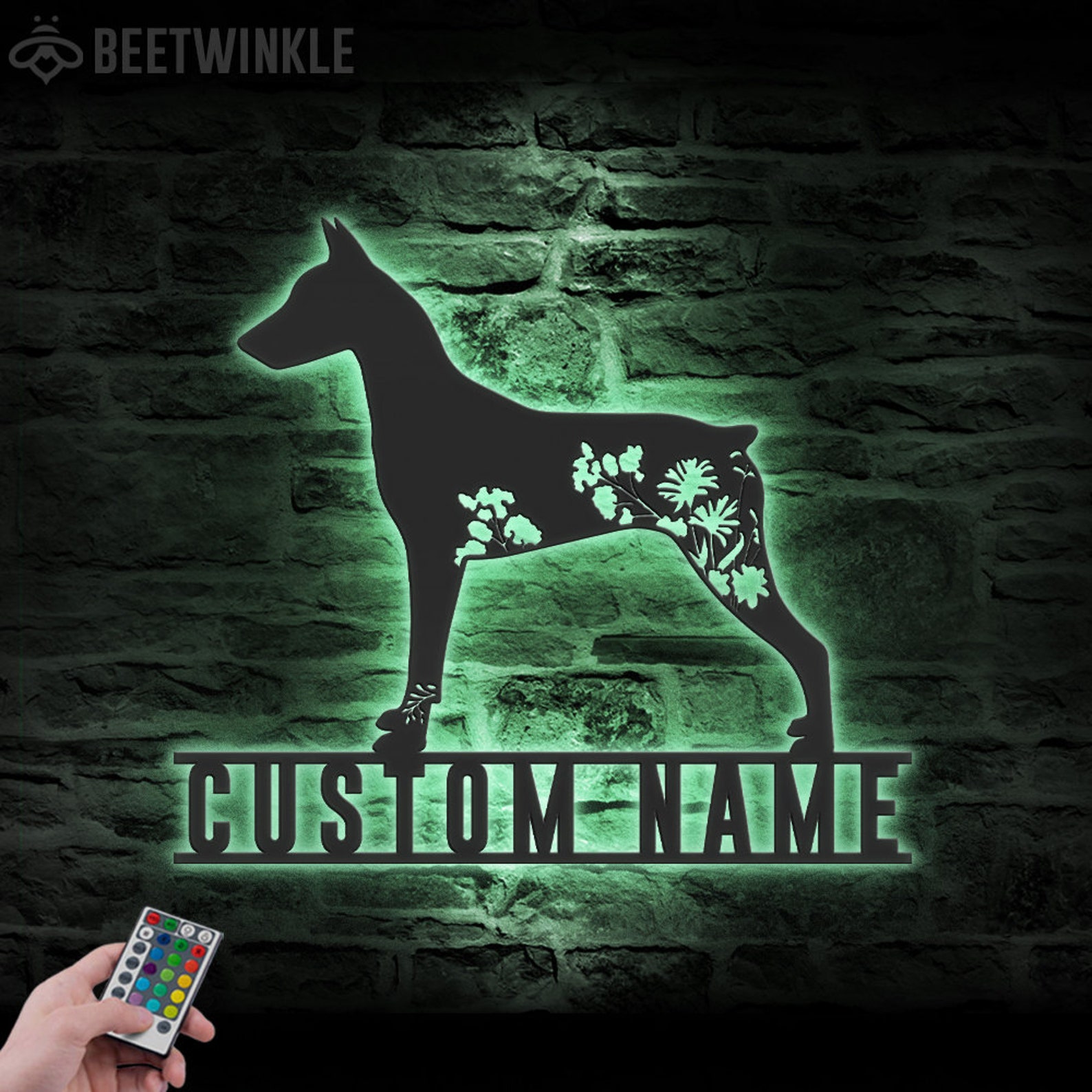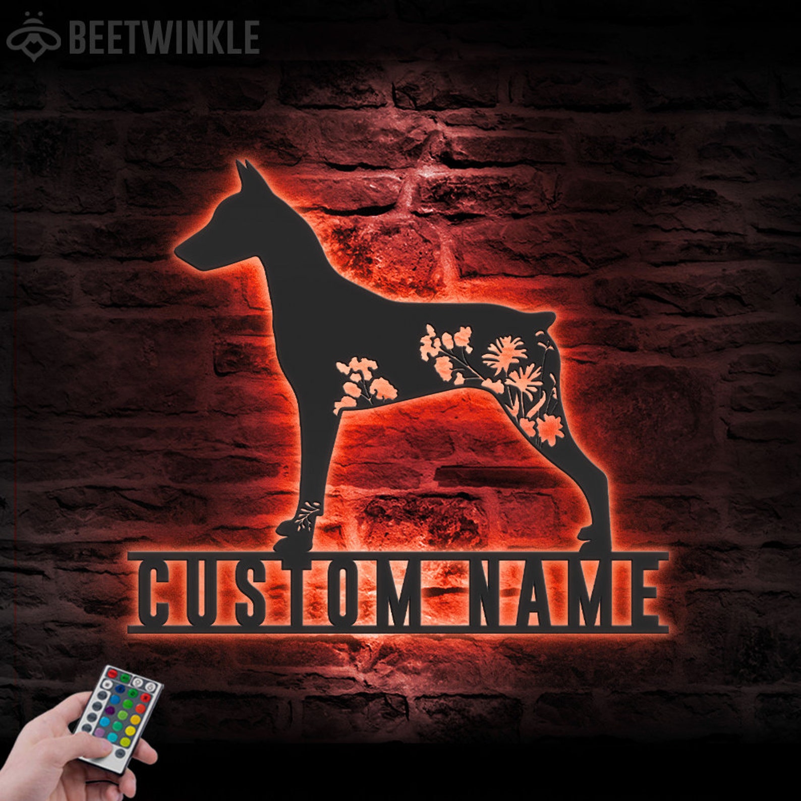 Be the first to review “Custom Floral German Pinscher Metal Sign with LED – Dog Lover Decor”