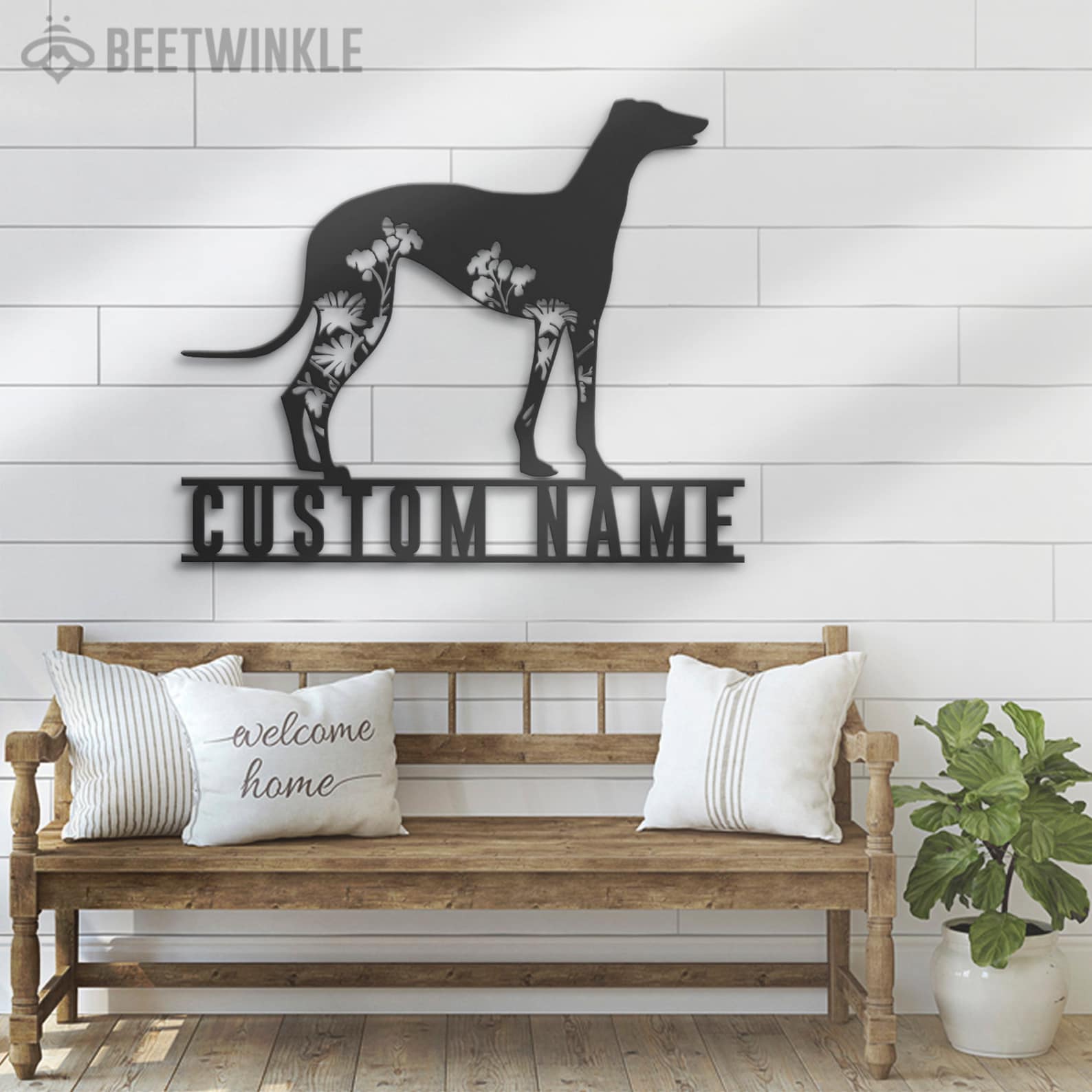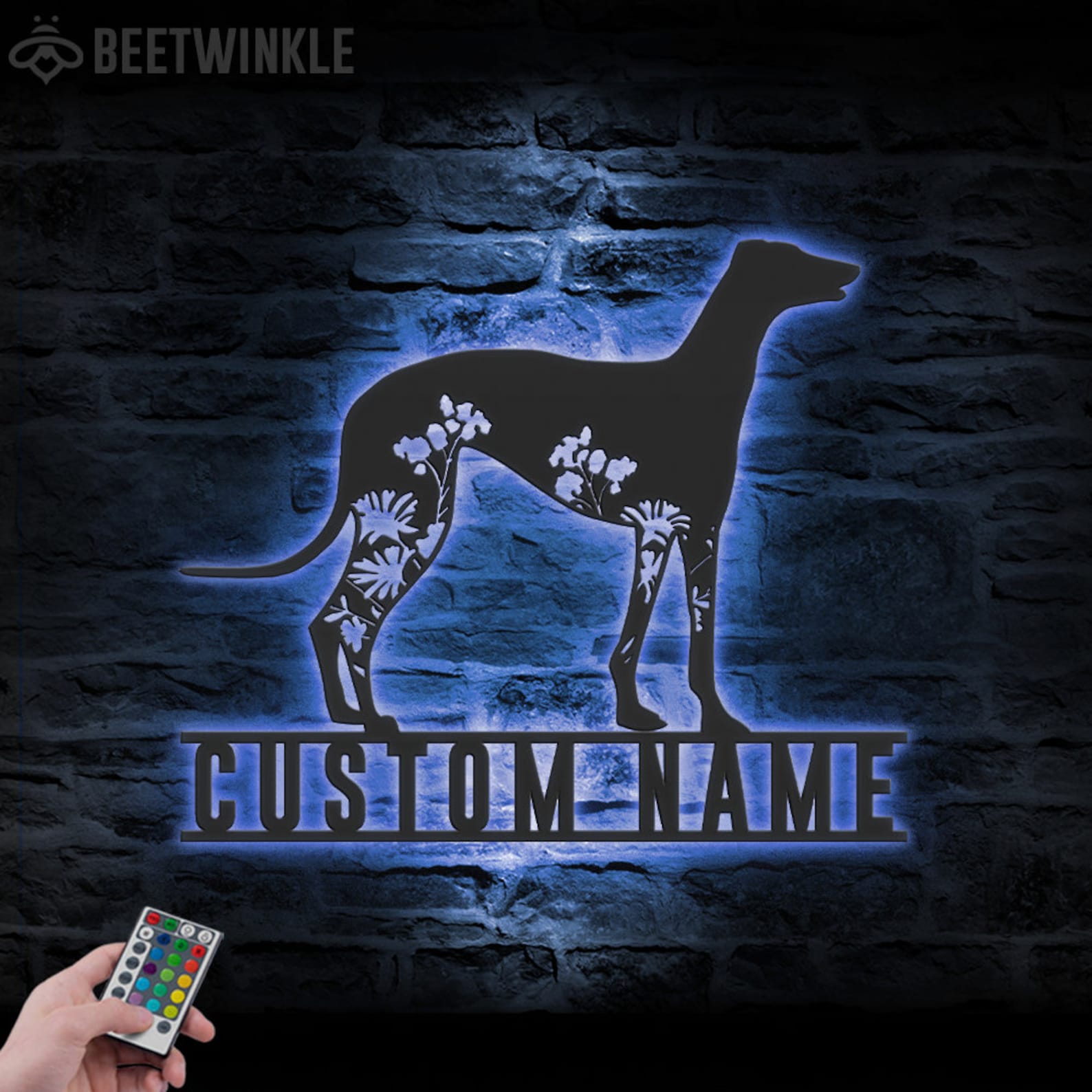 Be the first to review “Custom Floral Greyhound LED Metal Art – Dog Lover Name Sign”