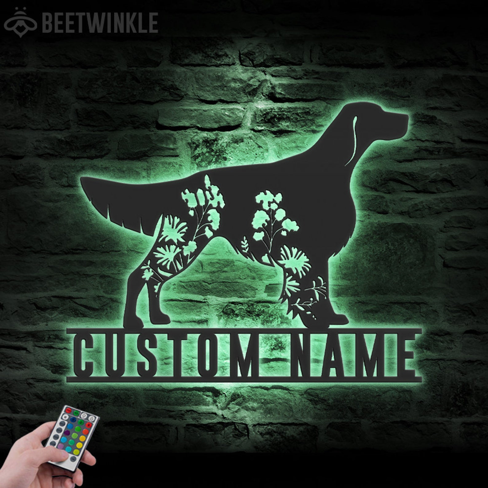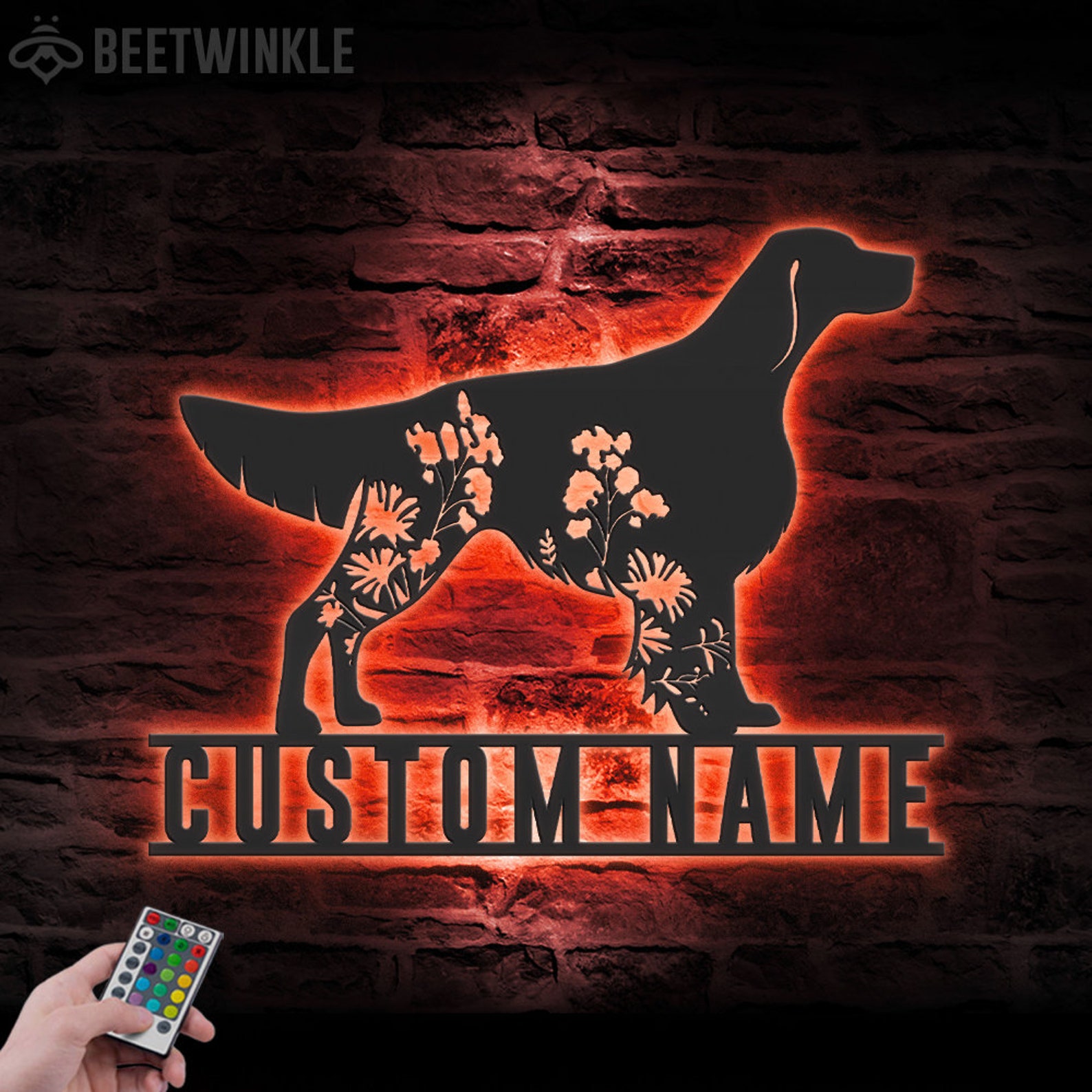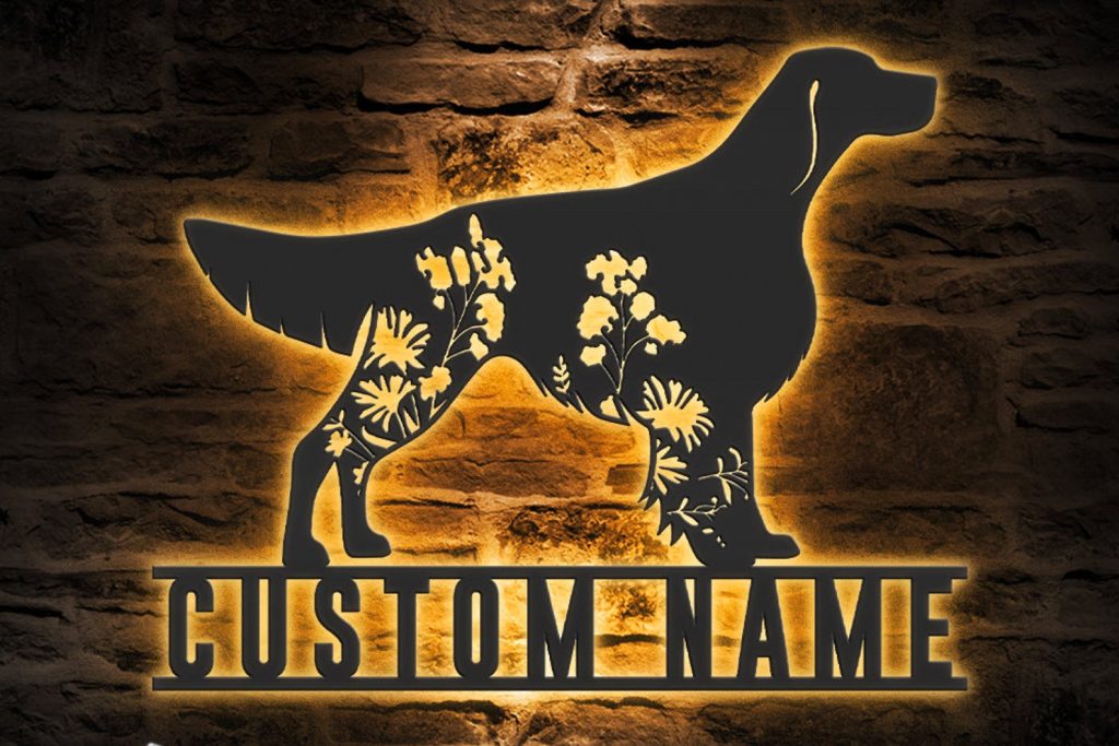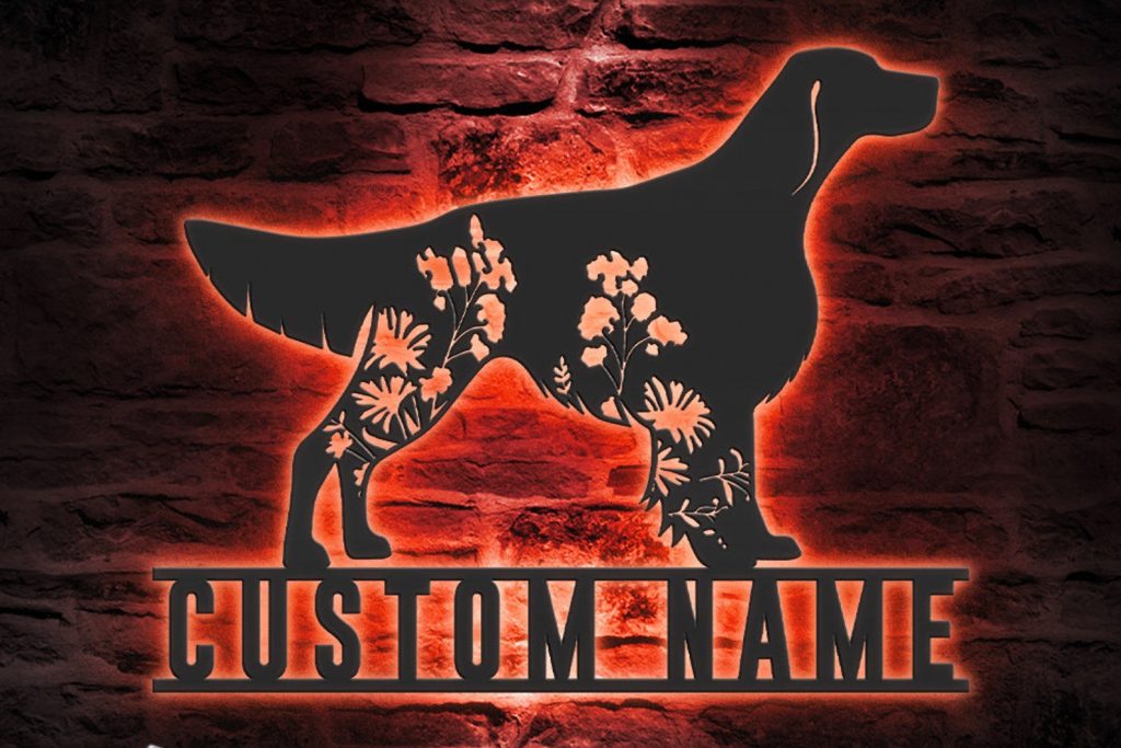 Be the first to review “Custom Floral Irish Red & White Setter Metal Sign with LED”