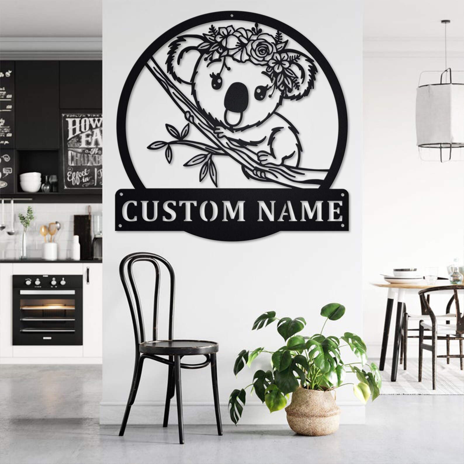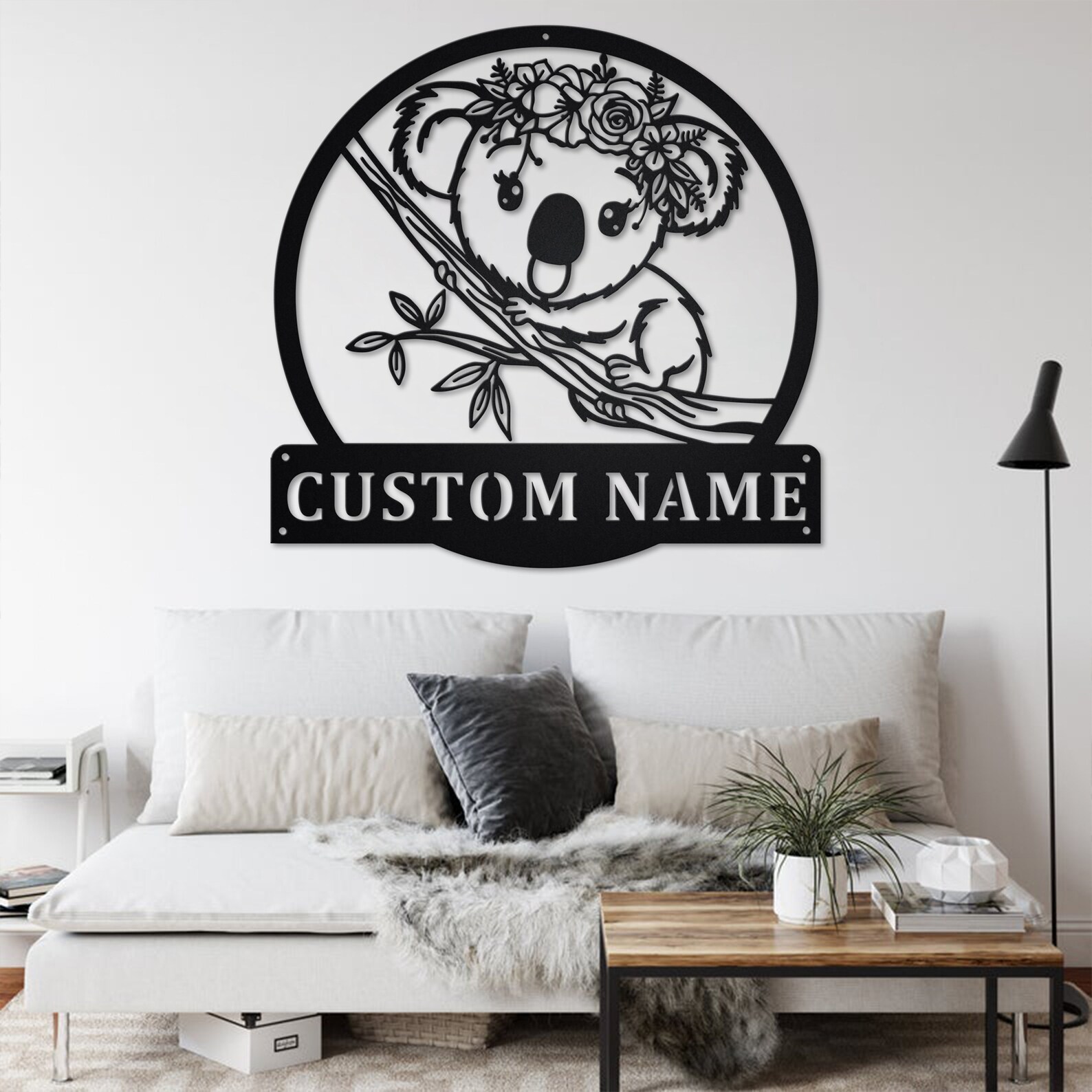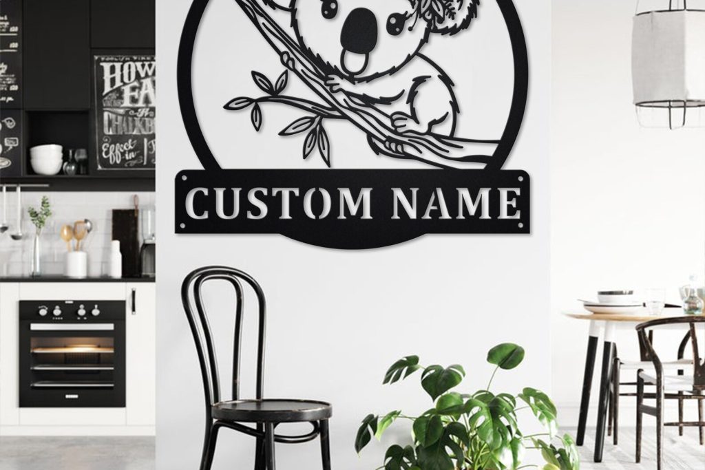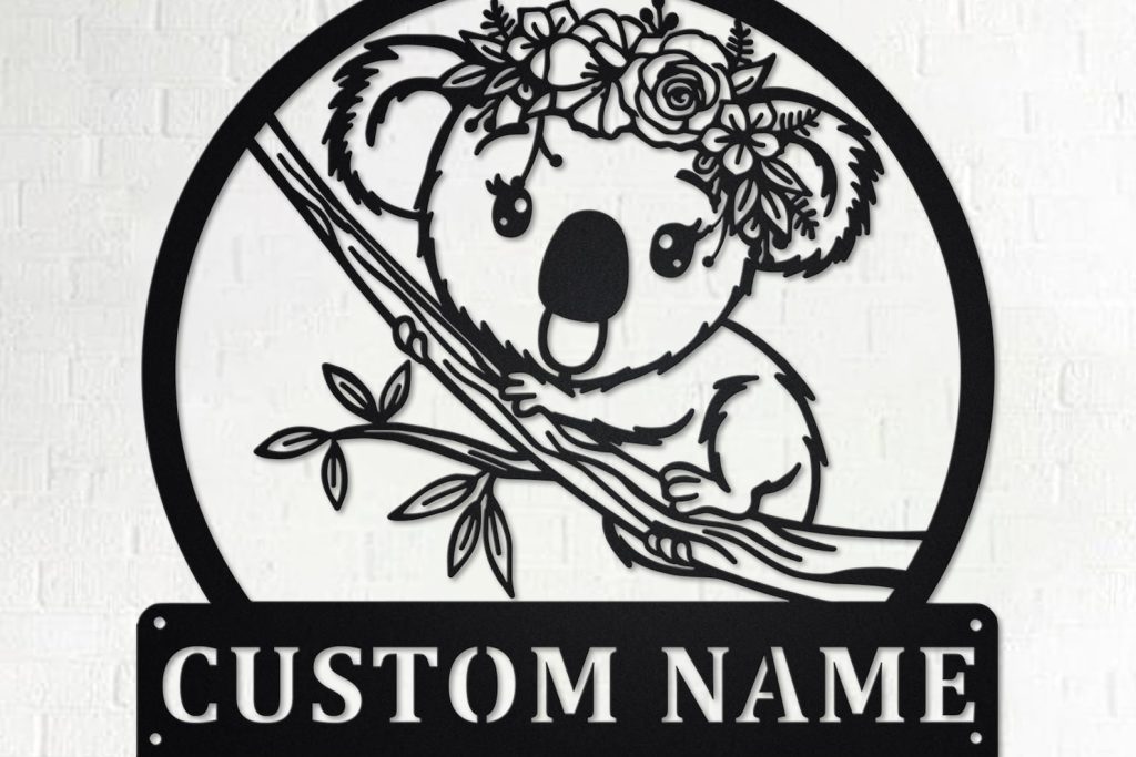 Custom Floral Koala Metal Sign, Personalized Home Decor