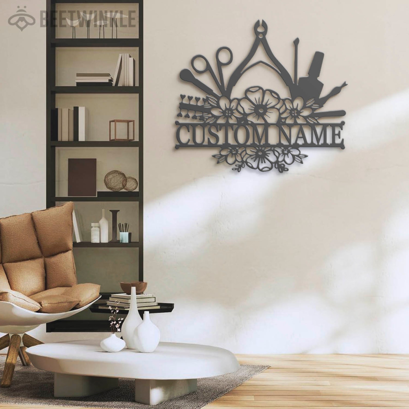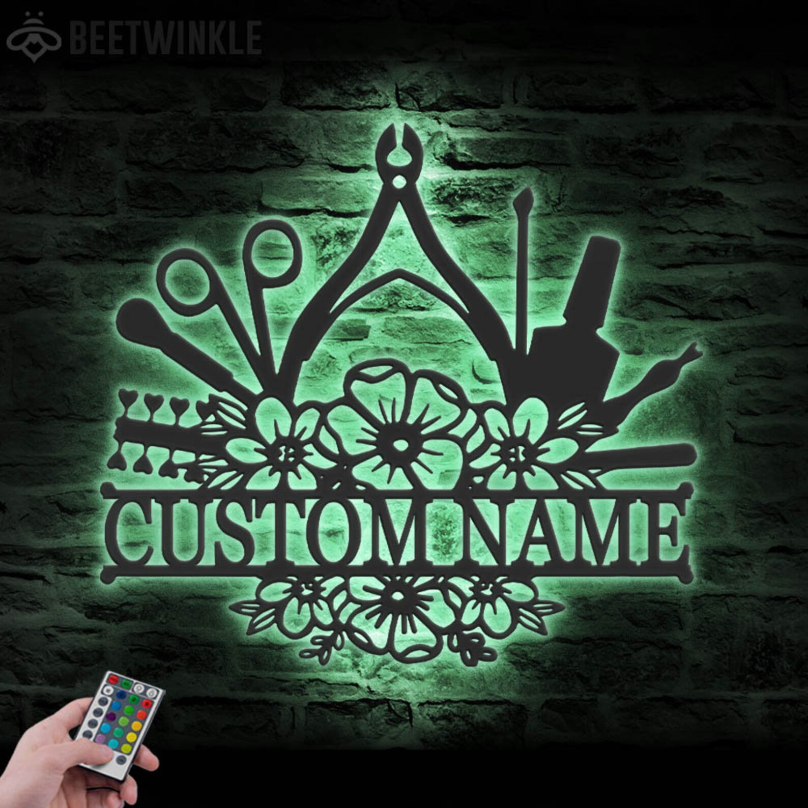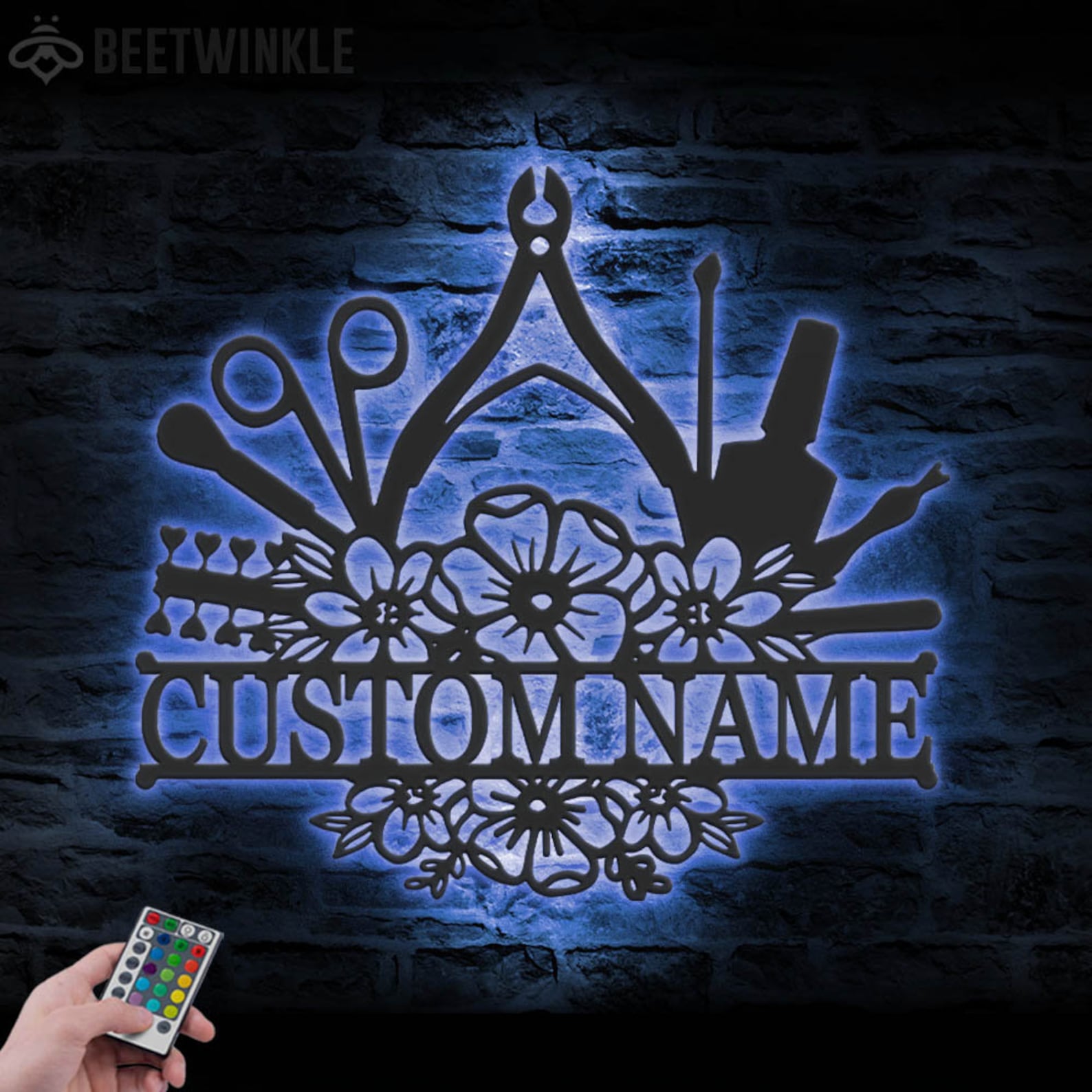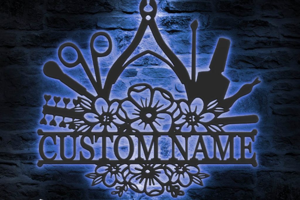 Be the first to review “Custom Floral Nail Tech Metal Wall Art – LED Light, Personalized Sign”