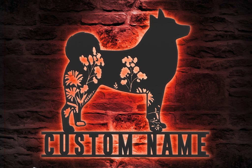 Be the first to review “Custom Floral Norwegian Buhund Metal Sign with LED – Pet Decor”