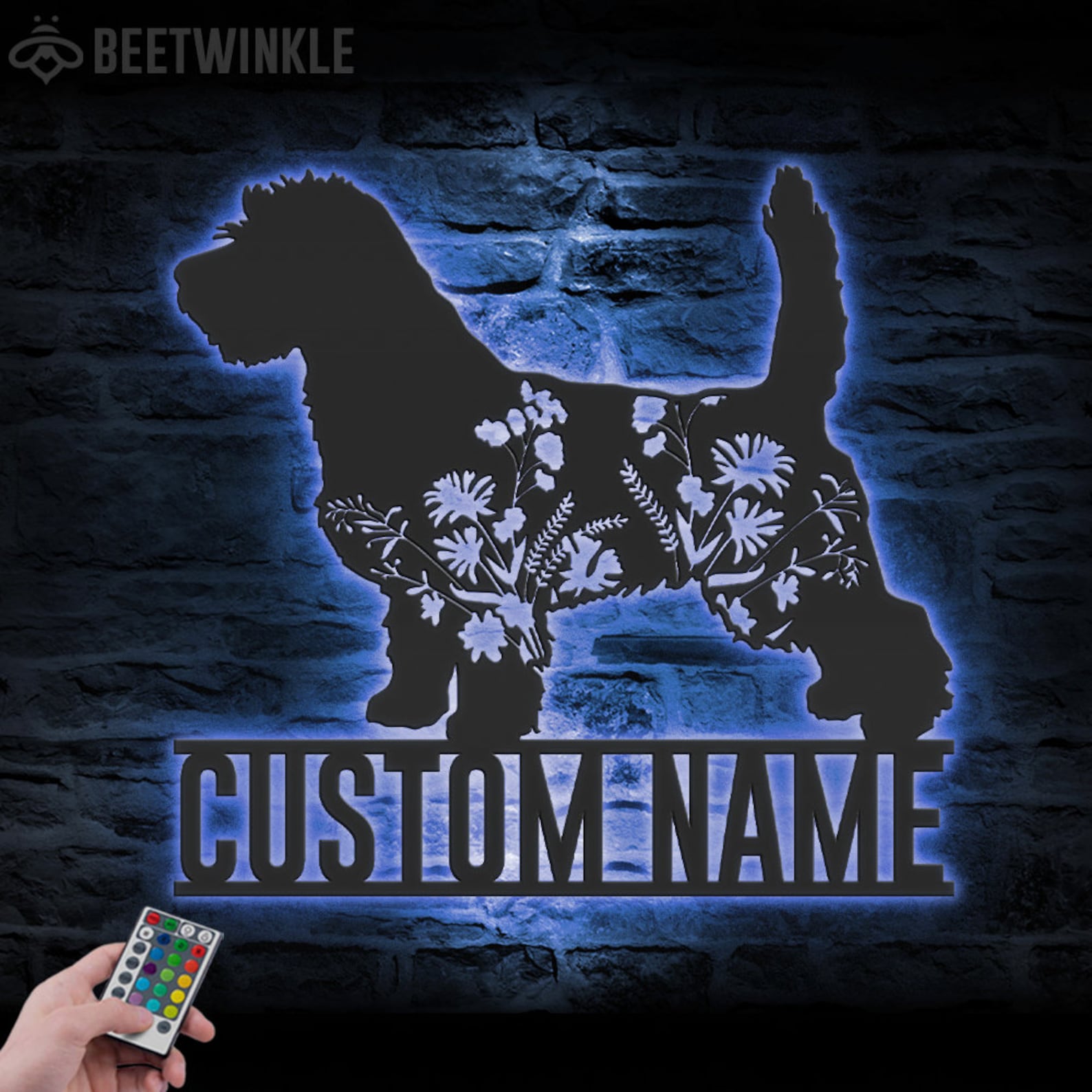 Be the first to review “Custom Floral PBGV LED Metal Art – Dog Lover Name Sign”